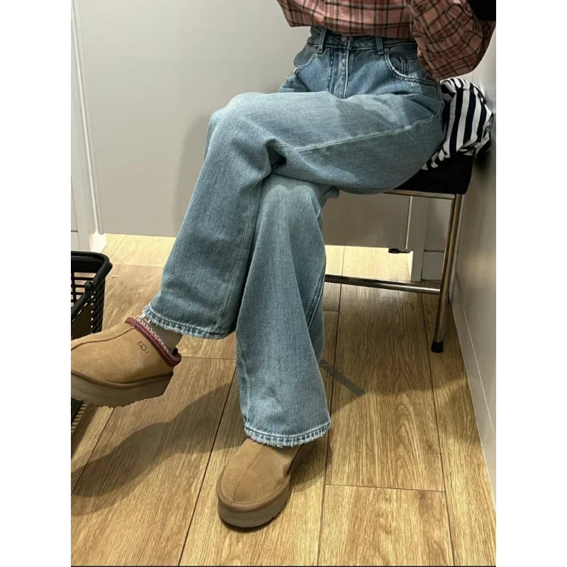 Bxoxo Streetwear Female Trousers Wide Leg Jeans for Women Blue High Waisted Jeans Women's Denim Pants Y2k Women's Clothing