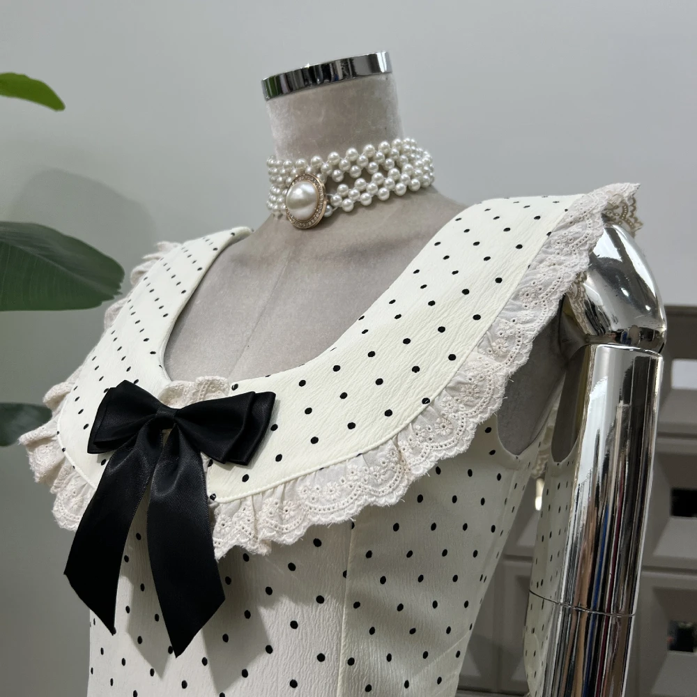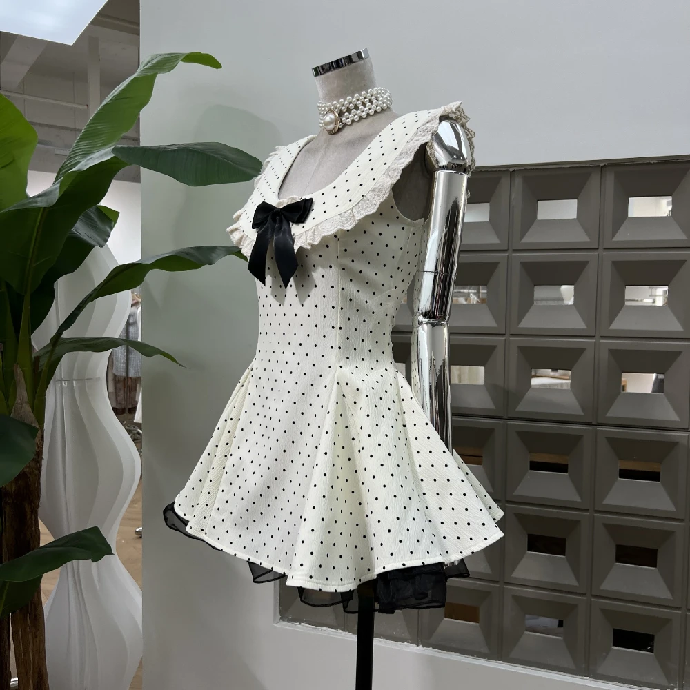 BXOXO Summer Elegant Young Girls Dress Polka Dot Bow Design Mini Club Dresses Appropriate Chic Sexy Party Outfits 2025 New Arrival