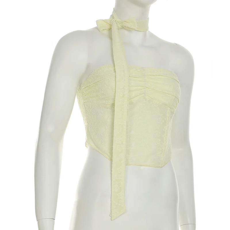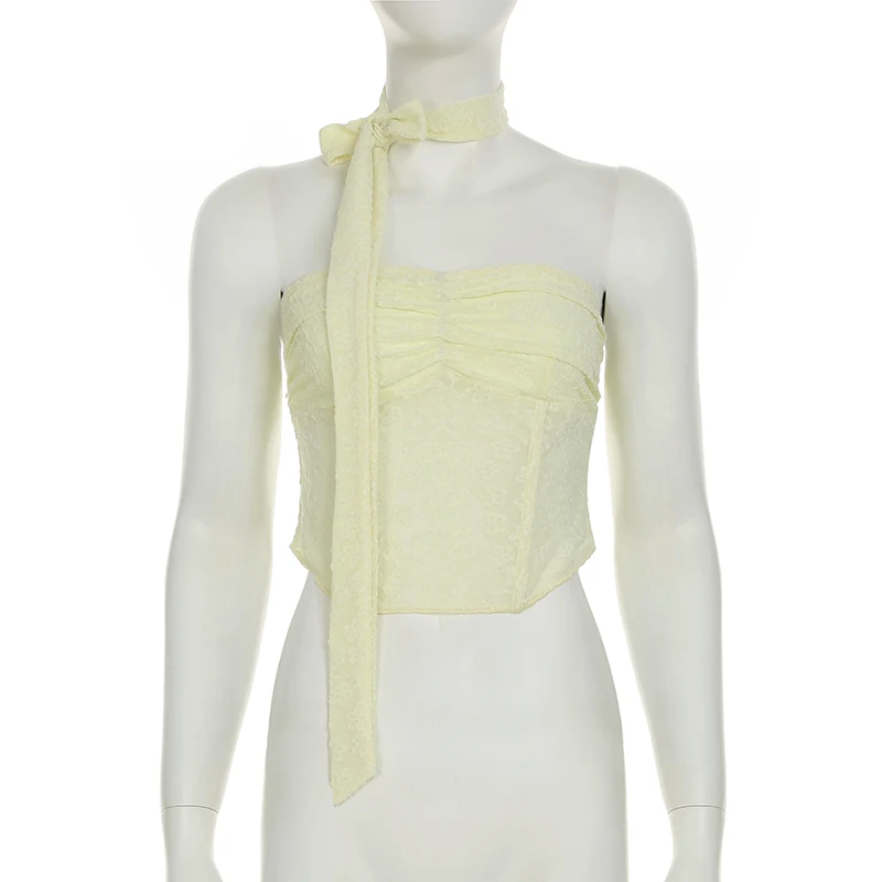 BXOXO Summer Holiday Transparent Lace Tube Top with Scarf Women Casual Strapless Solid Cropped Tops y2k Aesthetic Sexy Tee Lady