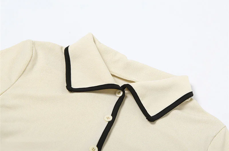 Bxoxo Summer New Ribbed 2 Piece Sets Women Elegant Lapel Button Short Sleeve Crop Tops Y2K Streetwear Matching Slim Mini Skirt Suit