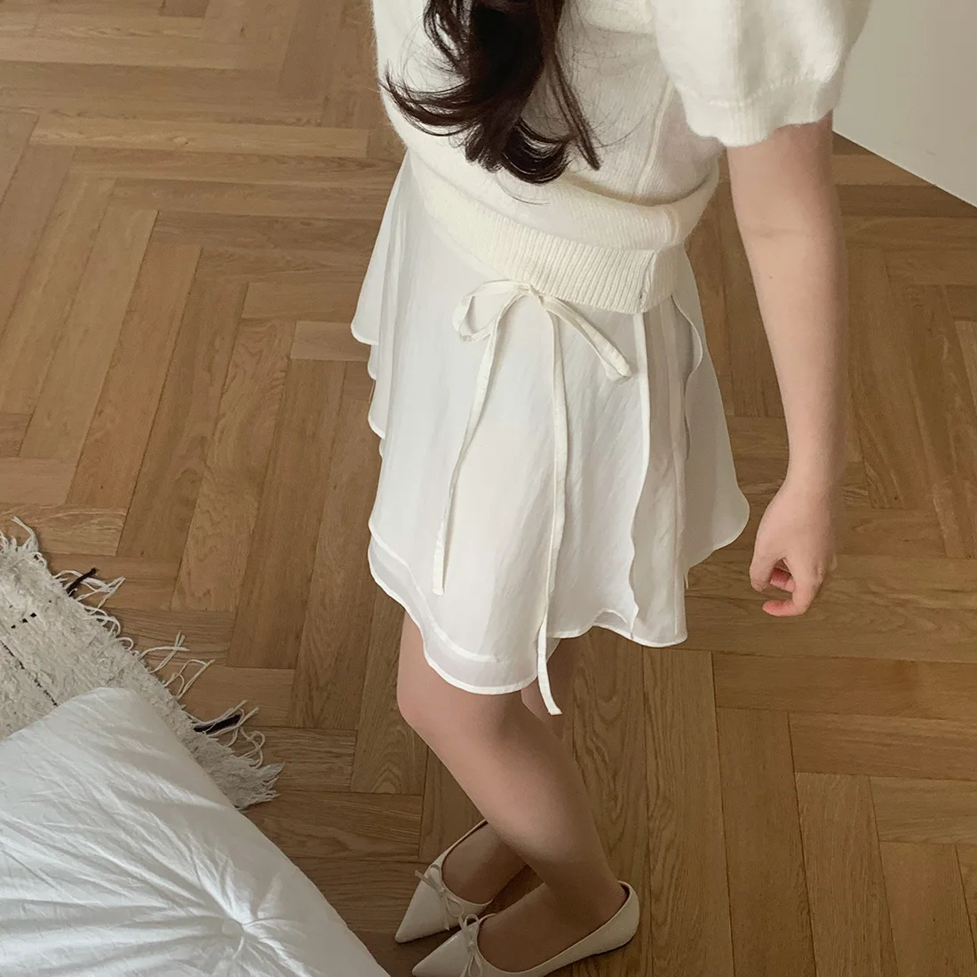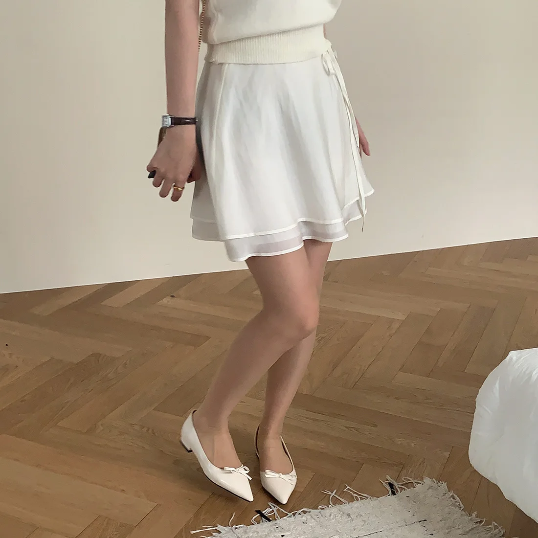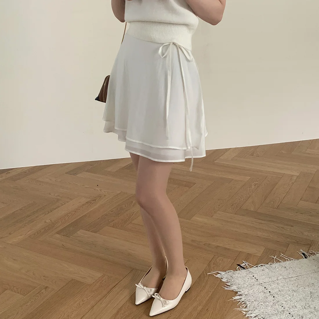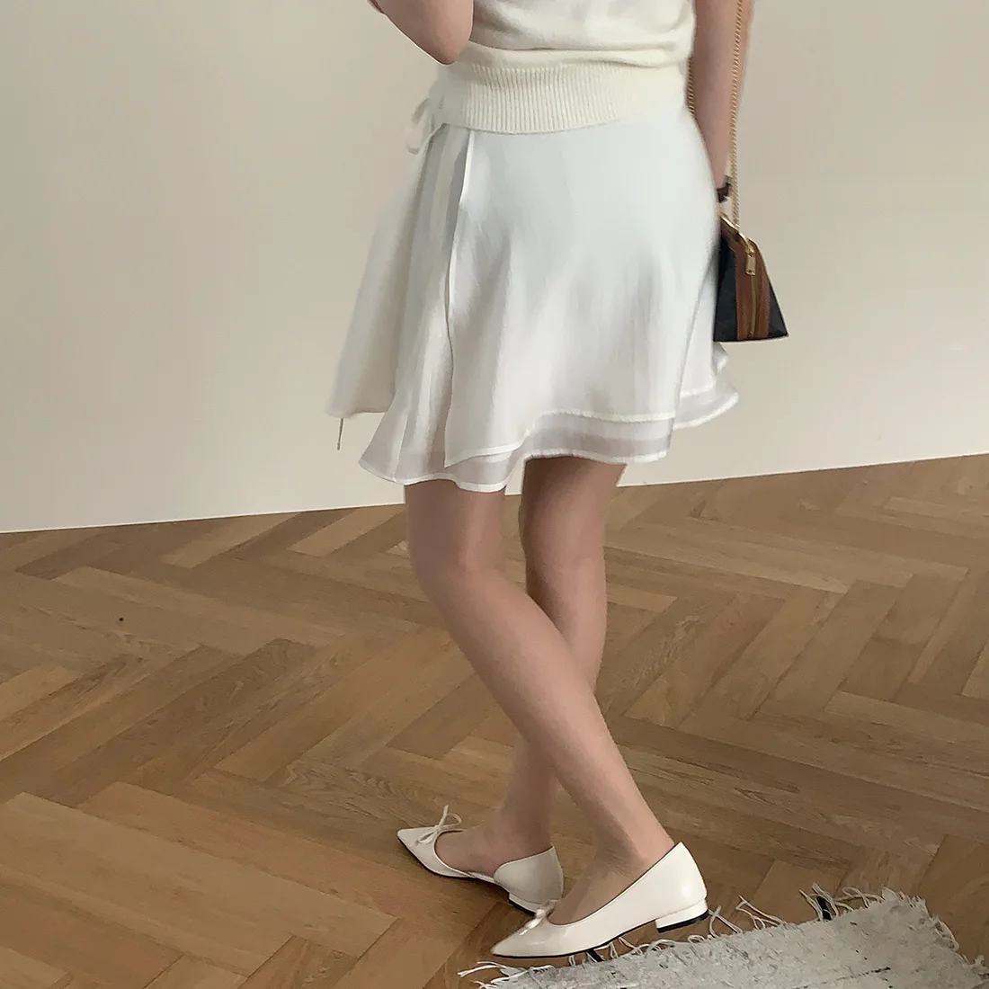 Bxoxo Summer New Sweet Agel Bow Tie Versatile Skirt High Waist Polyester Fiber Pleated ort Skirt for Young Women