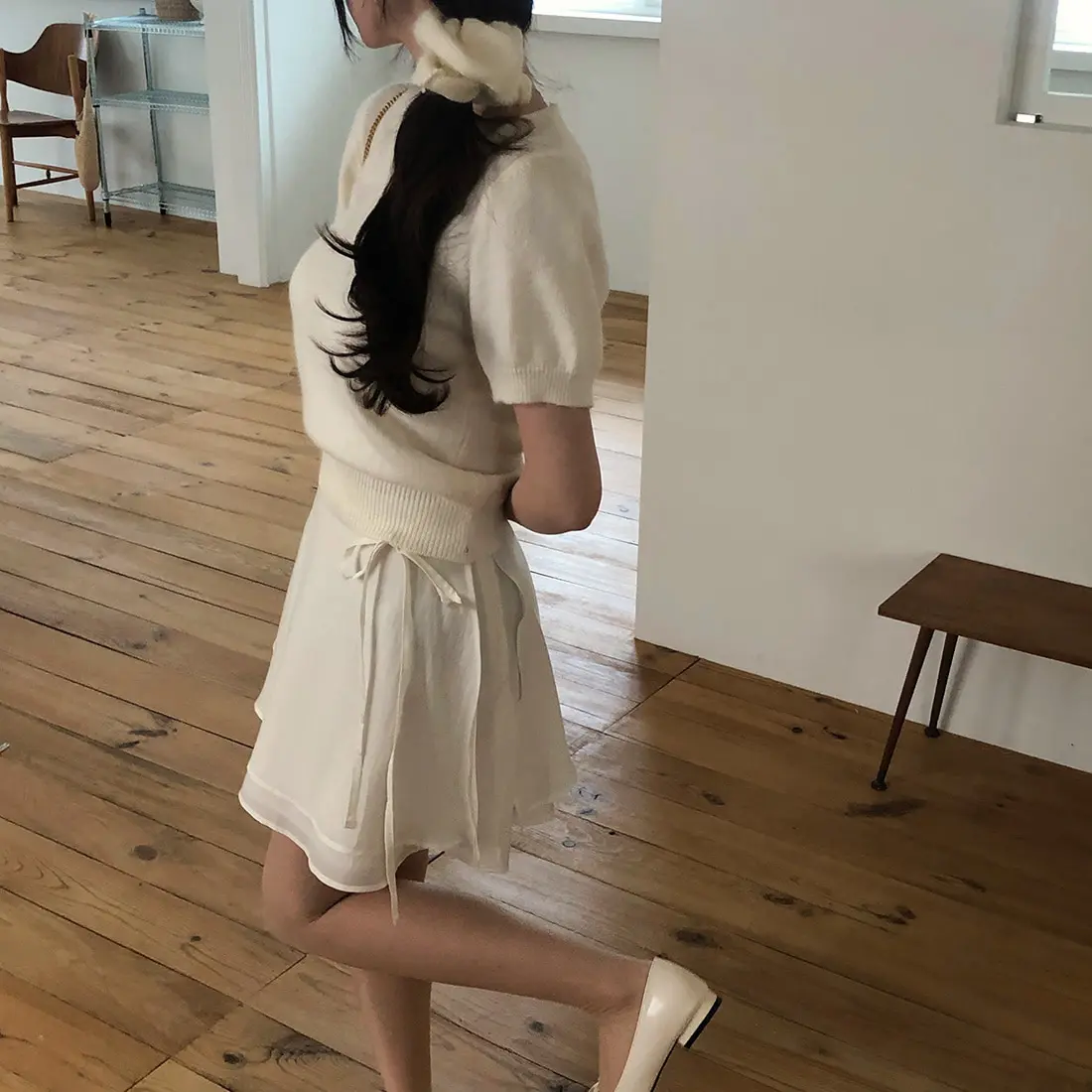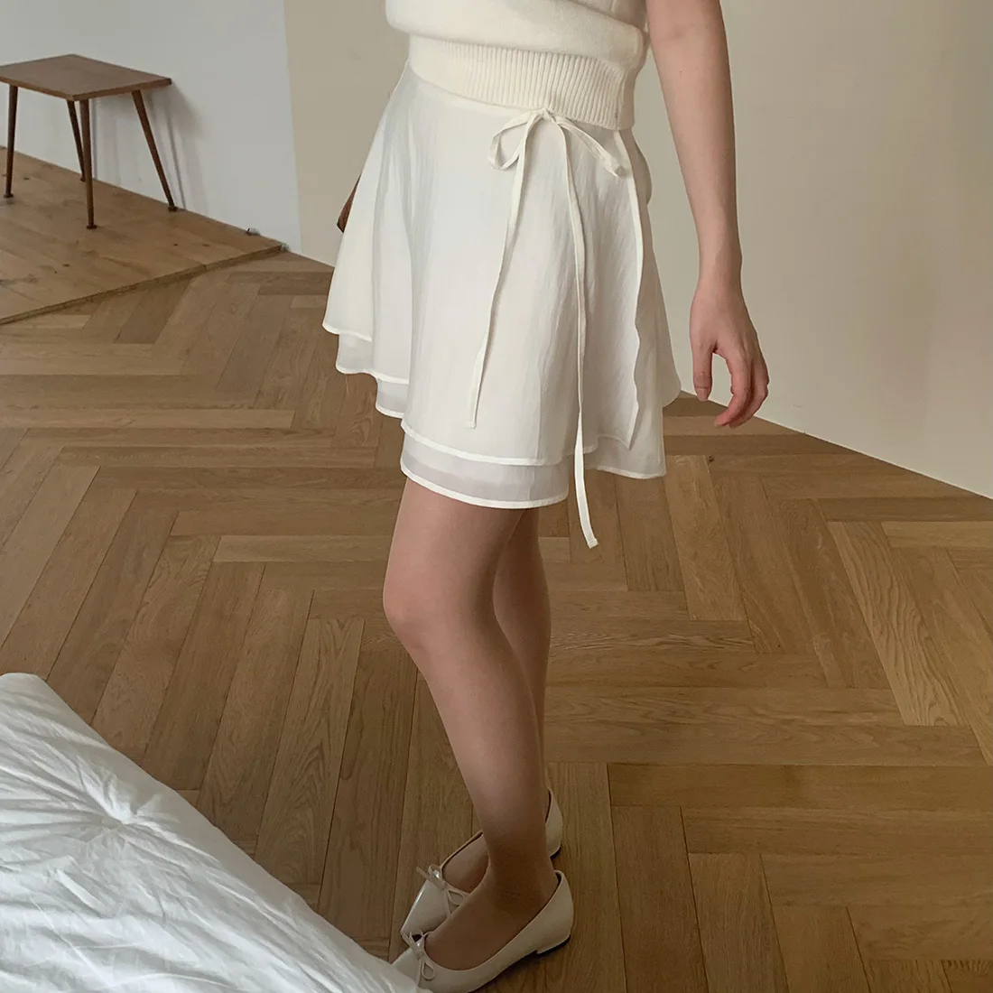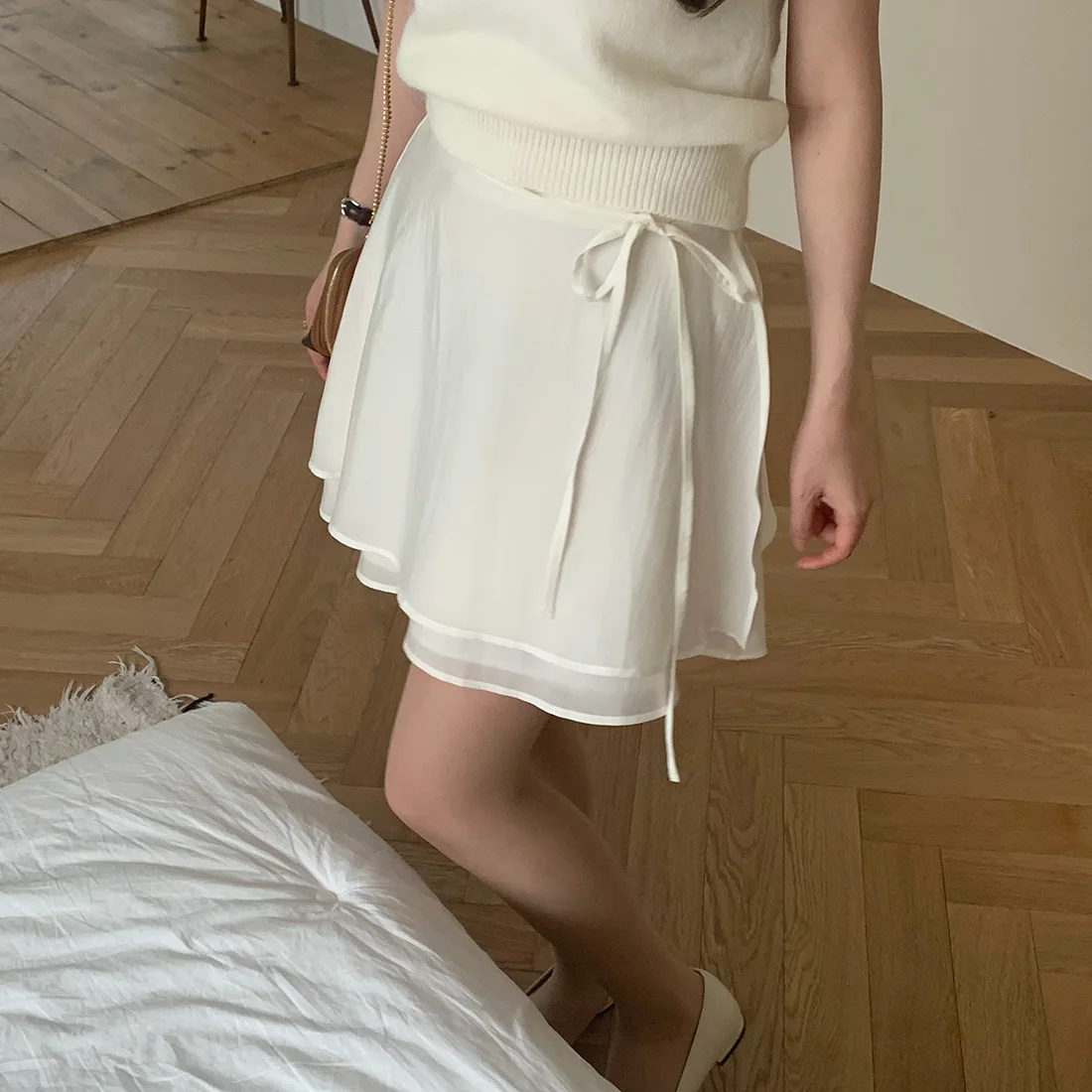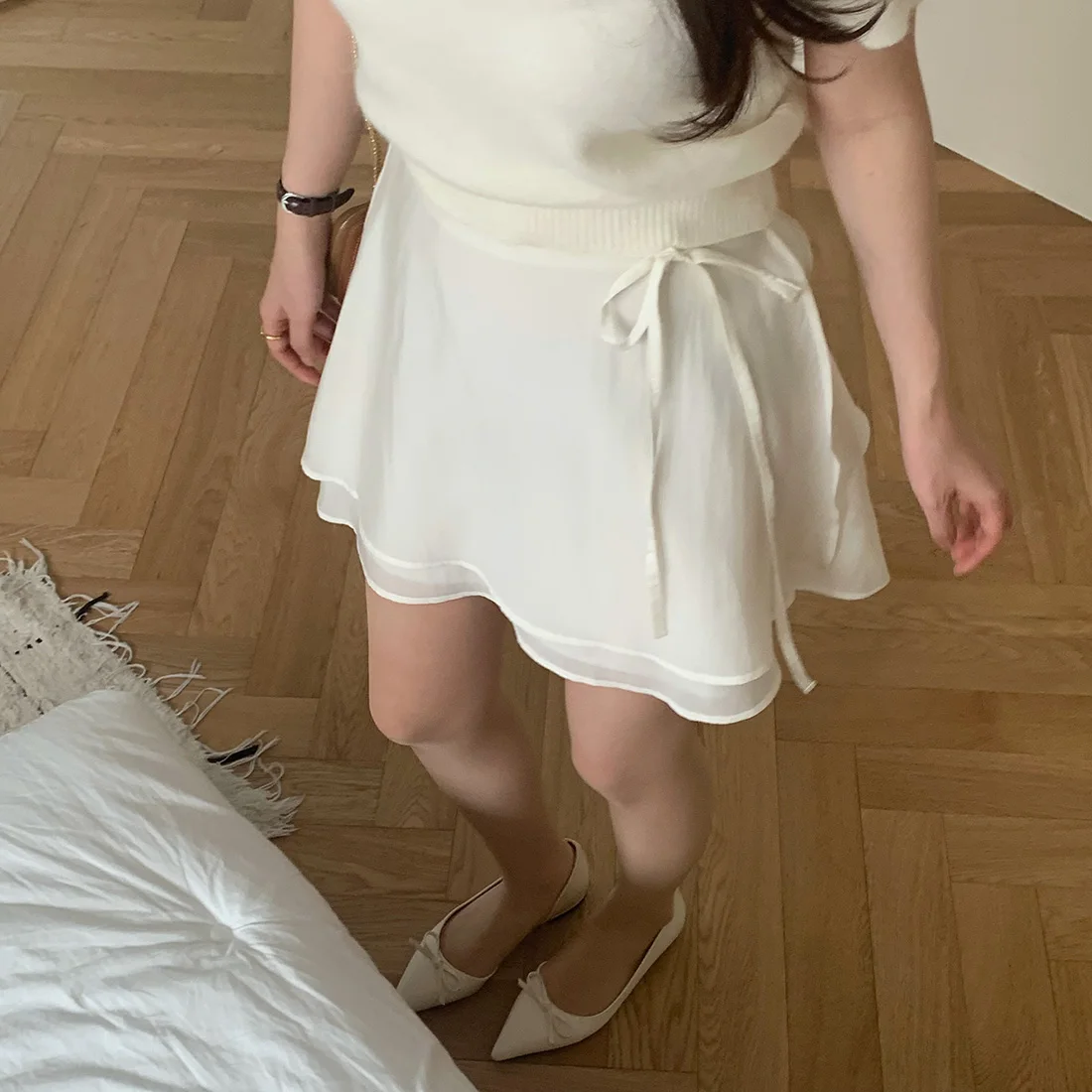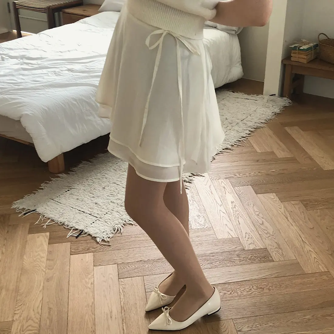 Bxoxo Summer New Sweet Agel Bow Tie Versatile Skirt High Waist Polyester Fiber Pleated ort Skirt for Young Women