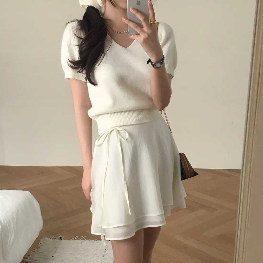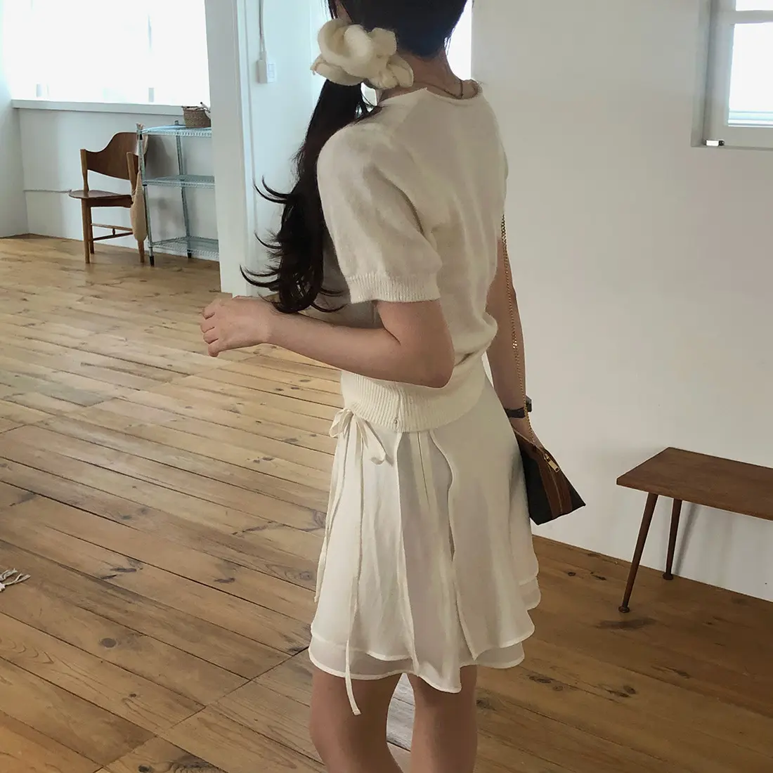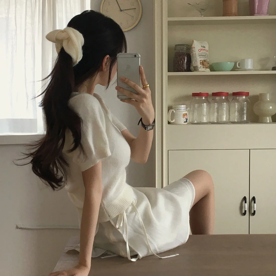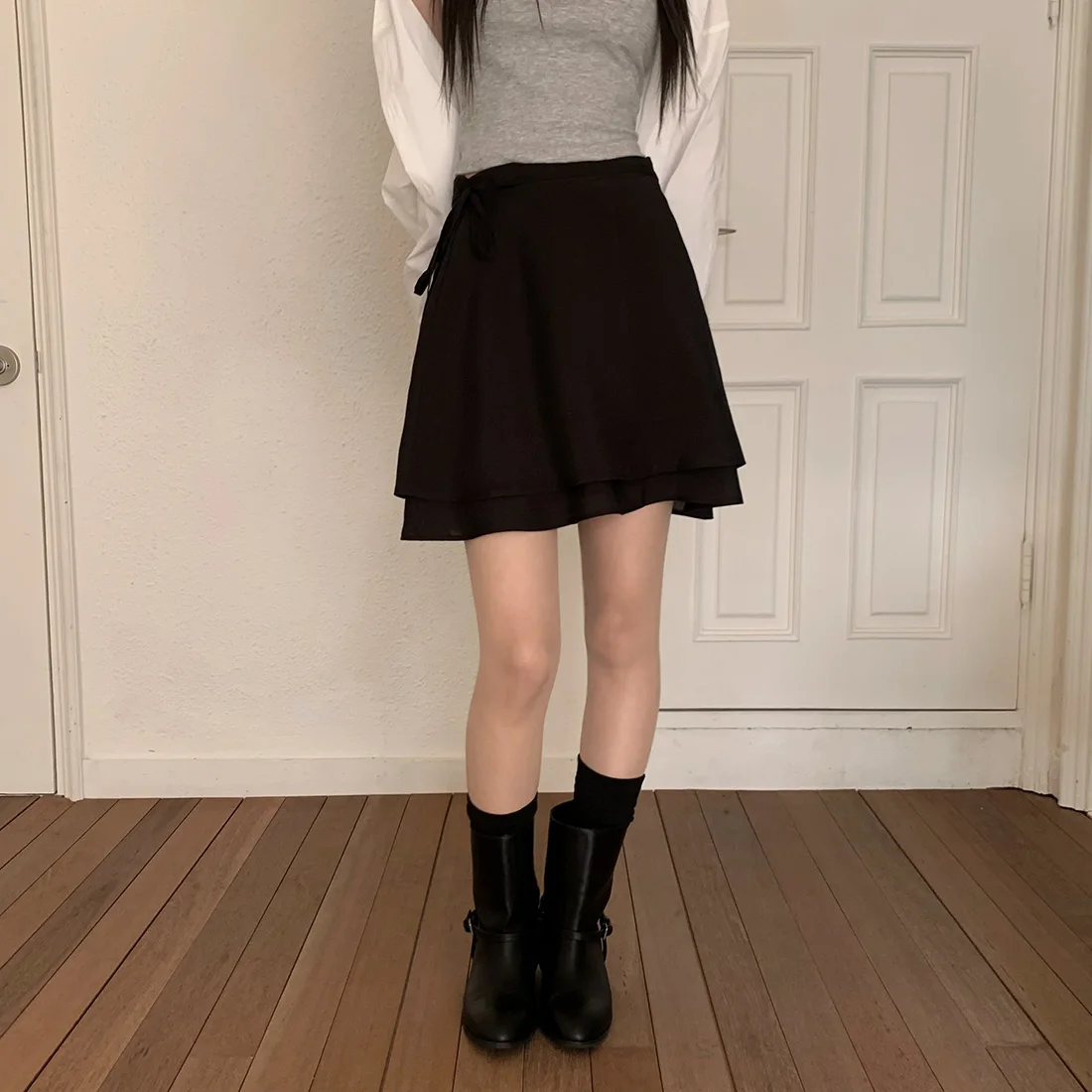 Bxoxo Summer New Sweet Agel Bow Tie Versatile Skirt High Waist Polyester Fiber Pleated ort Skirt for Young Women