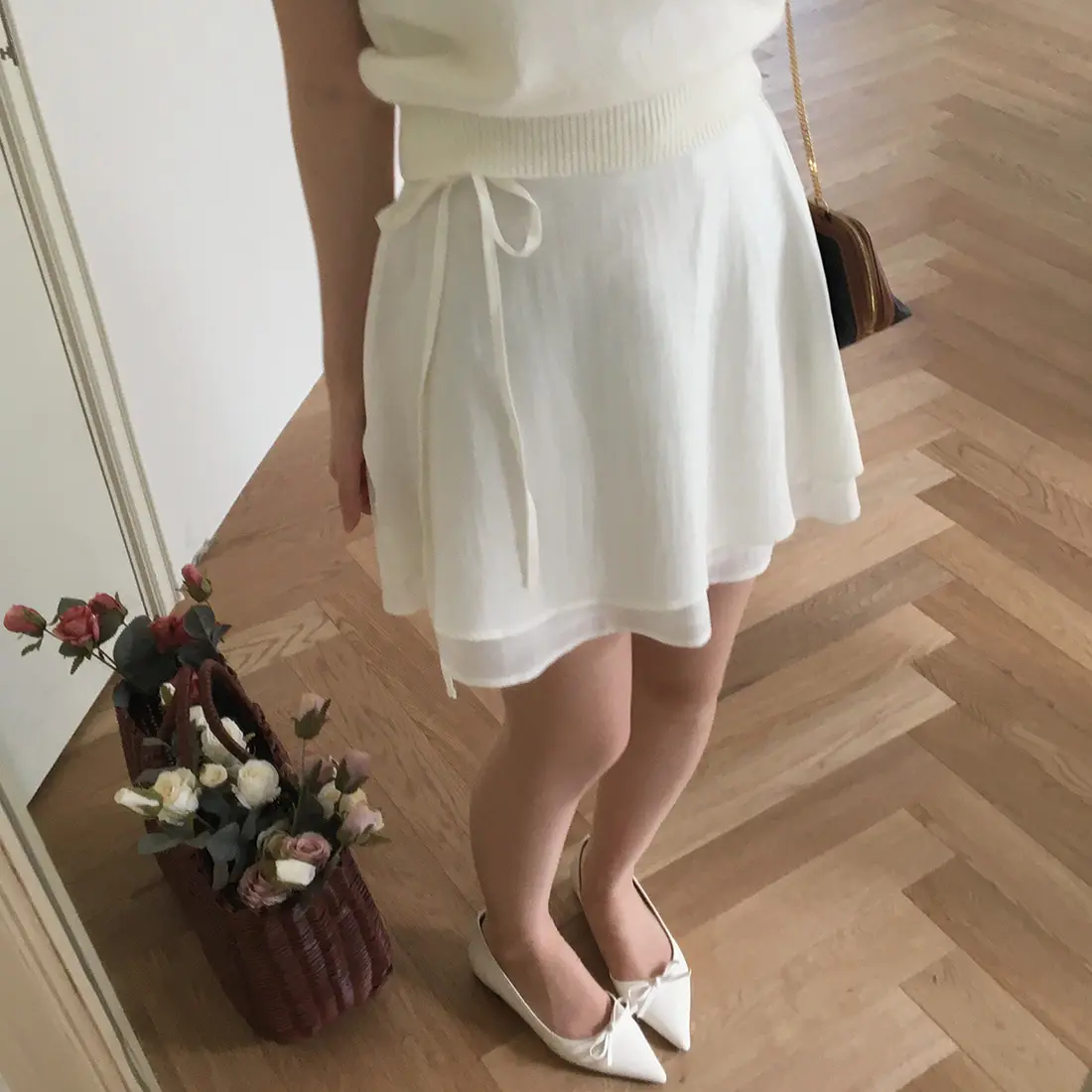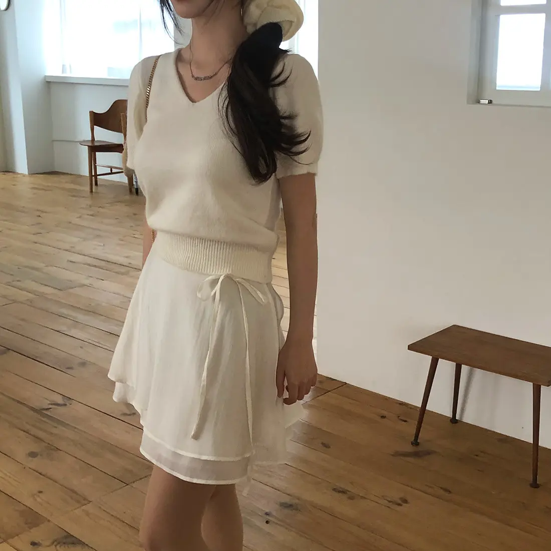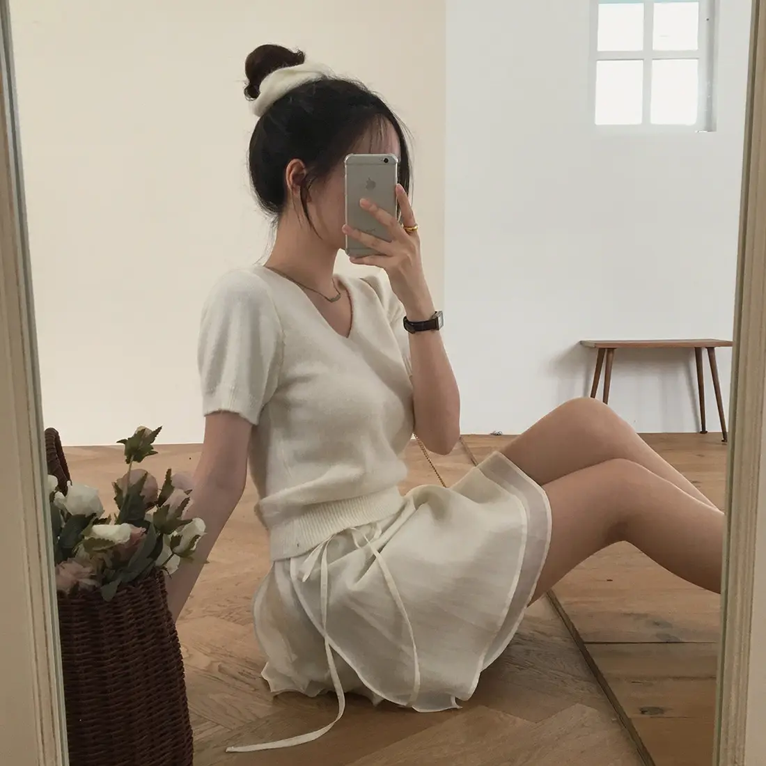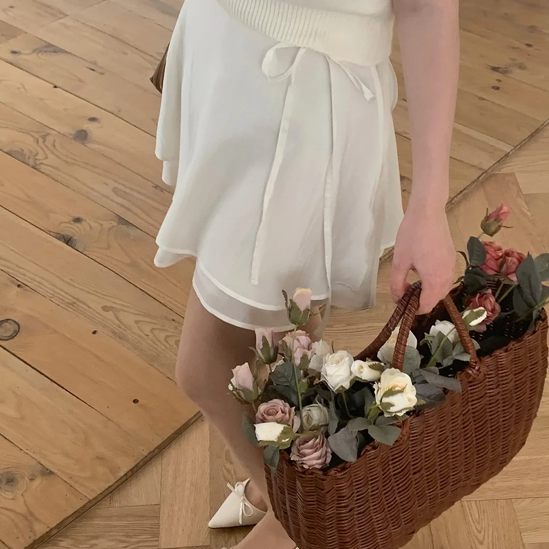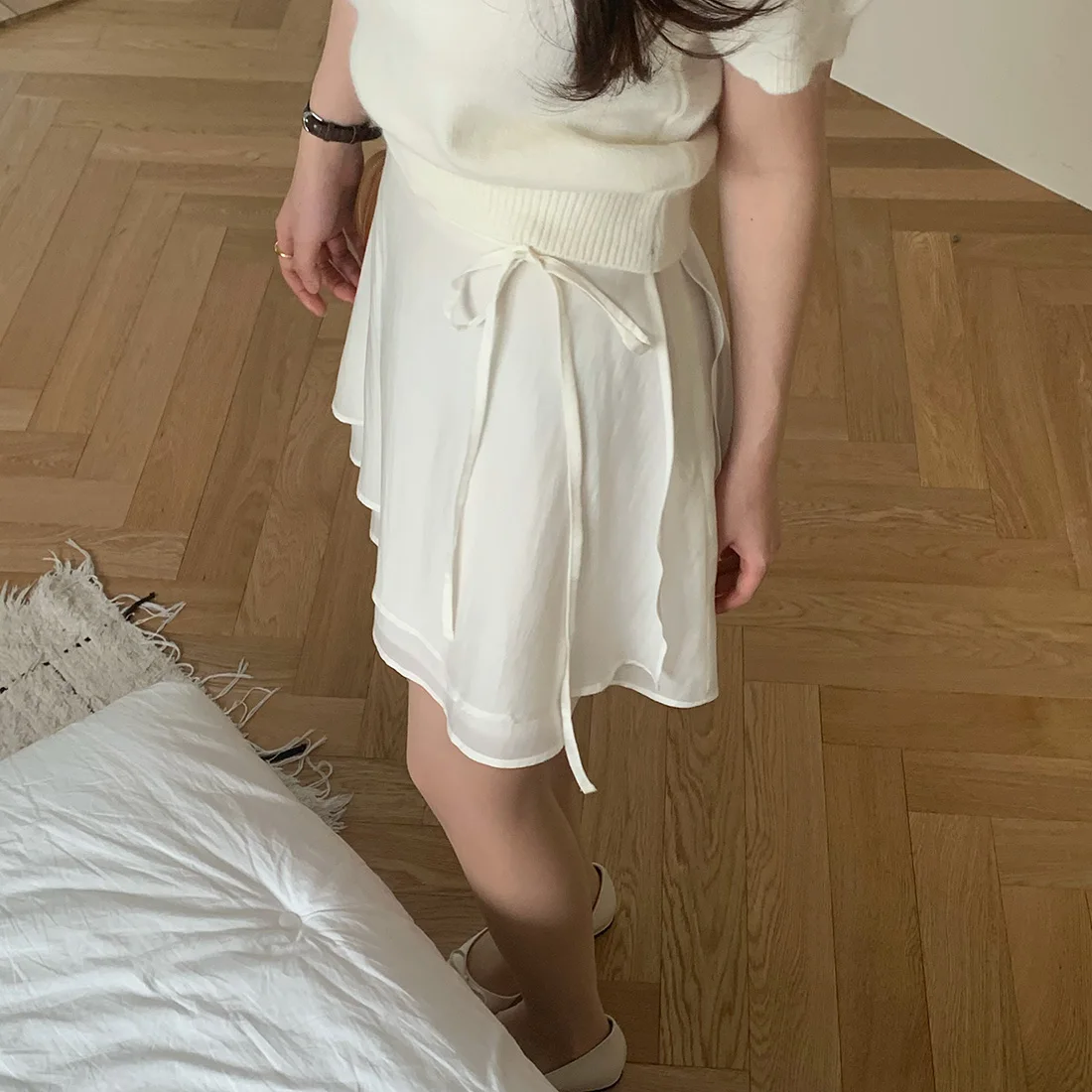 Bxoxo Summer New Sweet Agel Bow Tie Versatile Skirt High Waist Polyester Fiber Pleated ort Skirt for Young Women