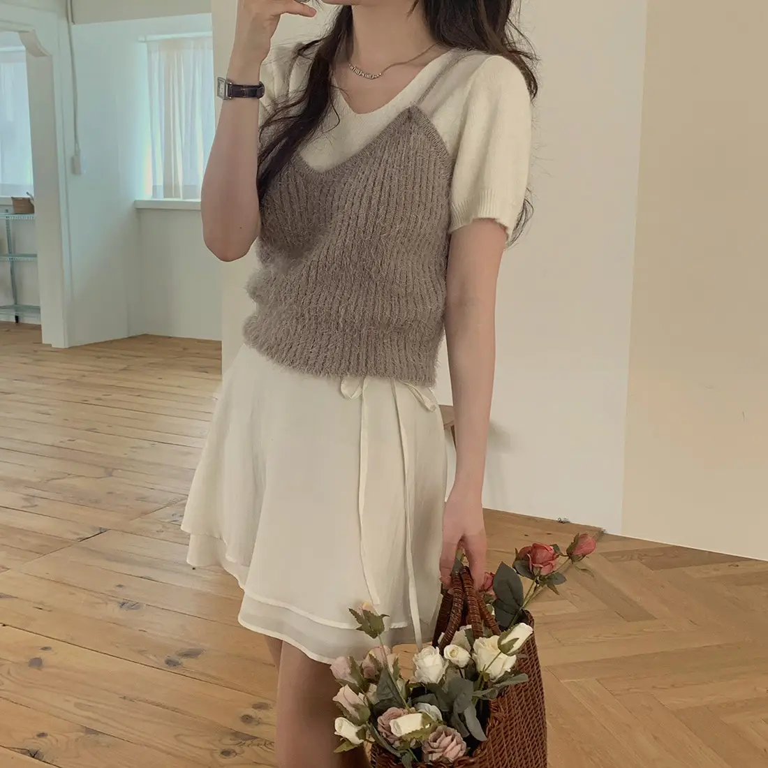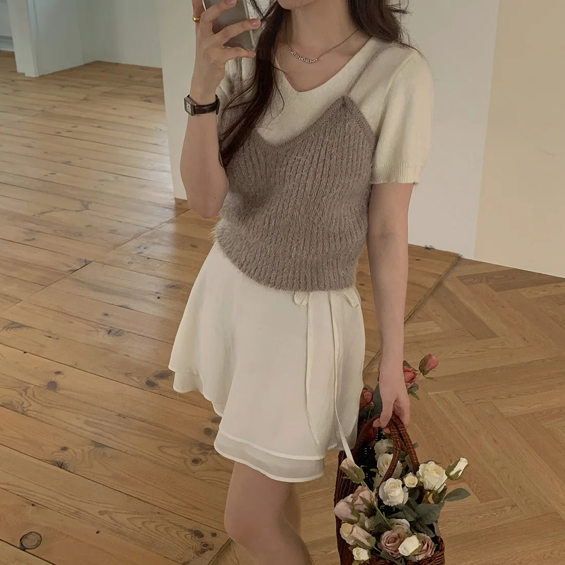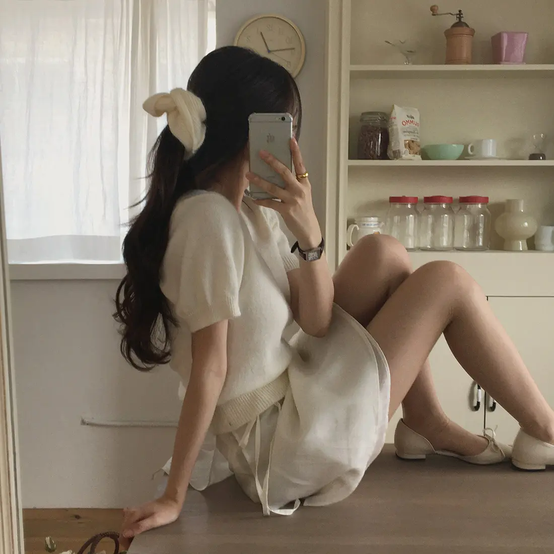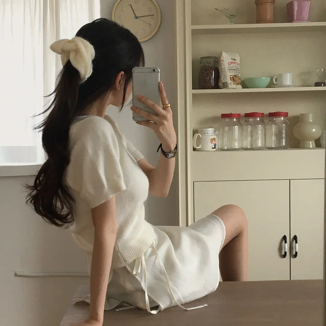 Bxoxo Summer New Sweet Agel Bow Tie Versatile Skirt High Waist Polyester Fiber Pleated ort Skirt for Young Women