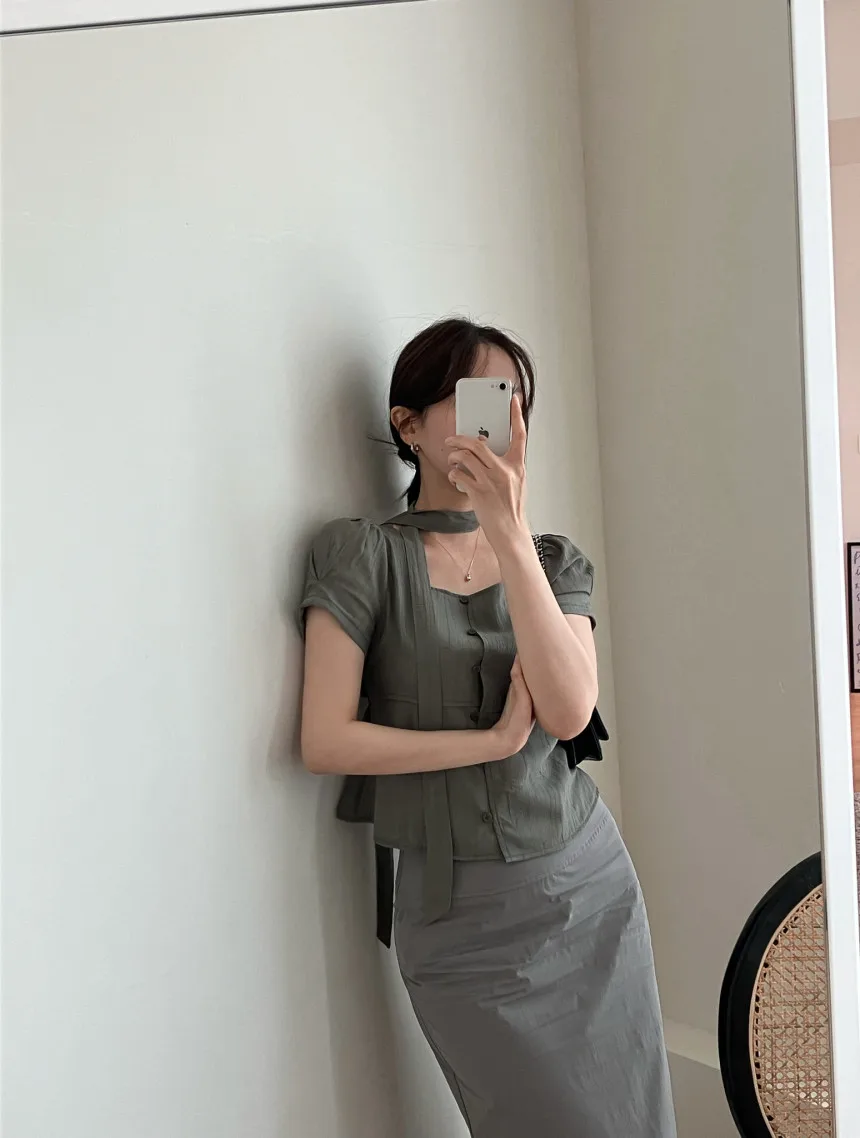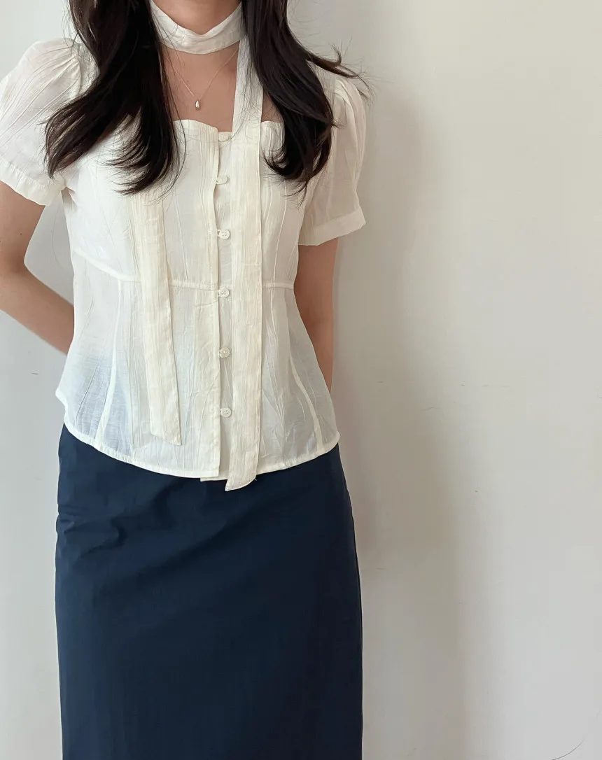 Embrace the latest Korean chic trend with this stylish summer shirt, perfect for adding a touch of elegance to your casual wardrobe.