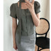 Bxoxo Summer ort Sve irt Single Button Square Collar Tie Design Casual Sle Pure Color Polyester Fiber 00%