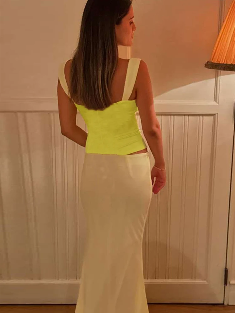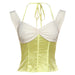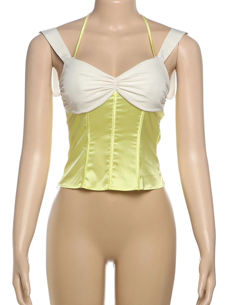 BXOXO Summer Patchwork Tank Tops Woman Backless Lace-Up Halter Satin Folds Y2K Party Streetwear Simple Skinny Elegant Vest