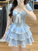 Bxoxo Summer Sweet Kawaii Blue Plaid Dress Woman Lolita Lace Y2k Mini Dress Short Party Elegant One Piece Dress Korean Fashion