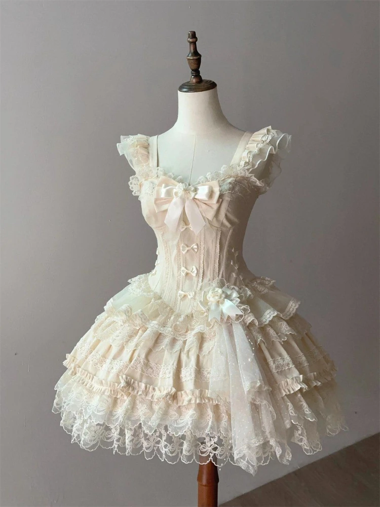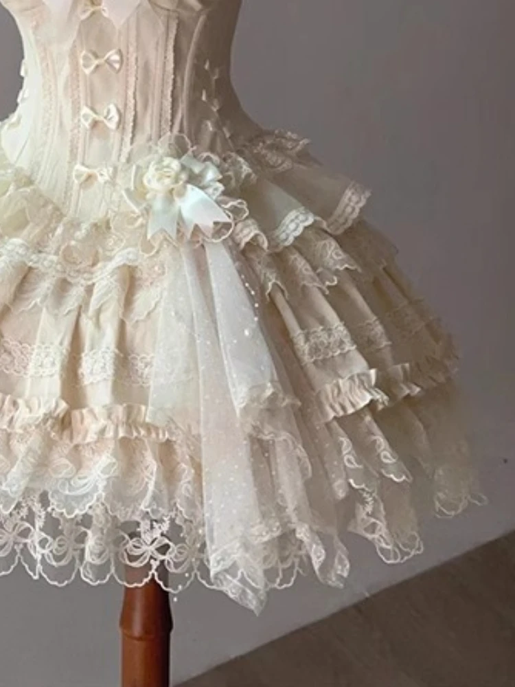 BXOXO Summer Sweet Style Elegant Woman Dress Lolita Y2k Design Lace Splice Bow Dress Fashion Bandage Retro Female Princess Party Dress
