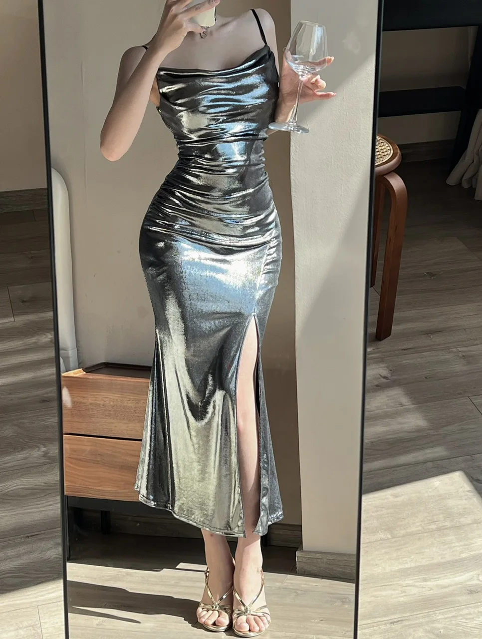 Bxoxo Summer Vintage Bodycon Dress for Women Fashion Sexy Sleeveless Spaghetti Strap Slim Party Club Vestidos Female Elegant Clothes