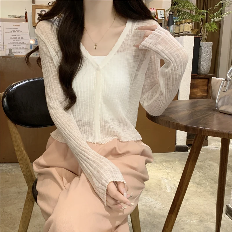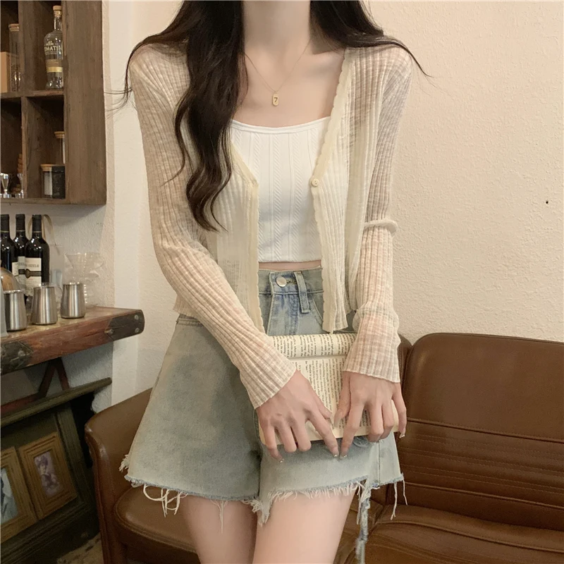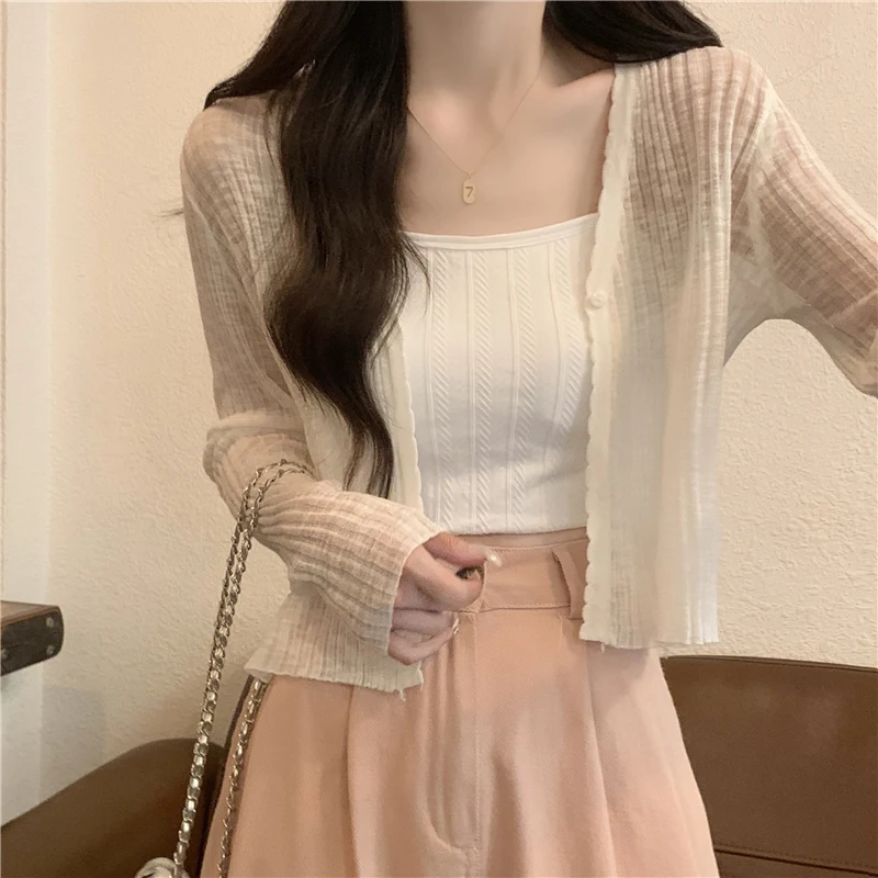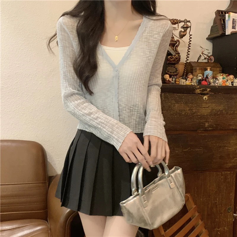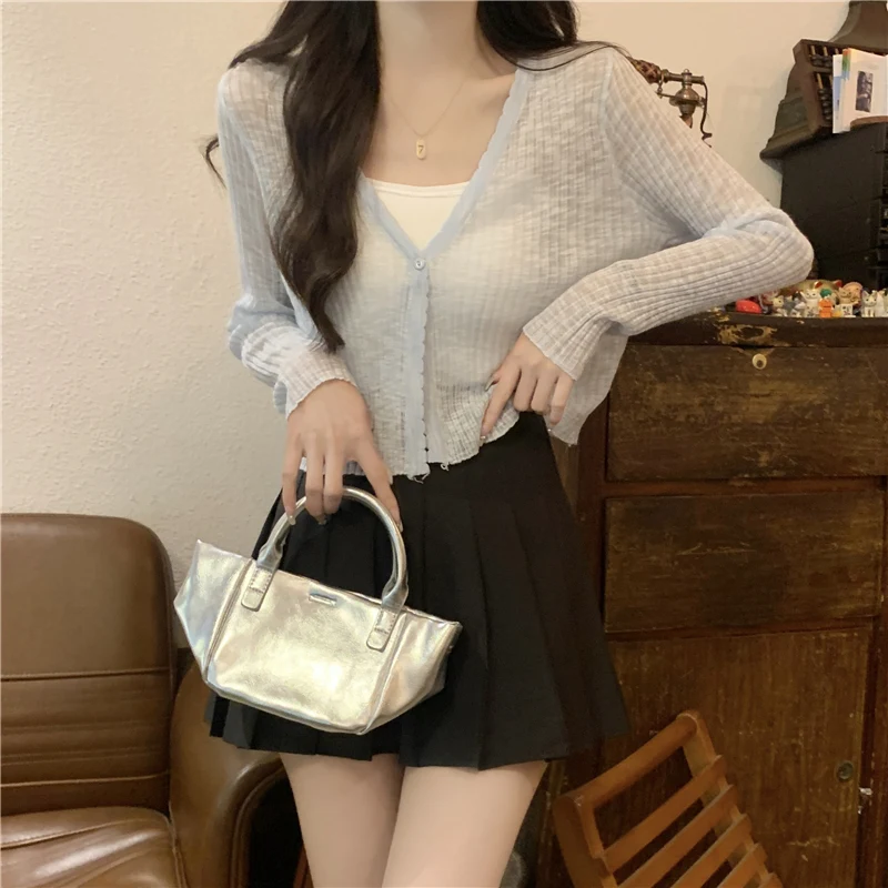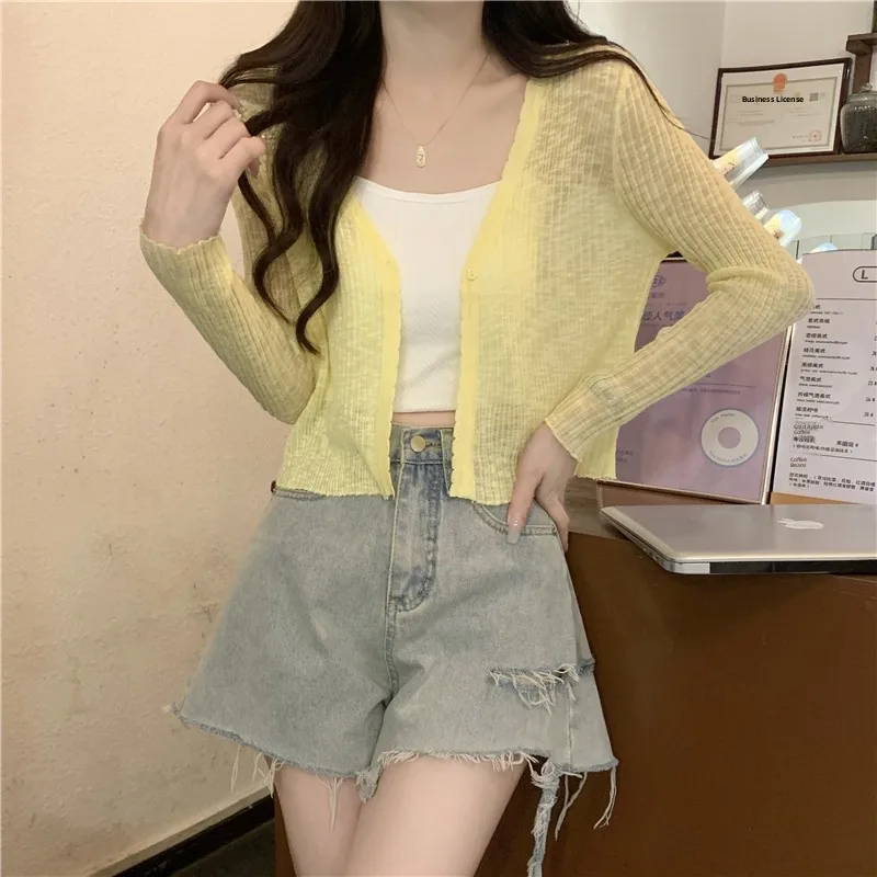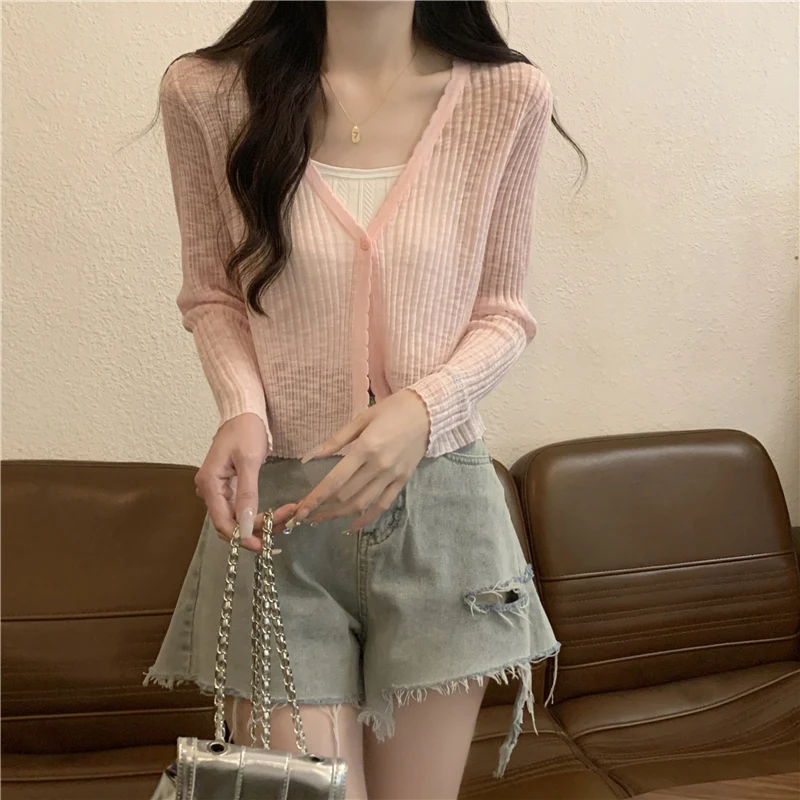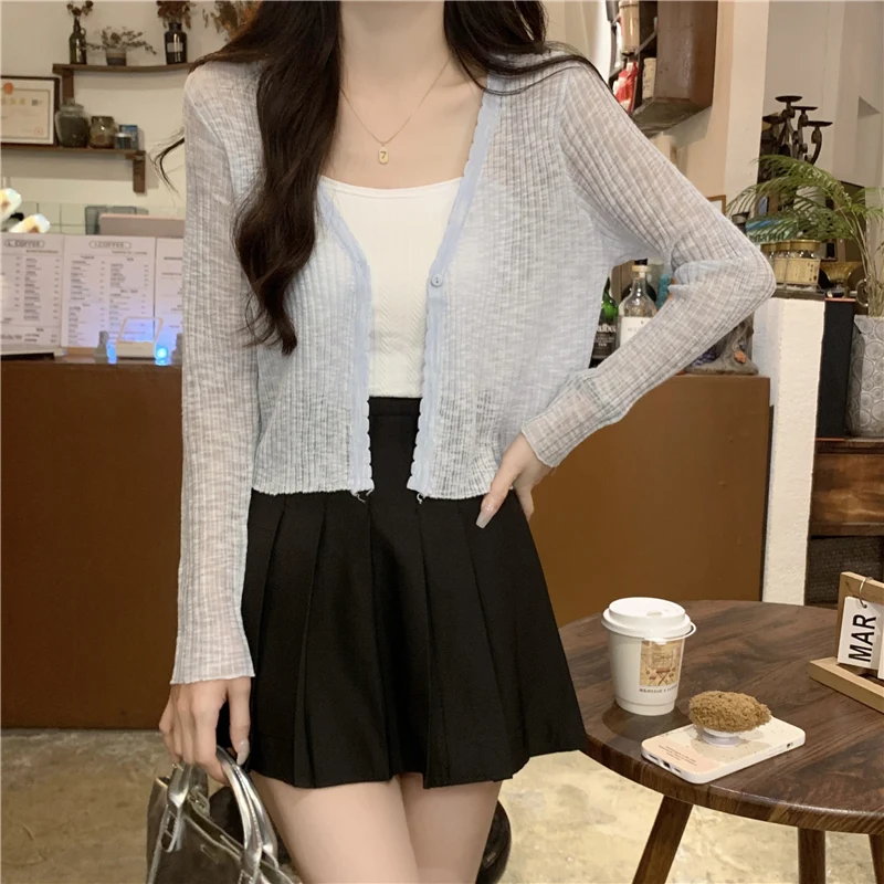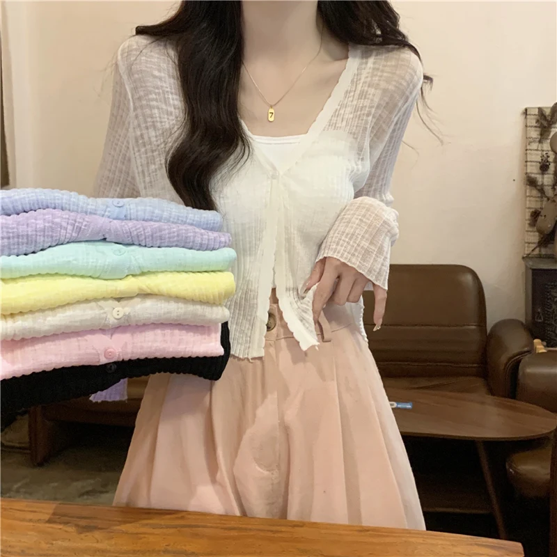 Bxoxo Sun Protection Light Weight Knitted Ice Silk Long Sve Cardigan Women's Slim Fit Summer New Sle Breathable Outerwear T-irt