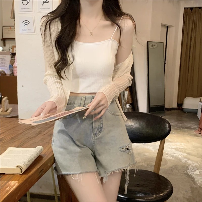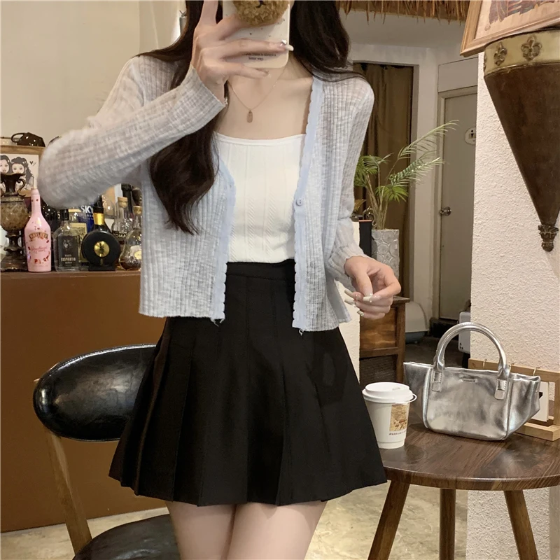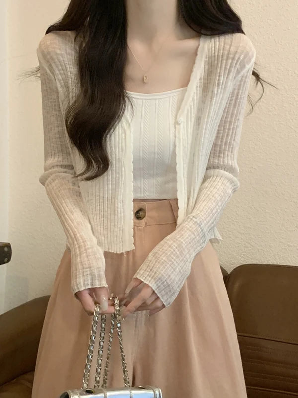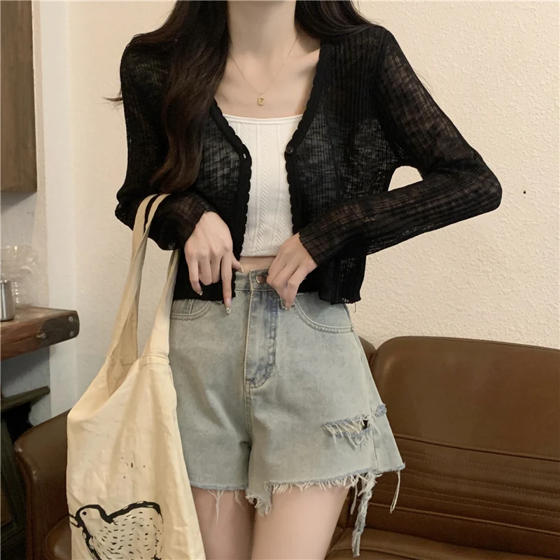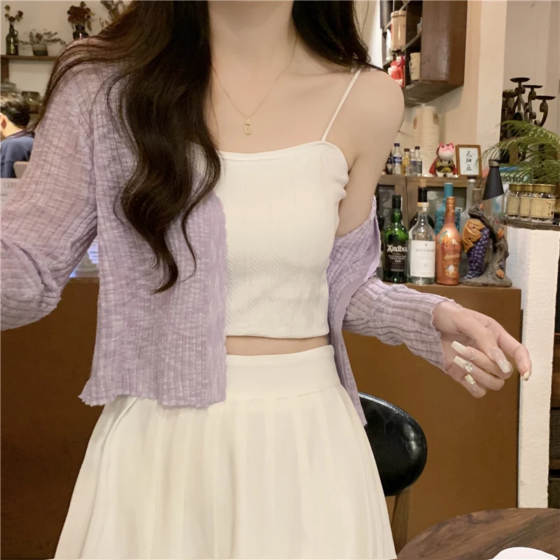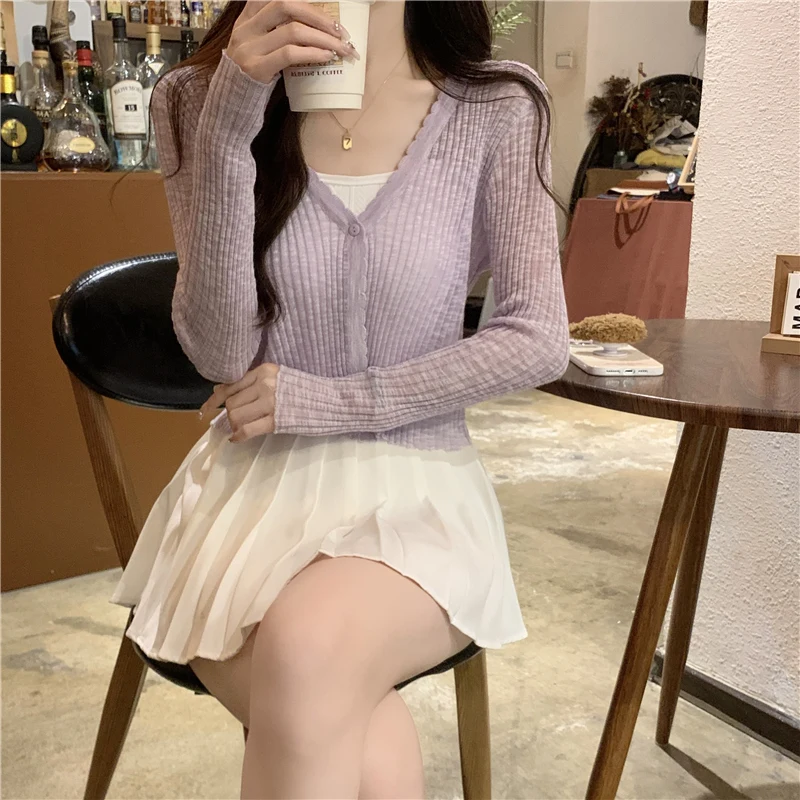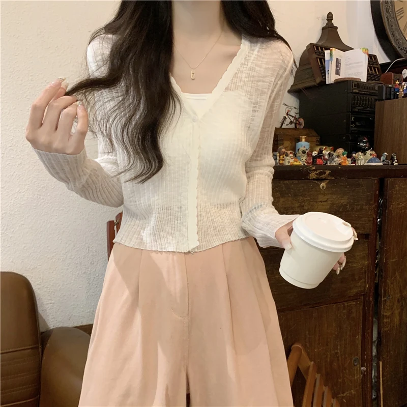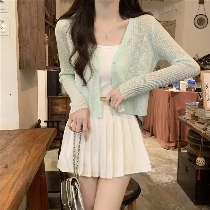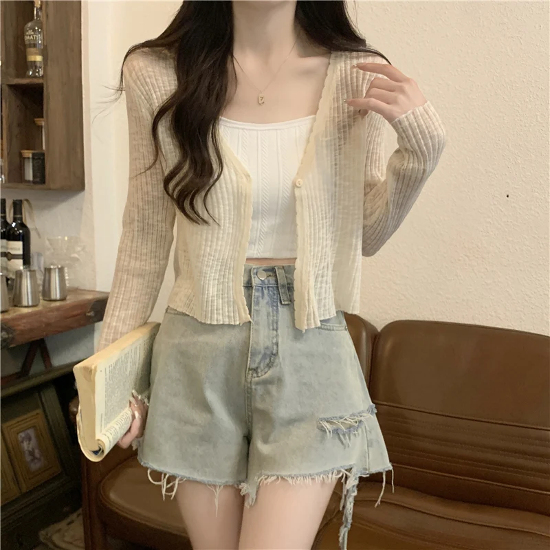 Bxoxo Sun Protection Light Weight Knitted Ice Silk Long Sve Cardigan Women's Slim Fit Summer New Sle Breathable Outerwear T-irt