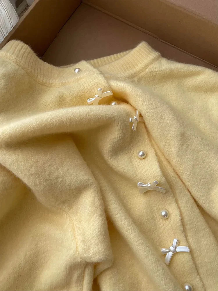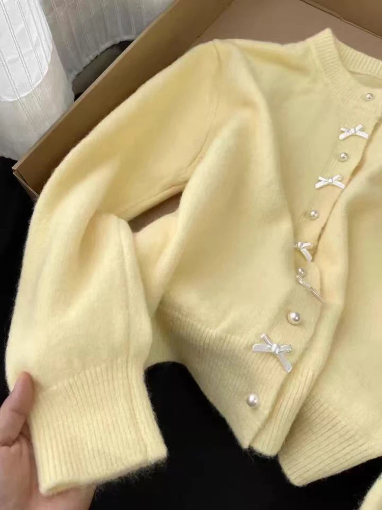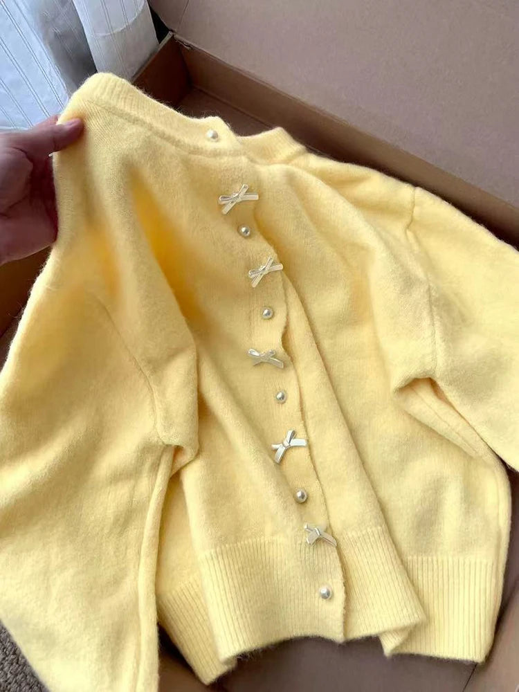 Bxoxo Sweet Bow Knit Cardigan Women Autumn Winter Loose Long Sleeve Casual Sweater Female Streetwear All Match Knitted Pullover New