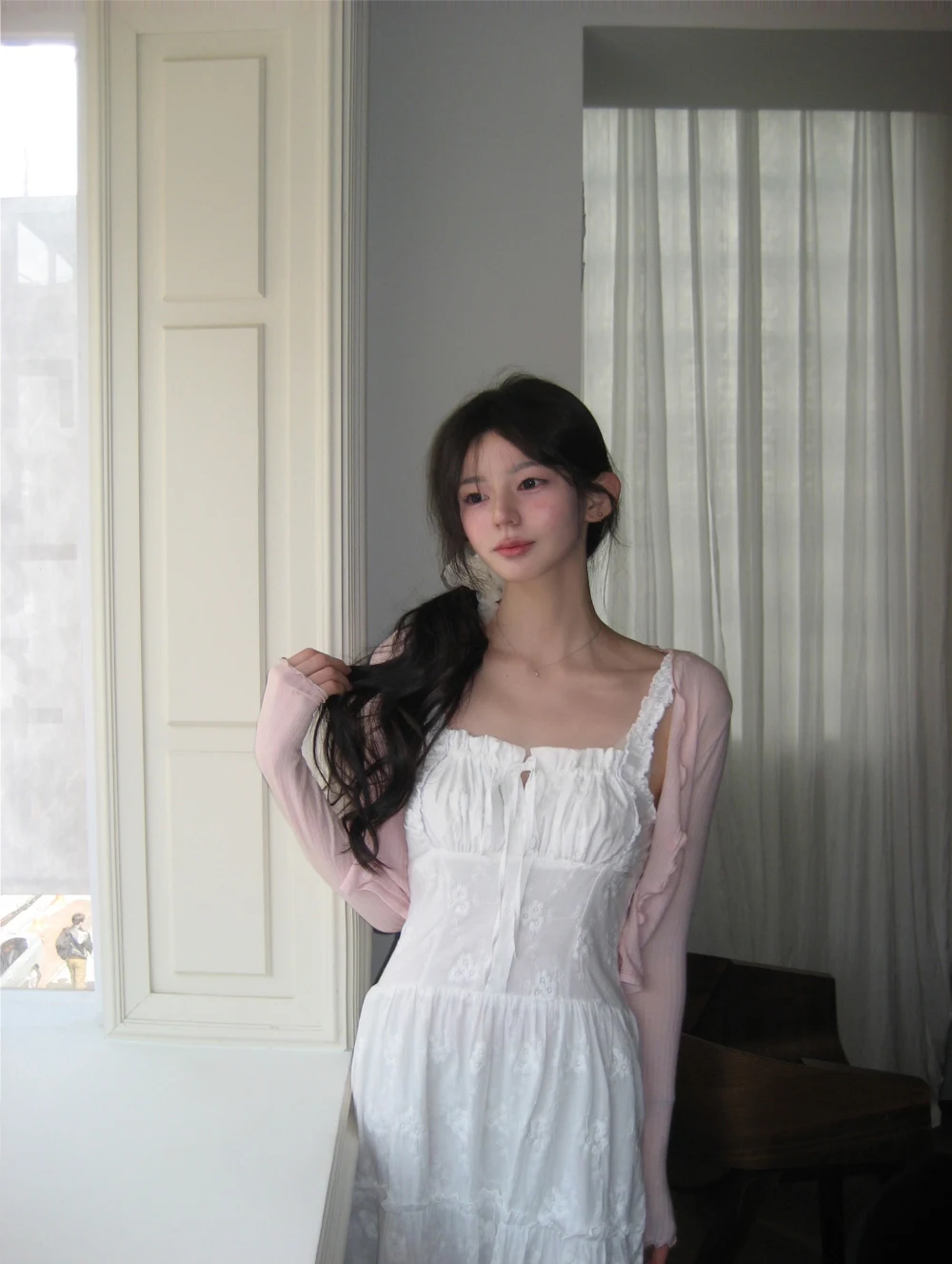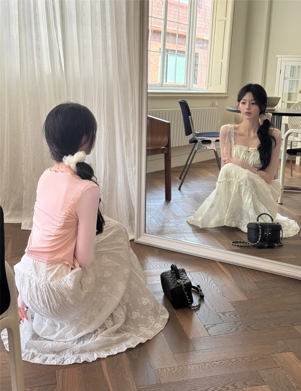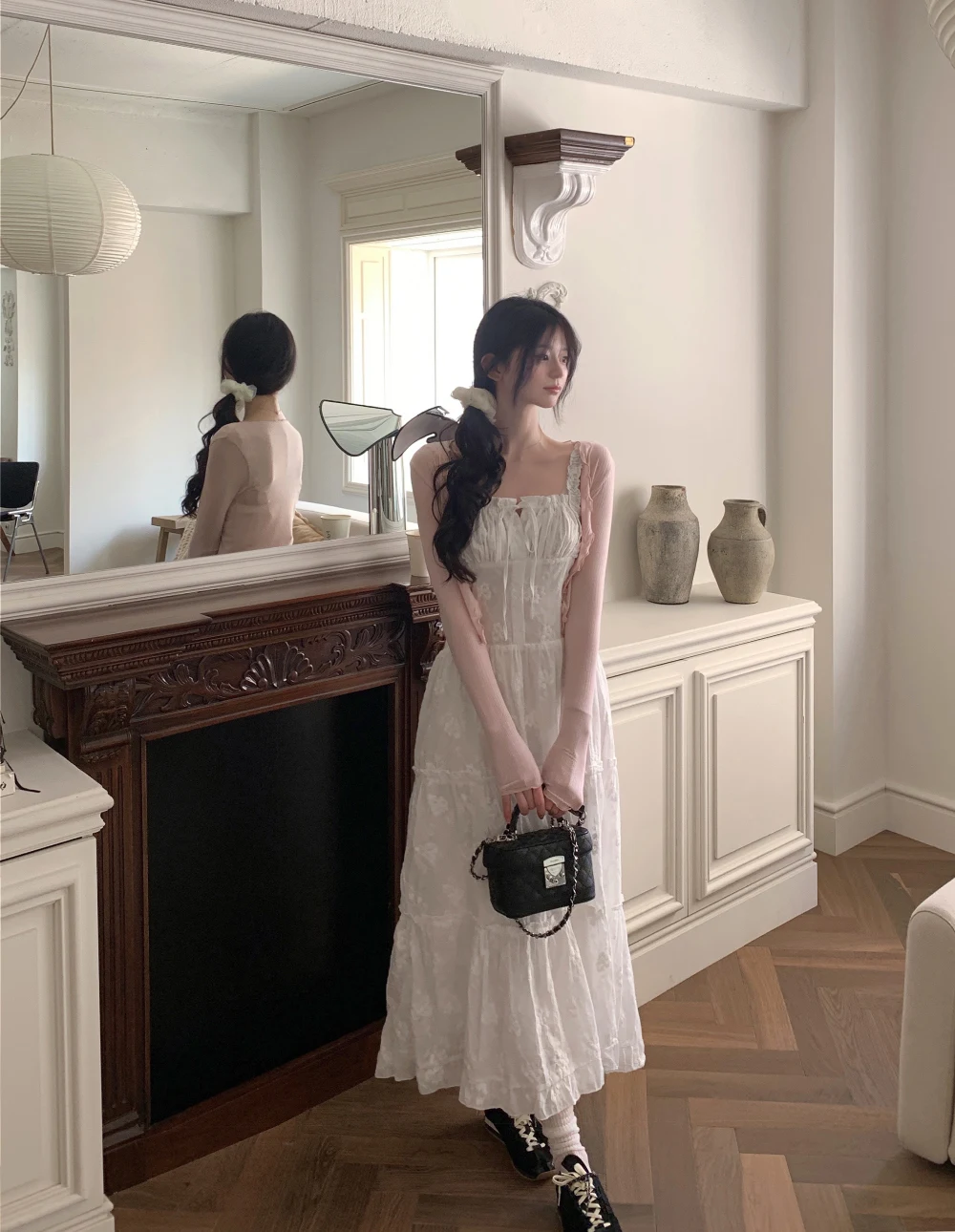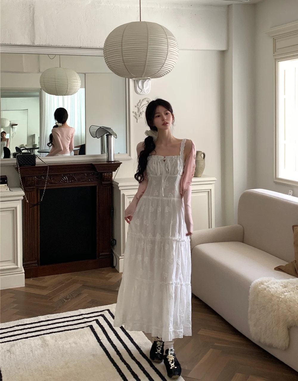 This dress exudes a sweet and fresh style, perfect for spring and summer. Its delicate design and soft colors make it a standout piece in any wardrobe.