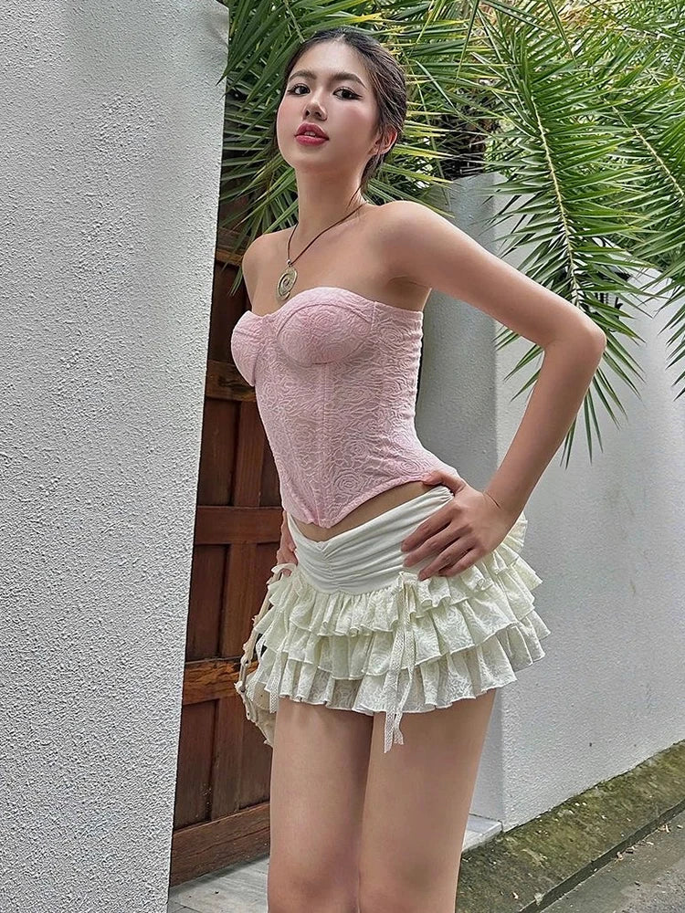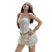 BXOXO Sweet Ruched Elegant 2 Piece Set Women Summer Trend Jacquard Strapless Tops+Tierred Skirts Sweet Girl Fashion Outfits