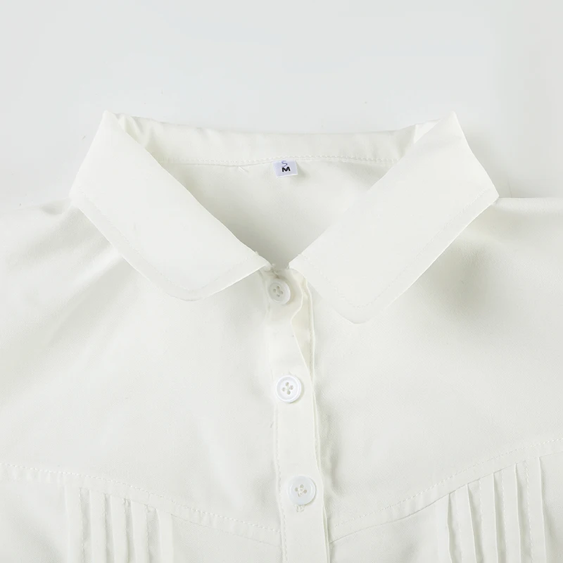 BXOXO Sweet Solid Simple Office Lady T-Shirts Summer Short Sleeves Slim Fit Folds Button Fashion New Women’s Clothing
