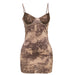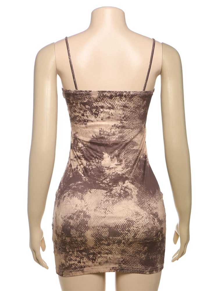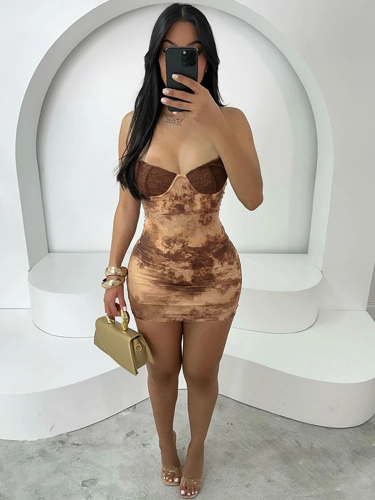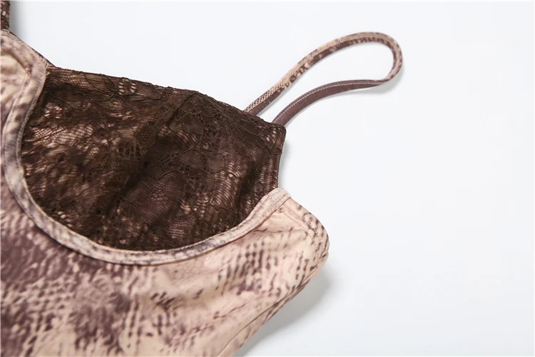 BXOXO Thin Backless Patchwork Dress Women Sexy Spaghetti Strap Sleeveless Skinny Lace Print Midnight Club Party Mini Bodycon