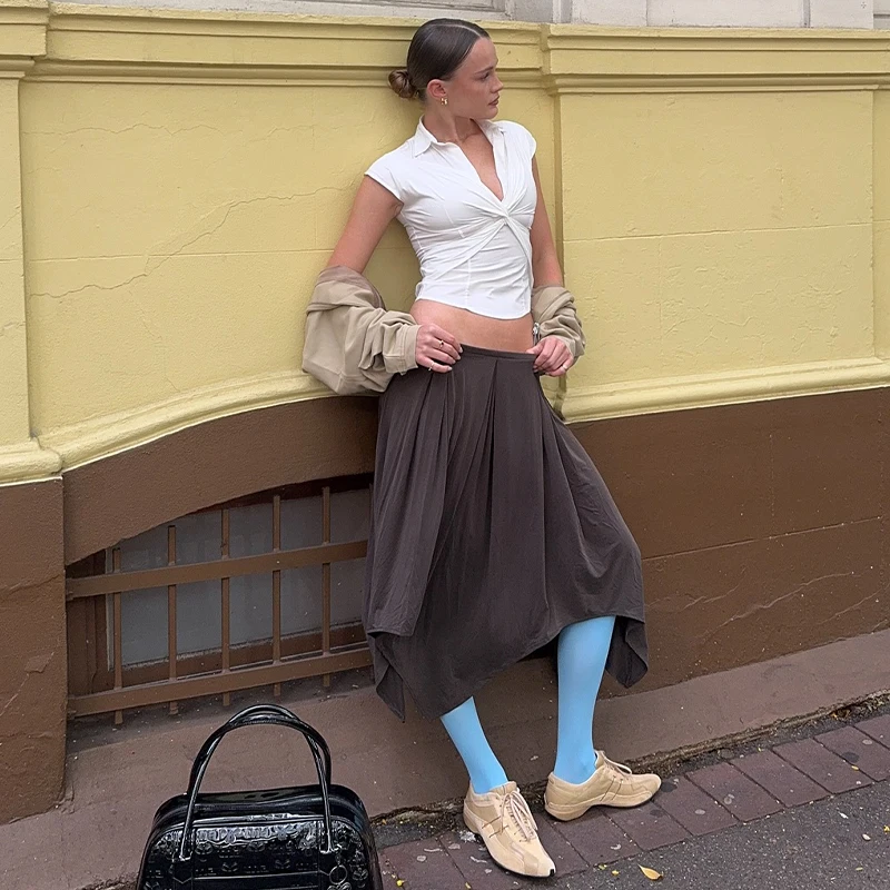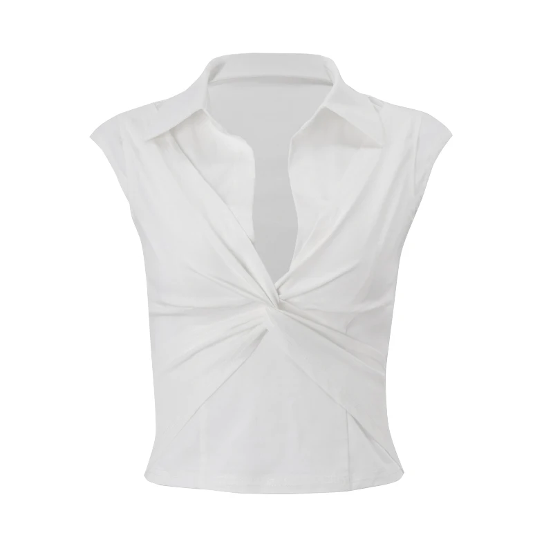 Bxoxo Turn-Down Collar Casual Fashion Sexy Solid Twisted Tops Y2K Summer New All-match Sweet Cute Daily Streetwear T-shirt