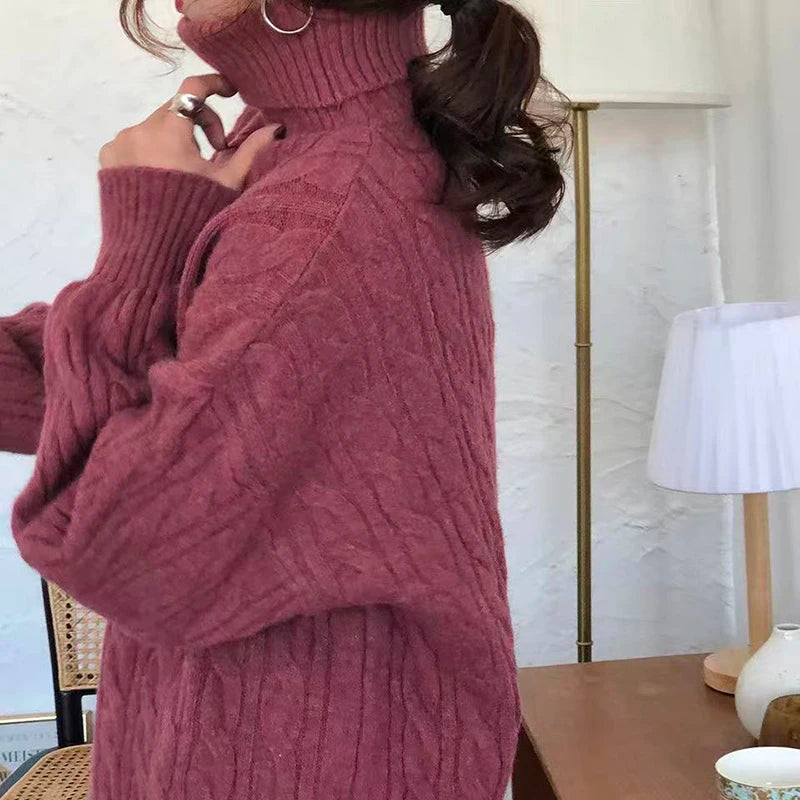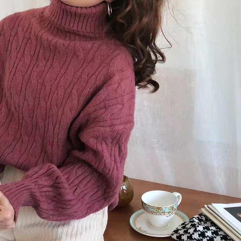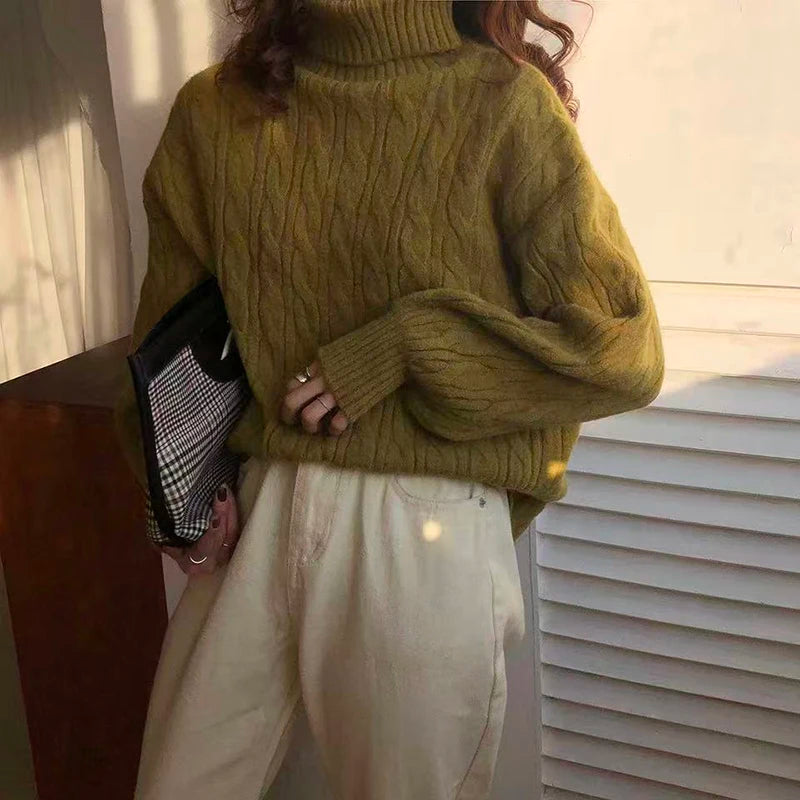 Bxoxo Turtleneck Knitted Sweater for Women Autumn Winter Thick Loose Soft Pullover Sweaters Korean Solid Office Lady Warm Jumper New