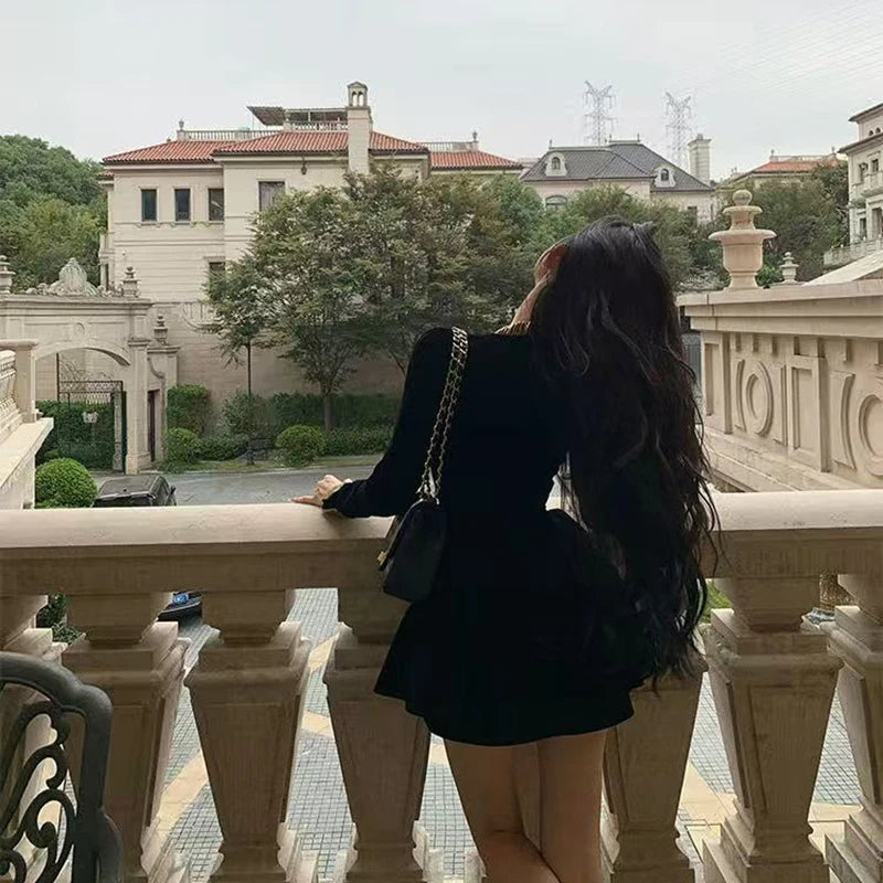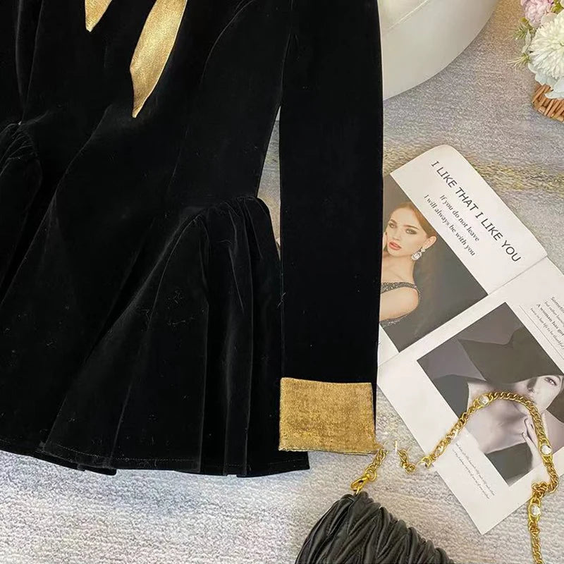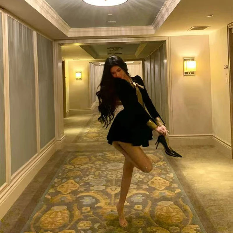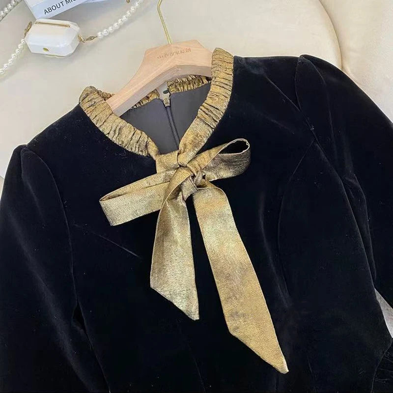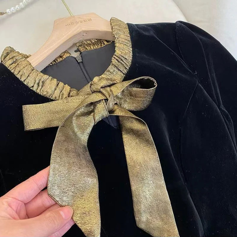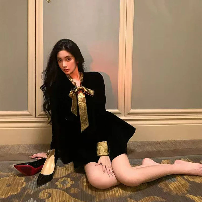 Bxoxo Velvet Lace Up Mini Dress Autumn Korean Chic Bow Patchwork Mini Dress Fashion Aesthetic Streetwear Party Club Ladies Vestidos