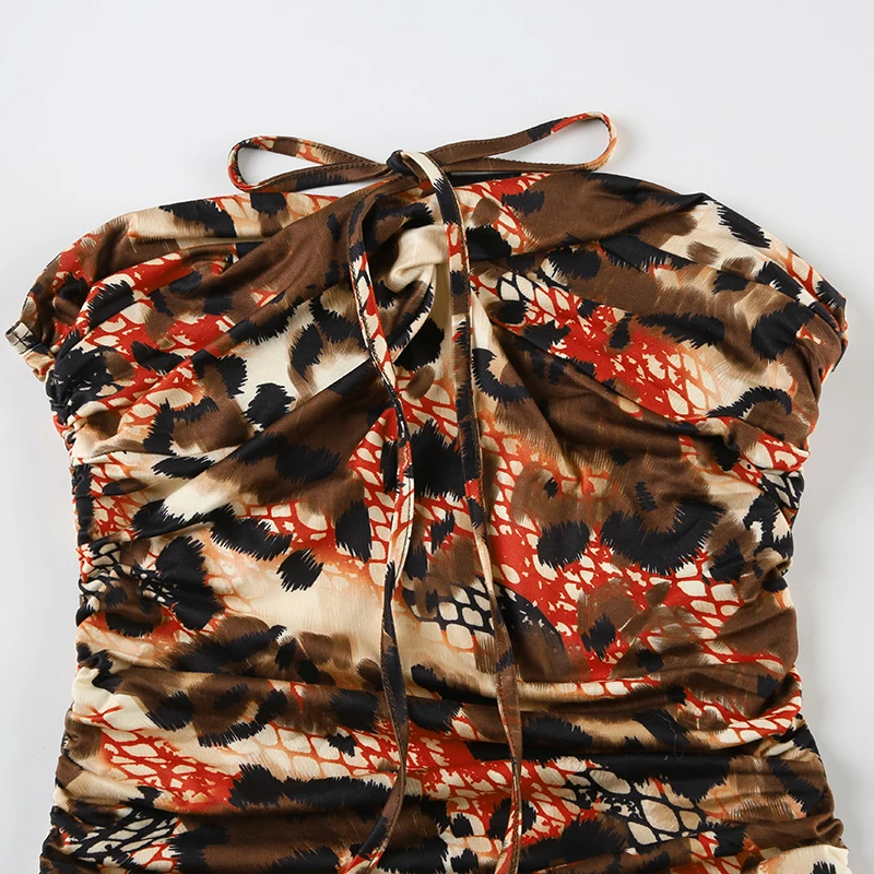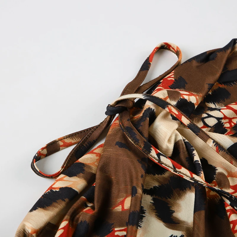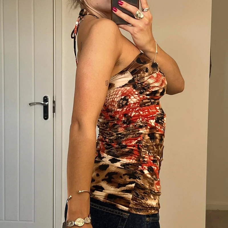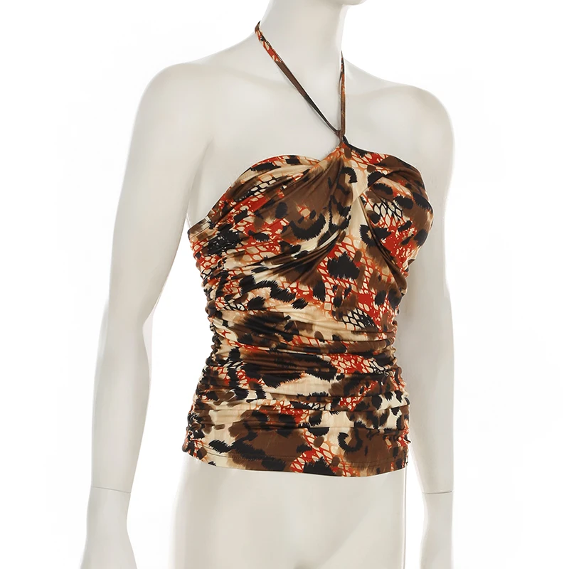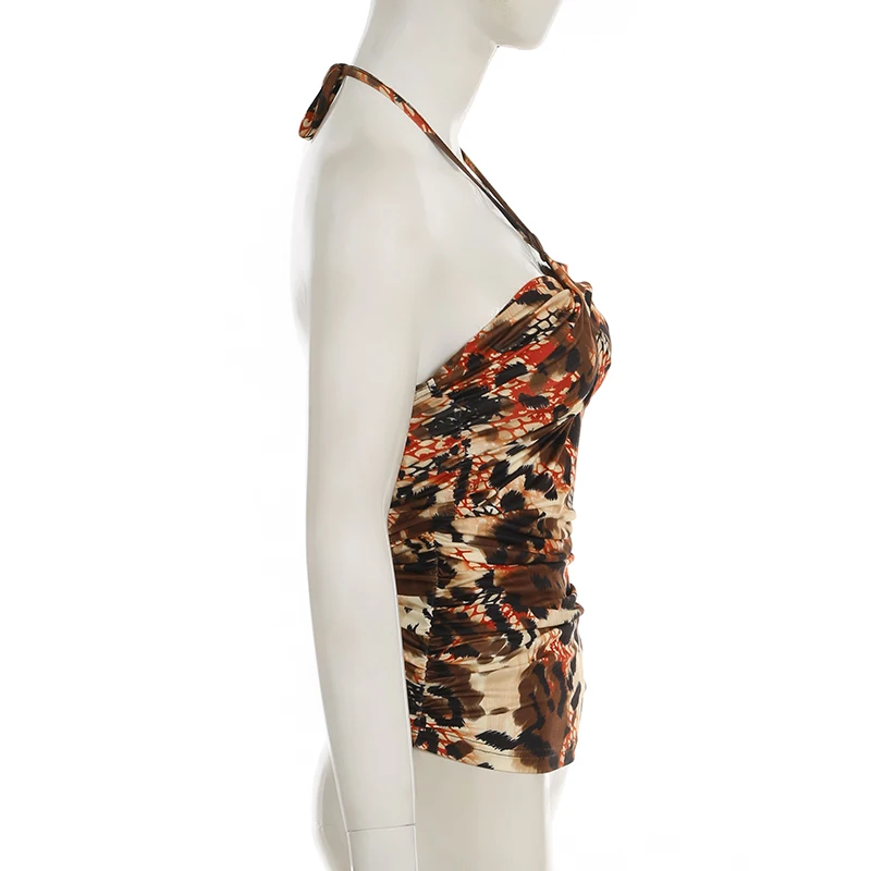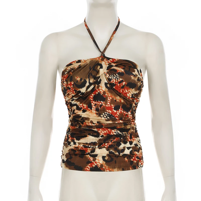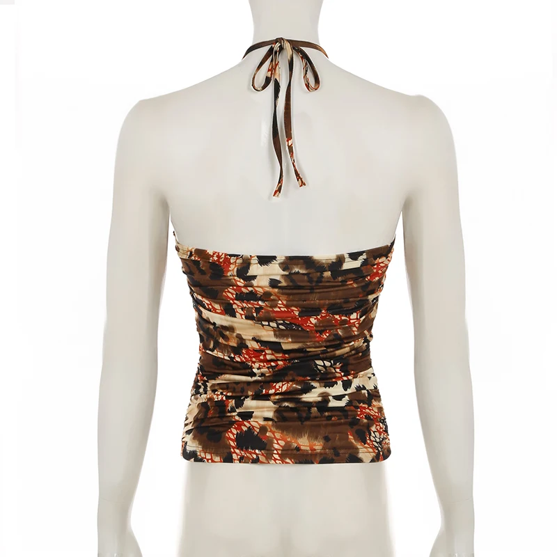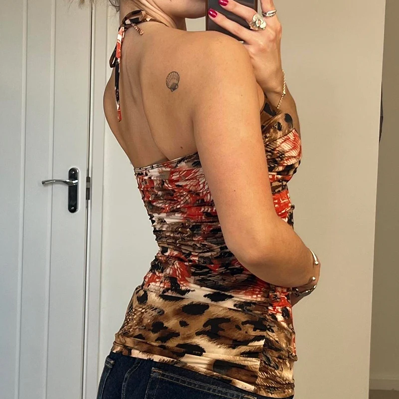 BXOXO Vintage Floral Print Backless Camis y2k Aesthetic Sleeveless Skinny Lace-up Halter Crop Top Women Summer Holiday Tee Lady