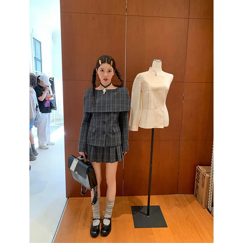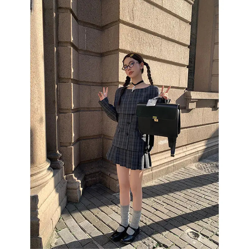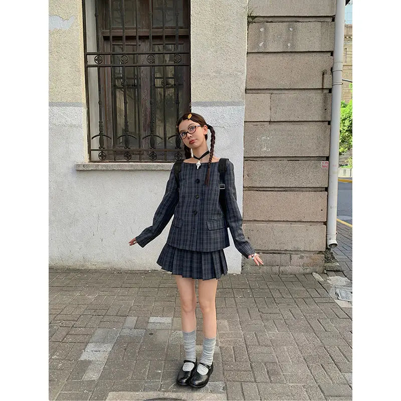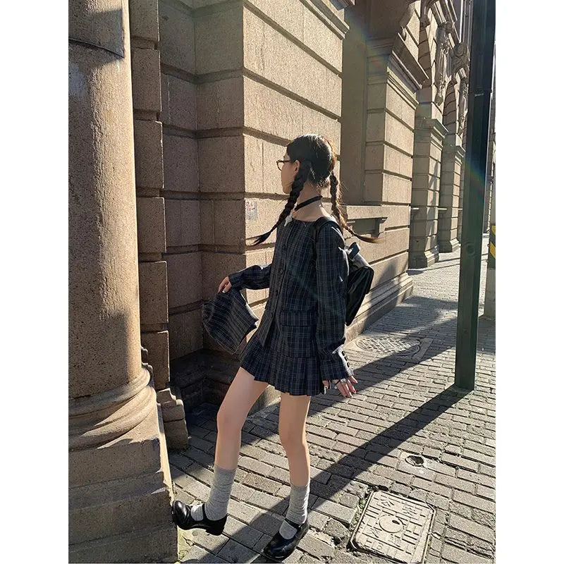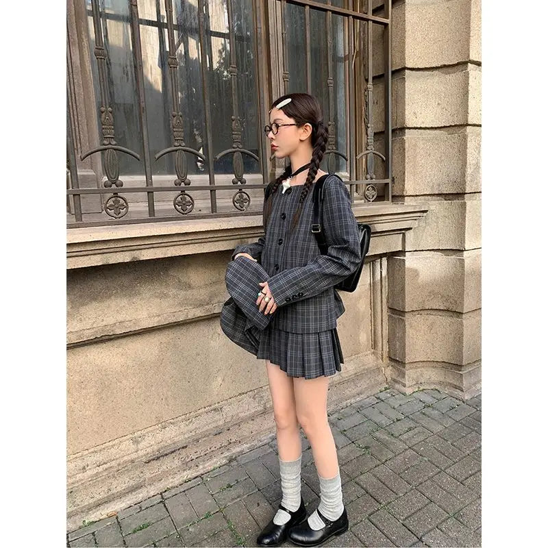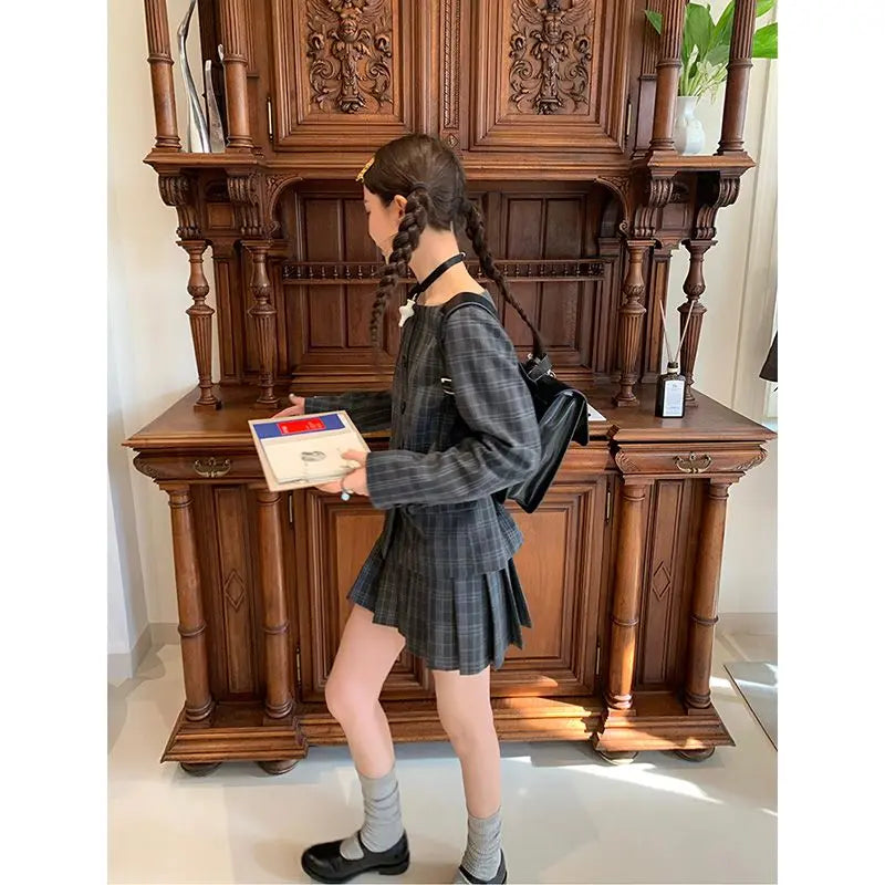 Bxoxo Vintage Plaid Skirt Women Preppy Style Sweet Pleated Mini Skirt Korean Fashion Retro Japanese Harajuku Short Skirts