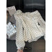 Bxoxo Vintage Polka Dot Print Shirts Women Early Spring New Long Sleeve Blouses Sweet 3D Flower Skew Collar Off Shoulder Blusas Mujer