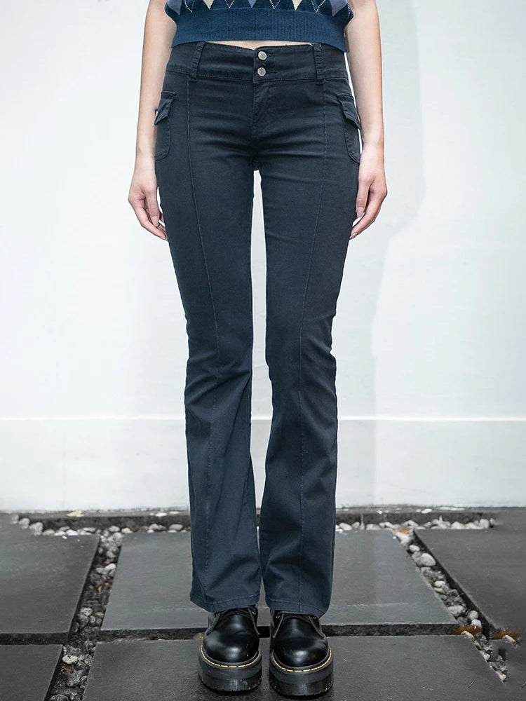 Bxoxo Vintage Solid Low Rise Flare Pants Autumn Casual Black Cotton Slim Pockets Jeans Women Y2k Streetwear Retro Denim Trousers Chic