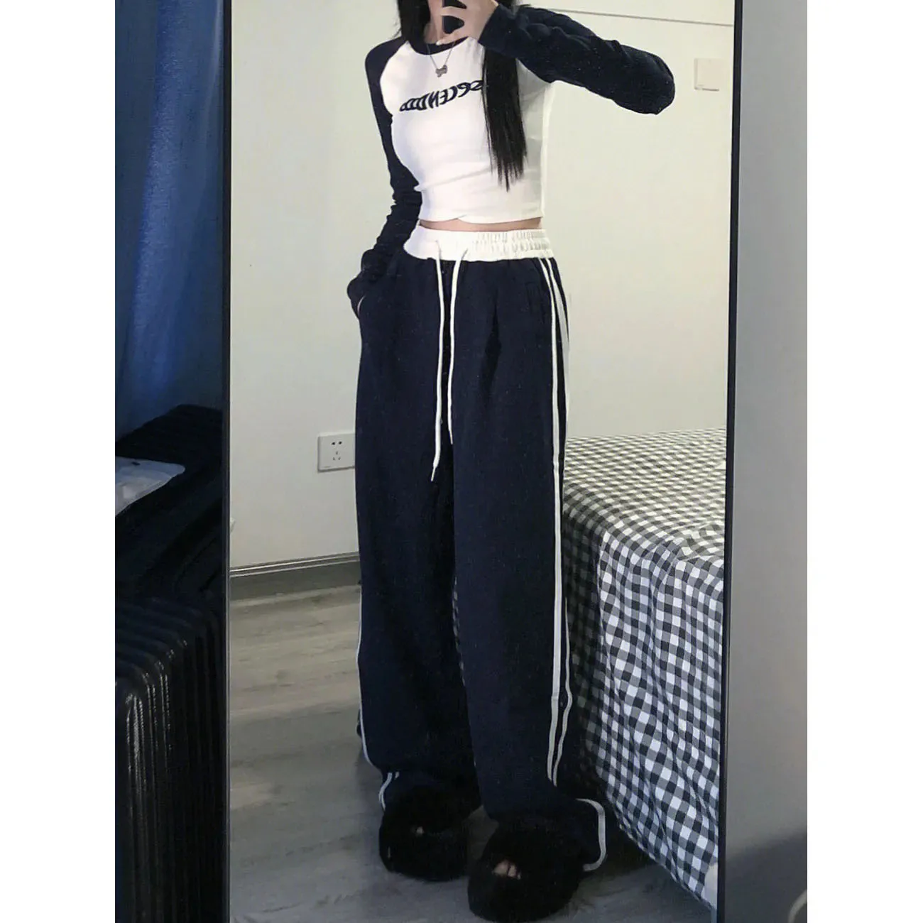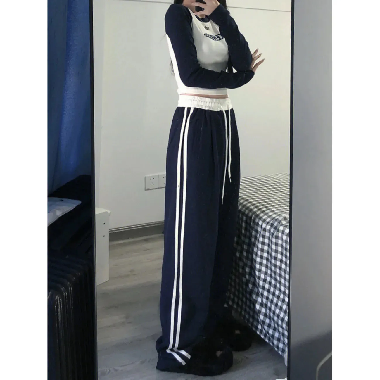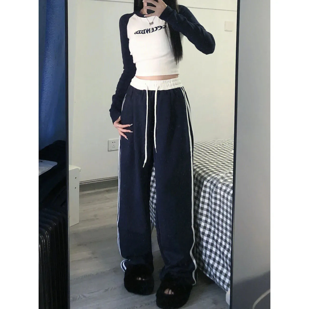 Bxoxo Vintage Stripe Women Wide Leg Pants Y2K Autumn High Waist Baggy Casual Sweatpants Harajuku Korean All Match Straight Trousers