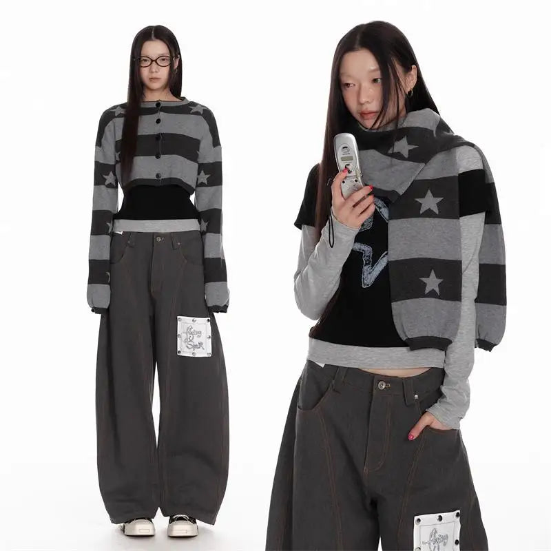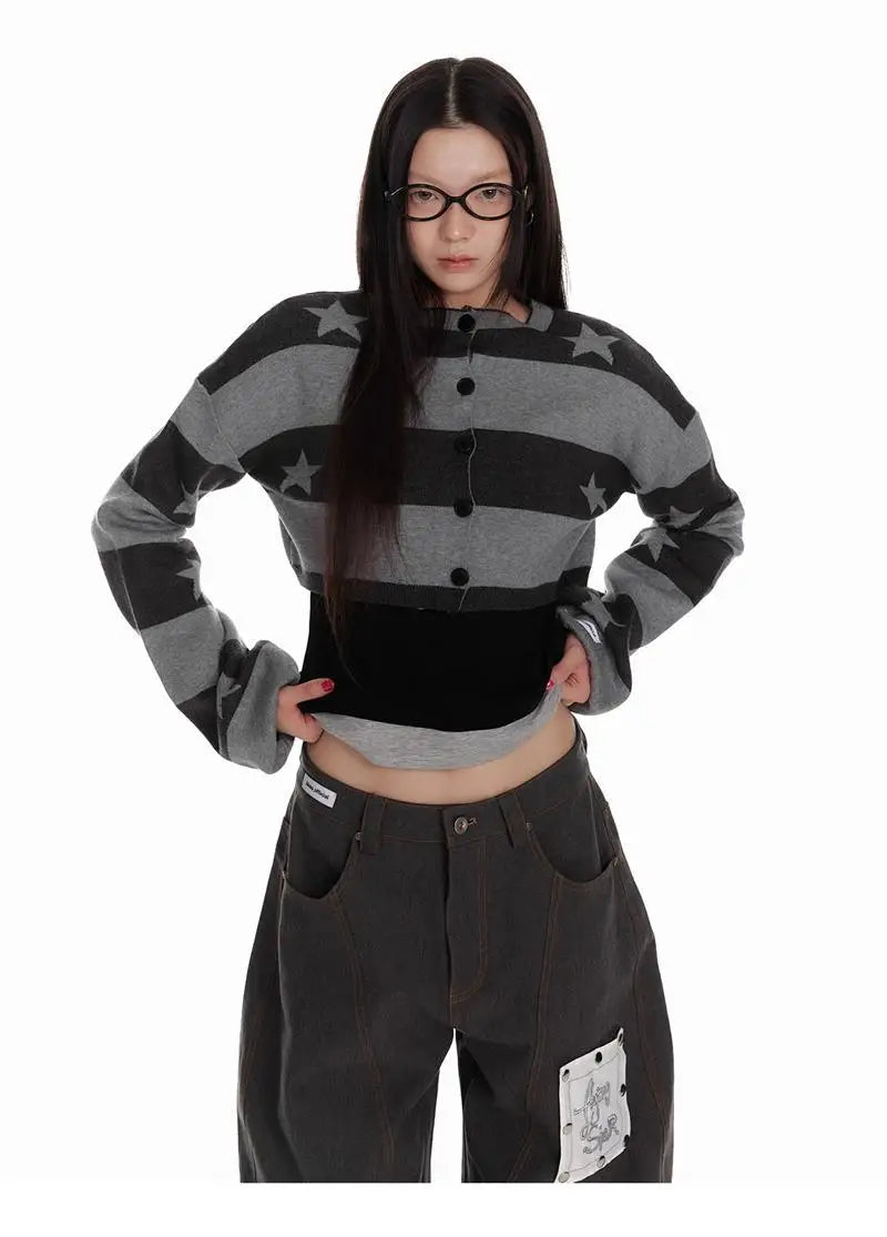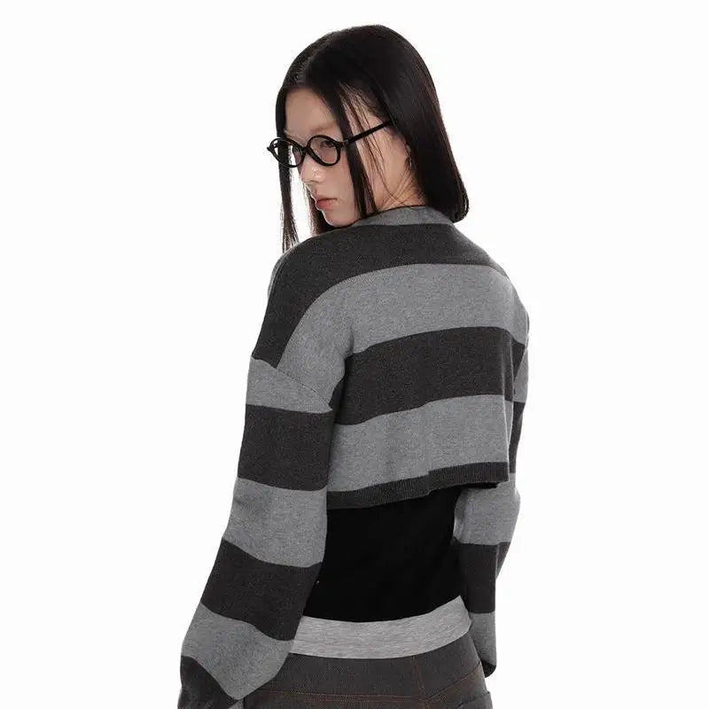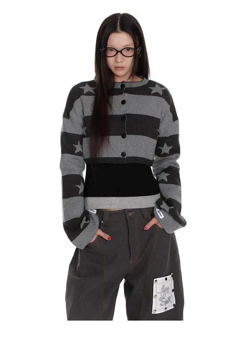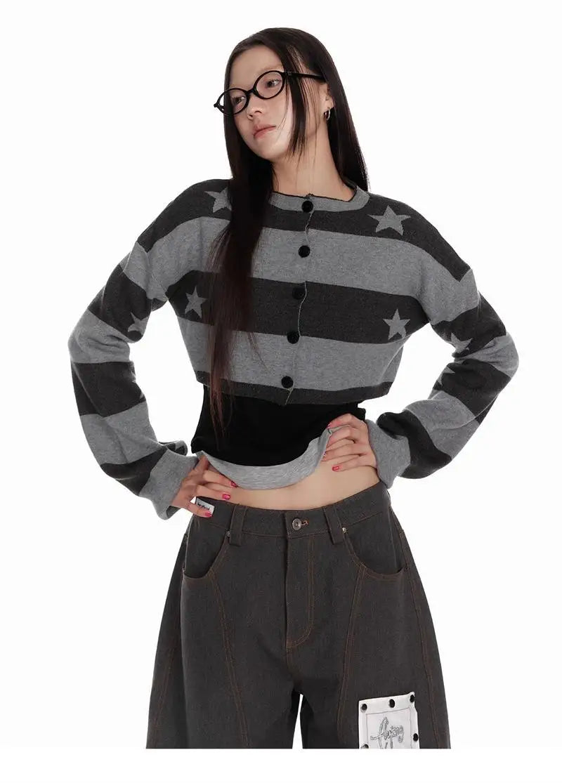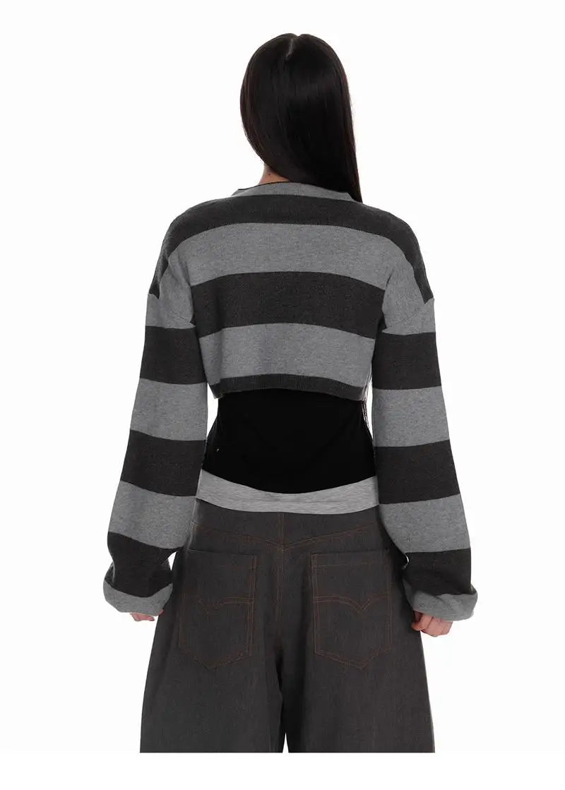 Bxoxo Vintage Striped Knitted Cardigan Women Harajuku Y2k Crop Tops American Retro Gothic Streetwear Cardigan Aesthetics