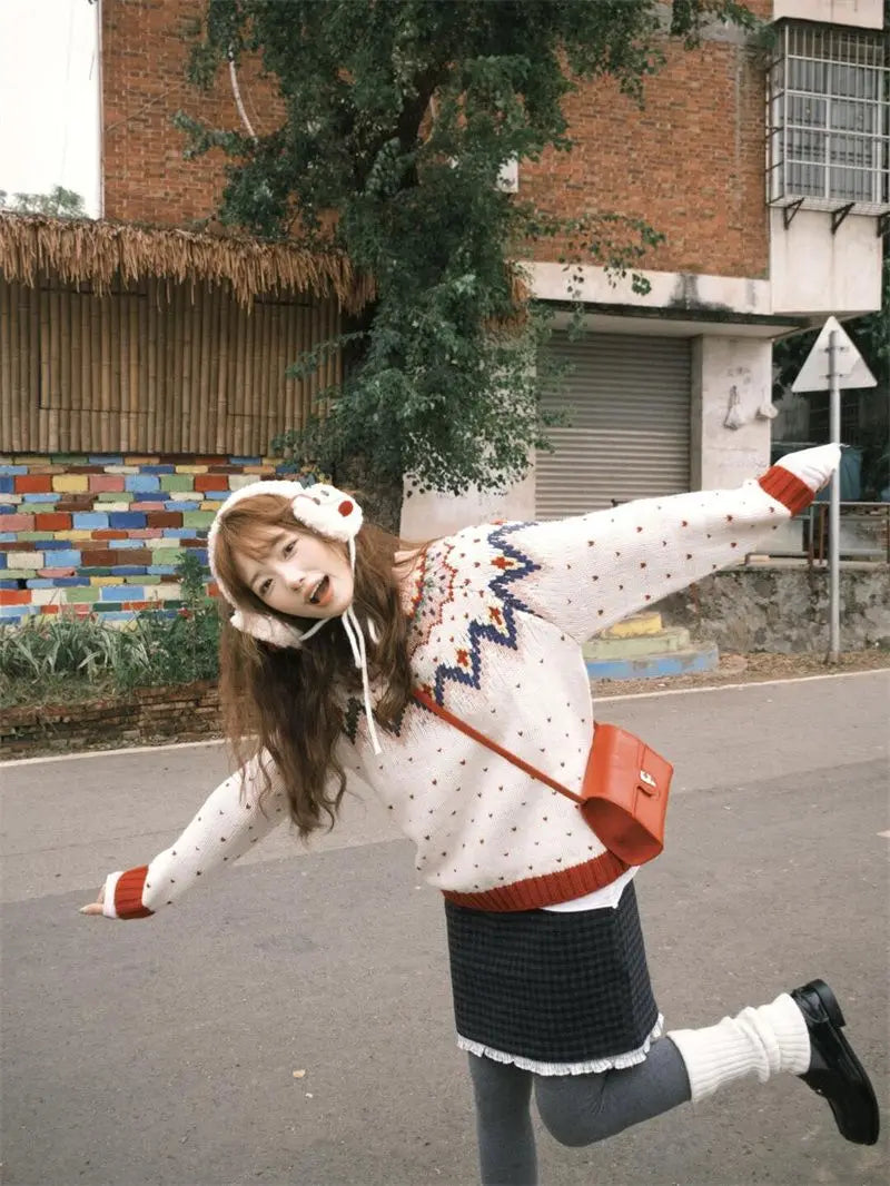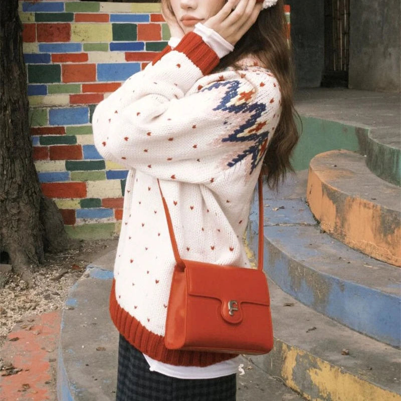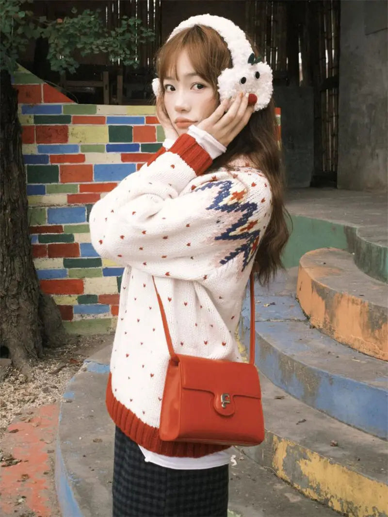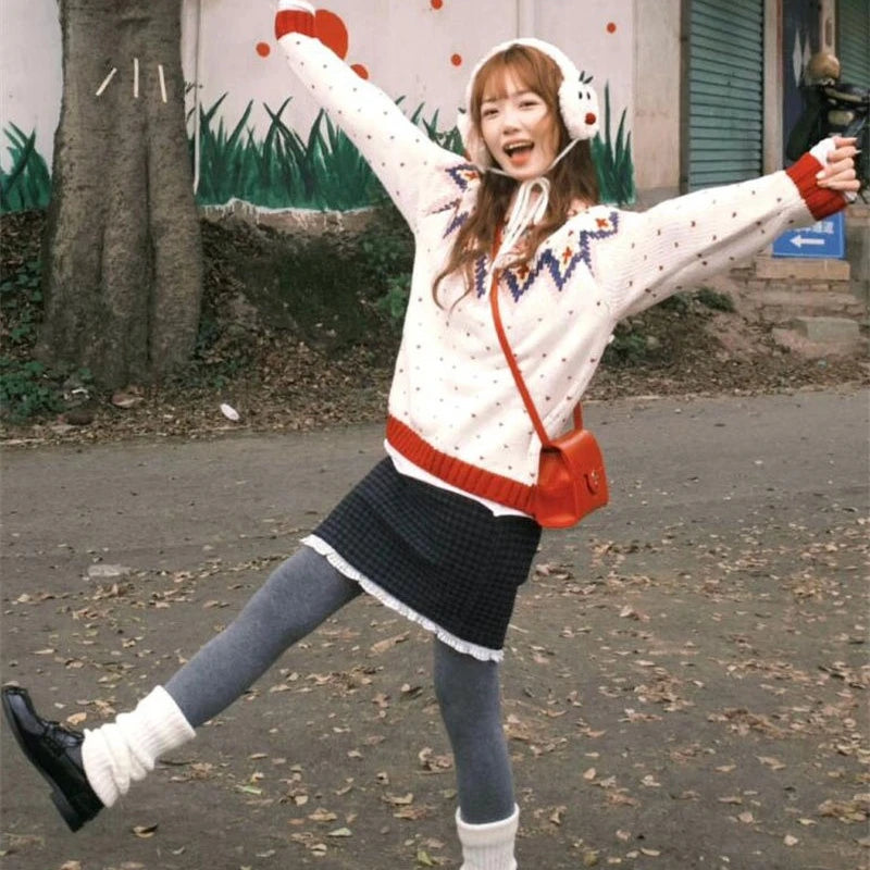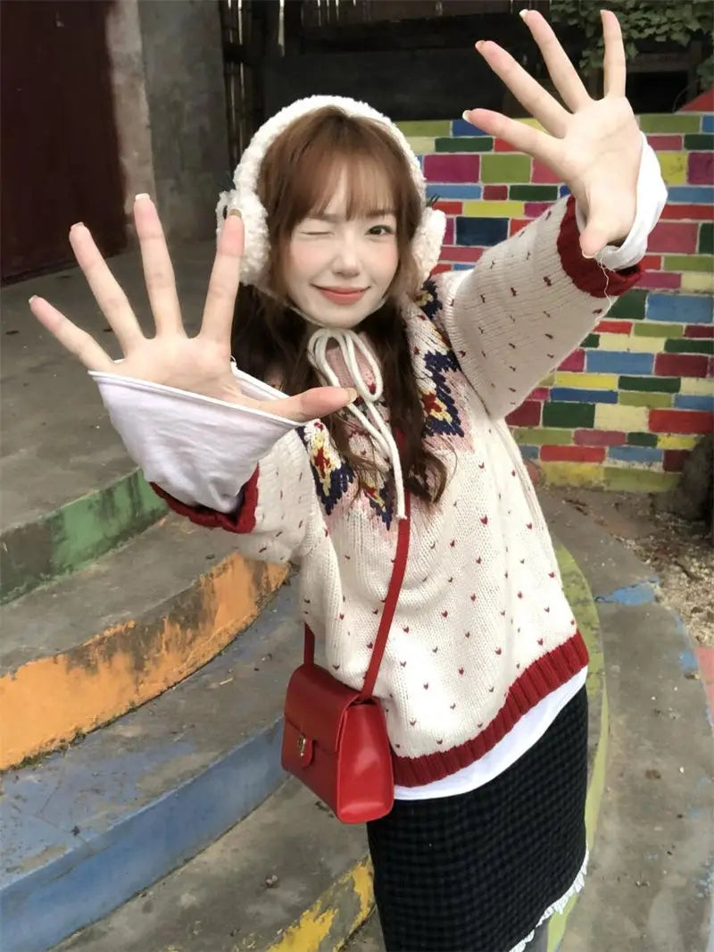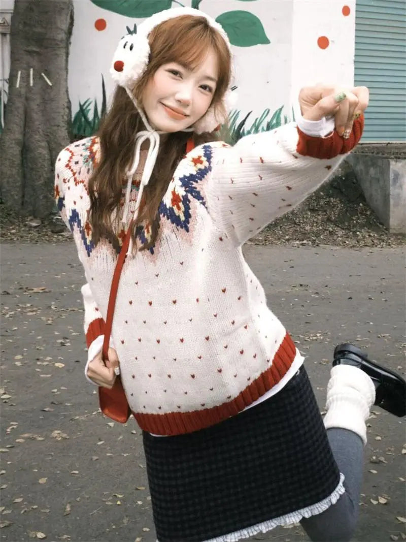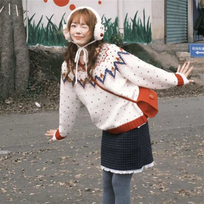 Bxoxo Vintage Sweet Knitted Pullovers Women Preppy Style Long Sleeve Sweater Retro Fashion Casual Autumn Winter Pullovers