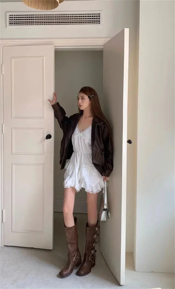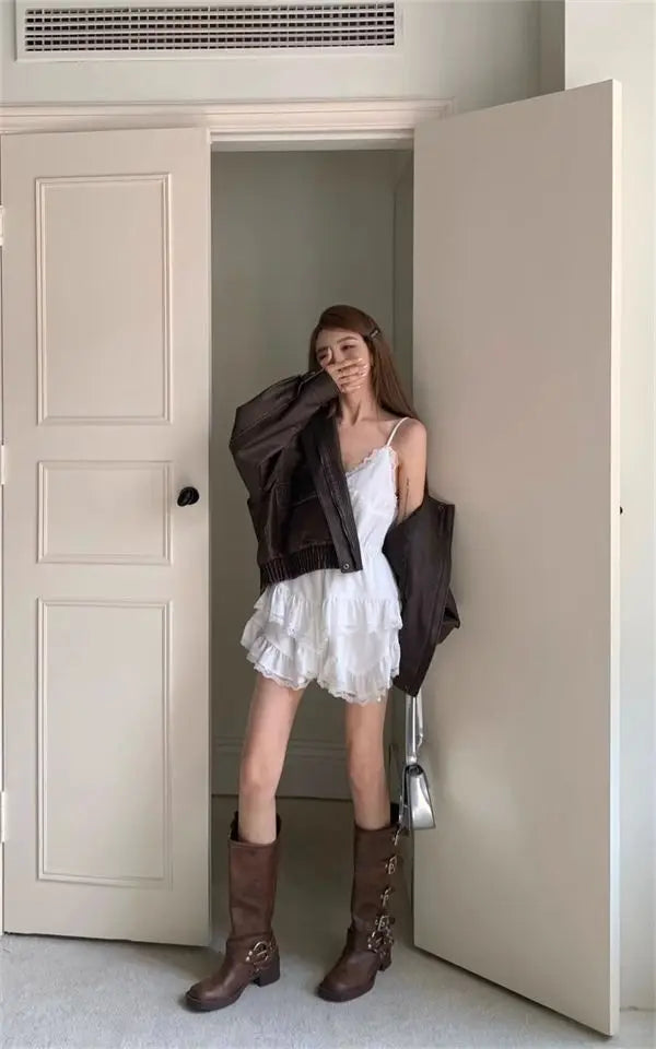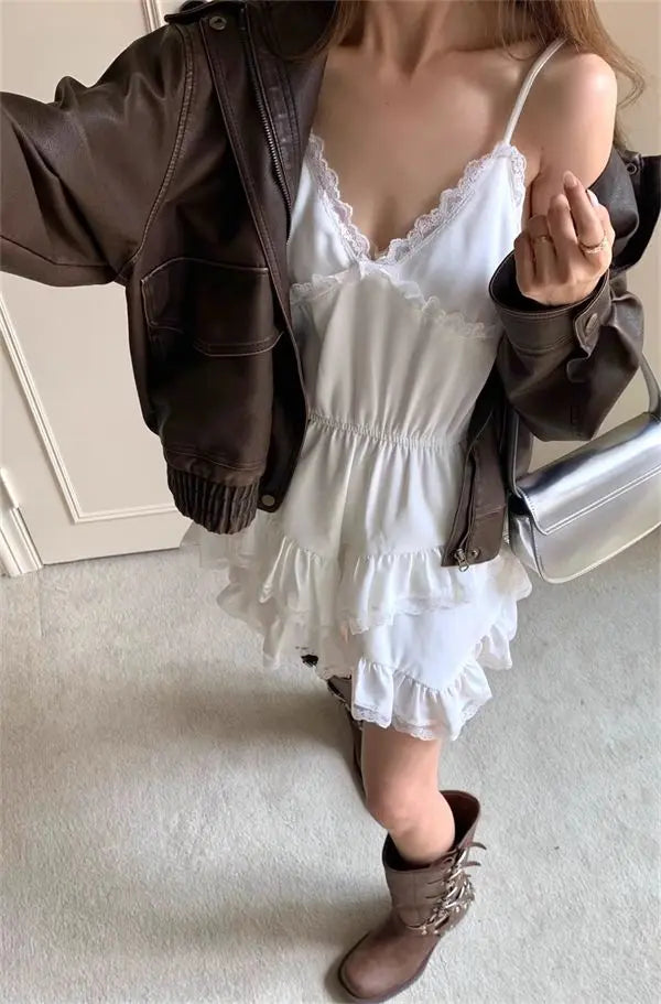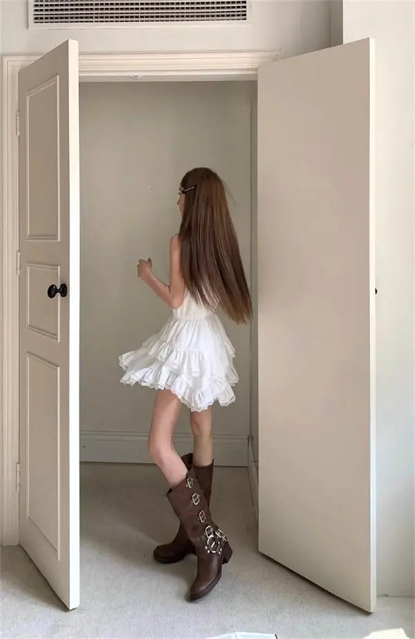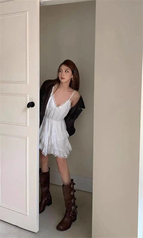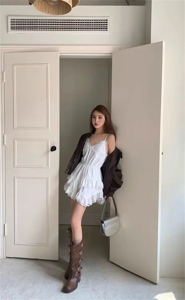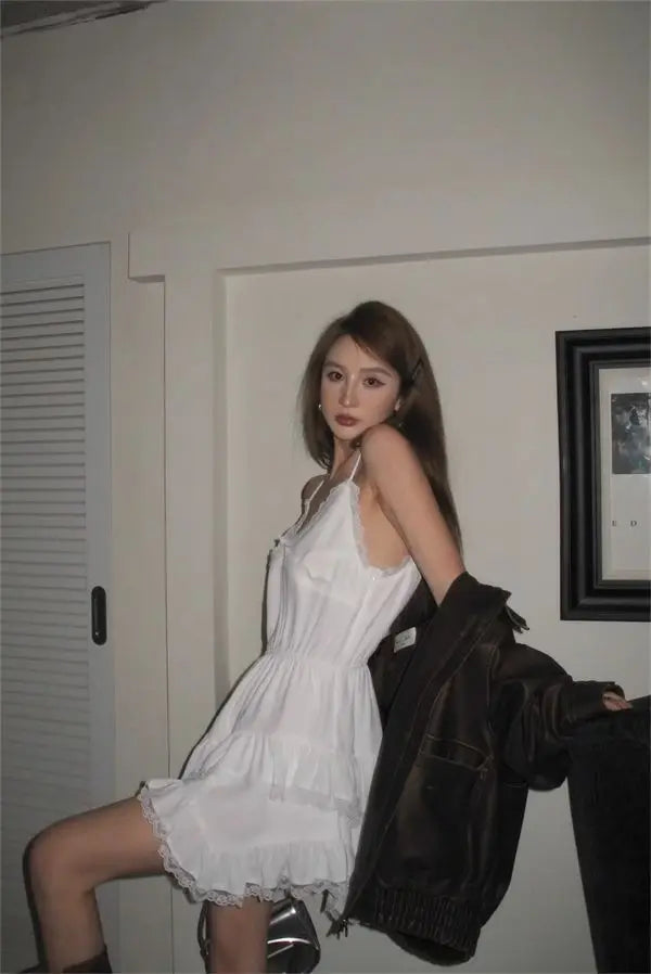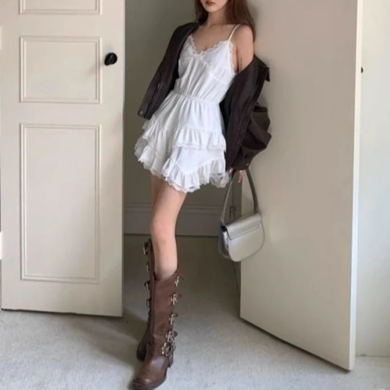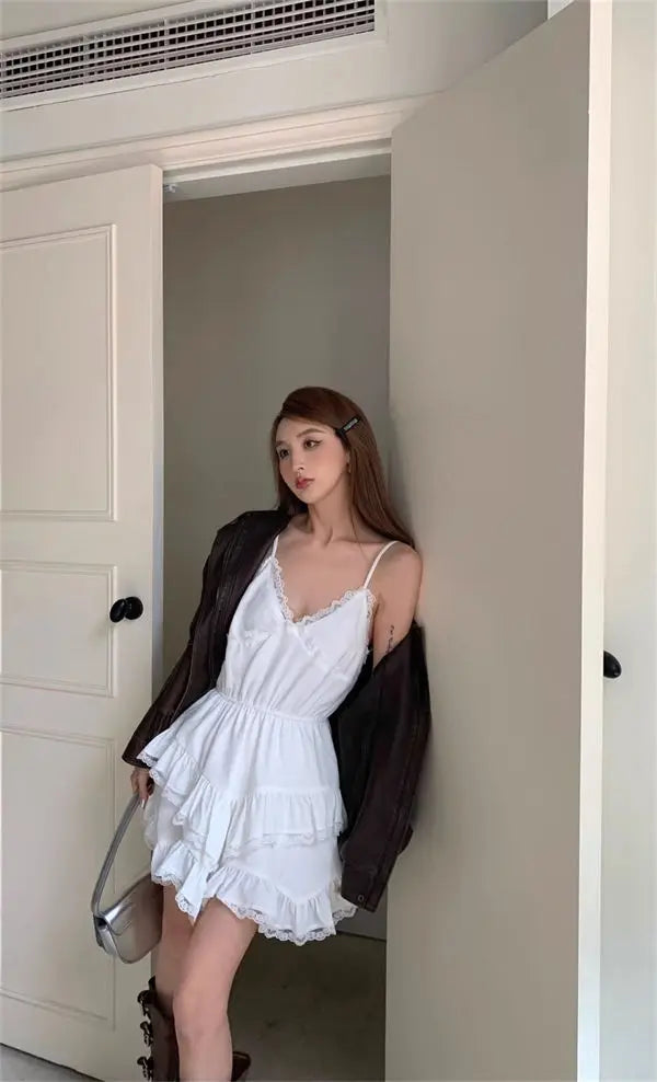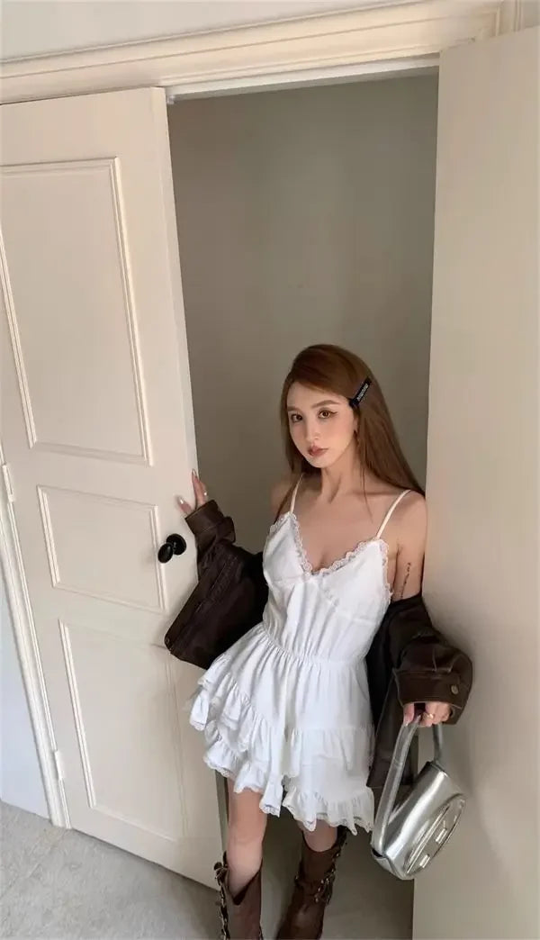 Bxoxo White Lace Mini Dress Women Korean Sweet Sexy One Piece Sleeveless Coquette Aesthetic Elegant Party Short Dresses Y2k