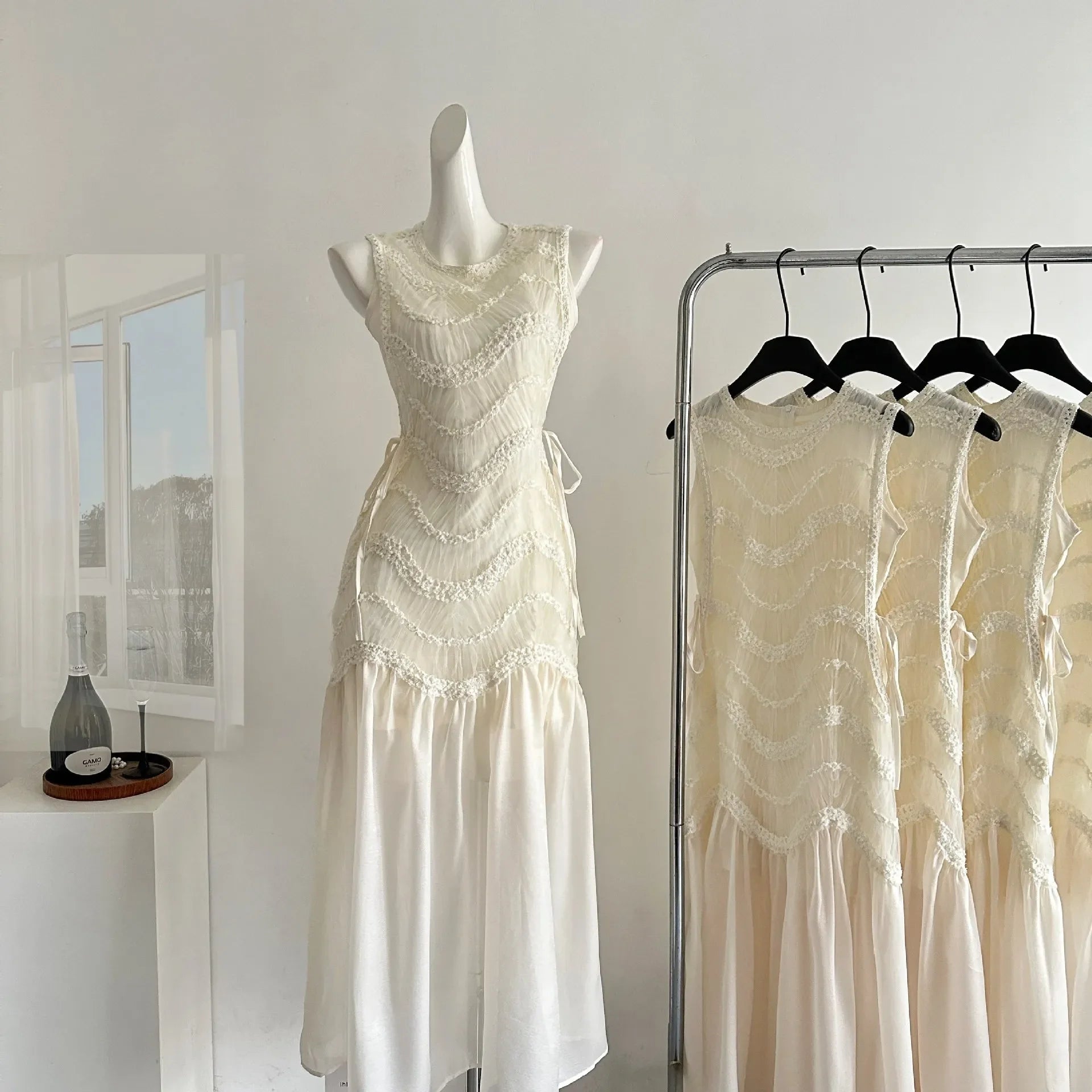 Bxoxo White Sleeveless Princess Style Dress Chinese Artistic Vintage Design Summer Fashionable Mini-Length Polo Collar Empire Waist