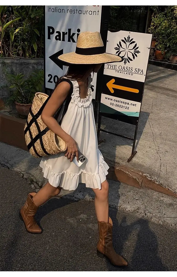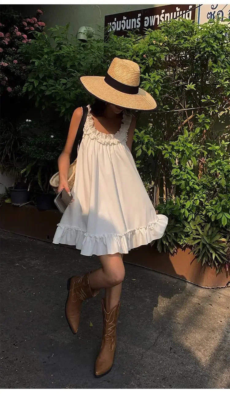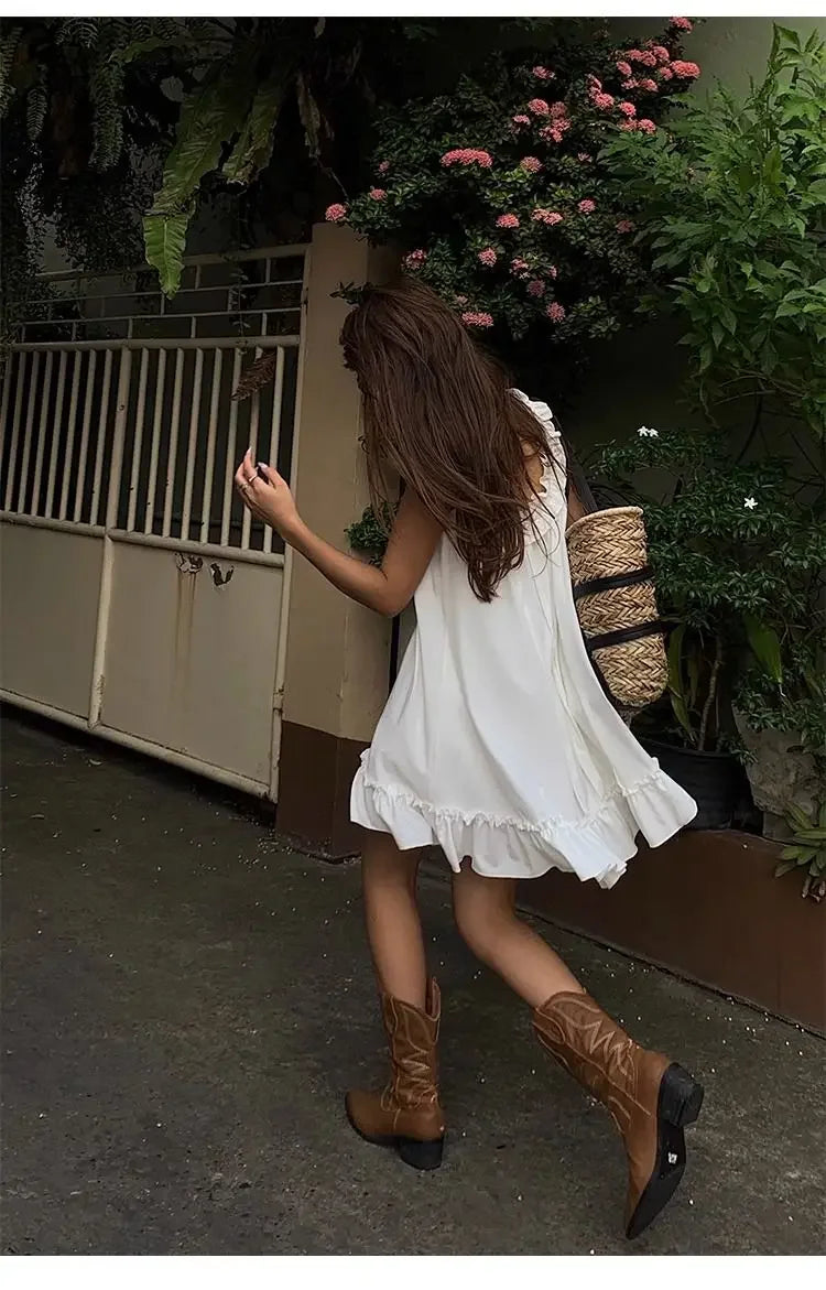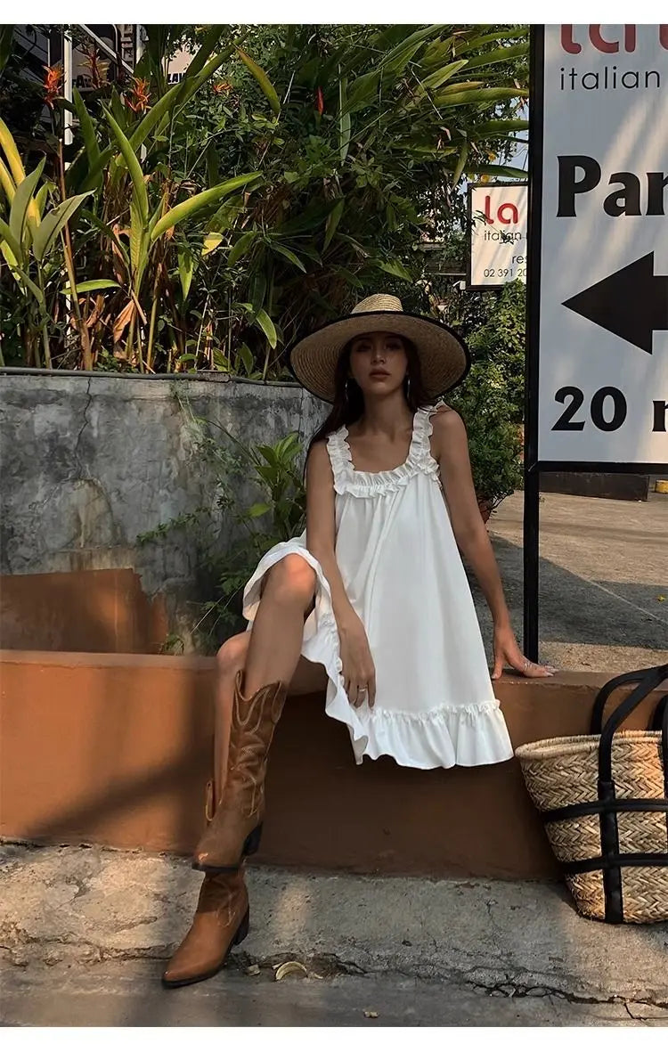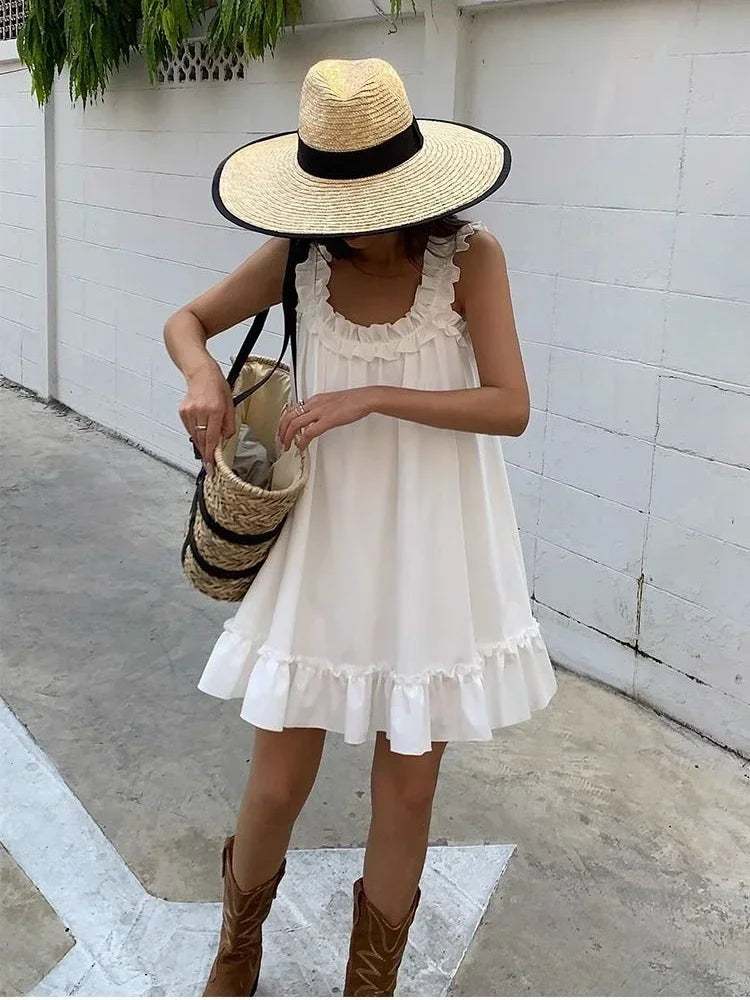 Bxoxo White Sleeveless Ruffles Mini Dress Women Casual Boho Beach Sundress Cute Girl Home Dresses Loose Summer Dress Oversize