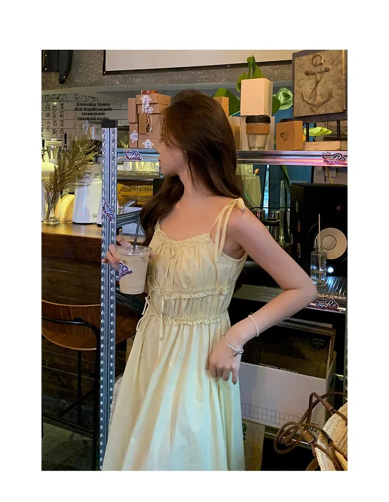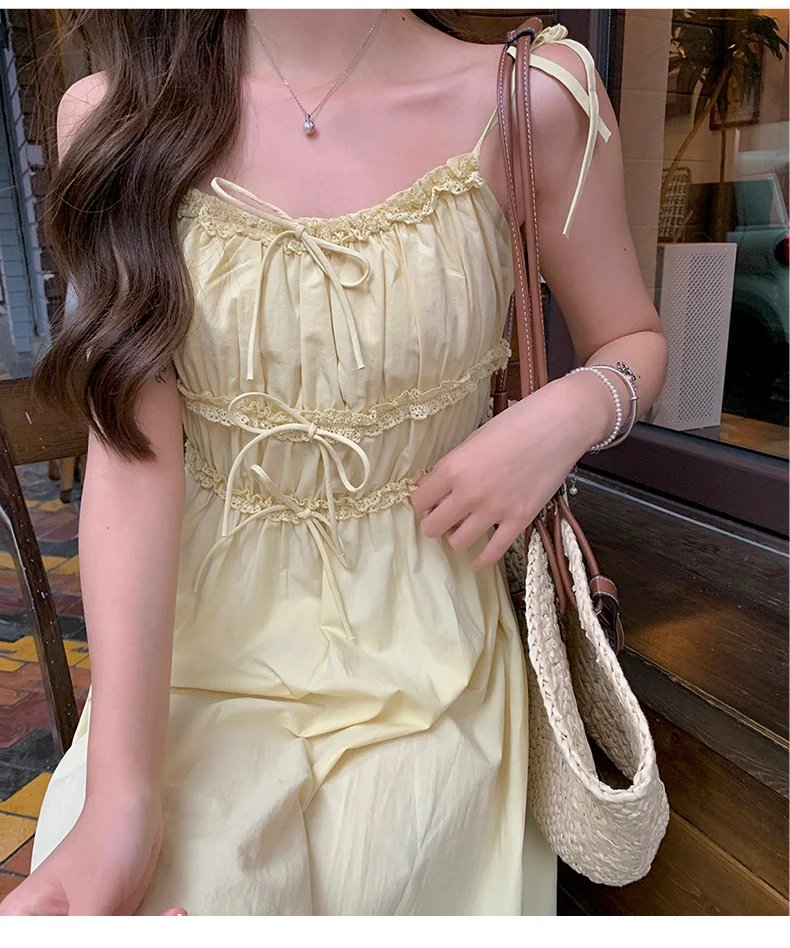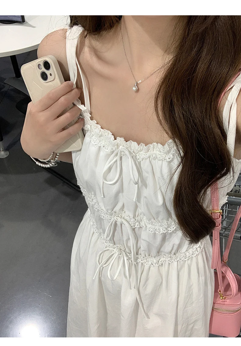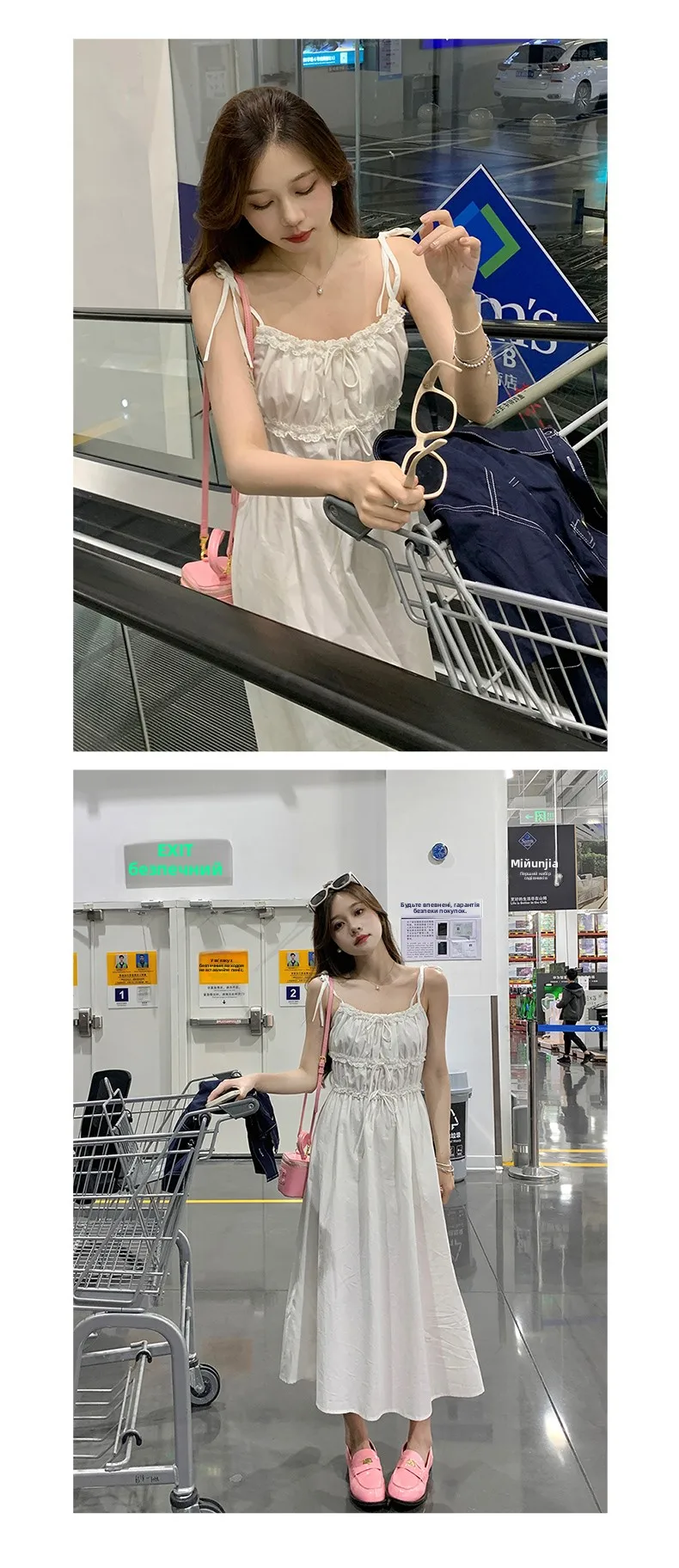 Bxoxo White Summer Strapl Dr Women's Sweet Design Pleated Waist Slimming Svel Long Dr Korean Sle High Waist A-Line...