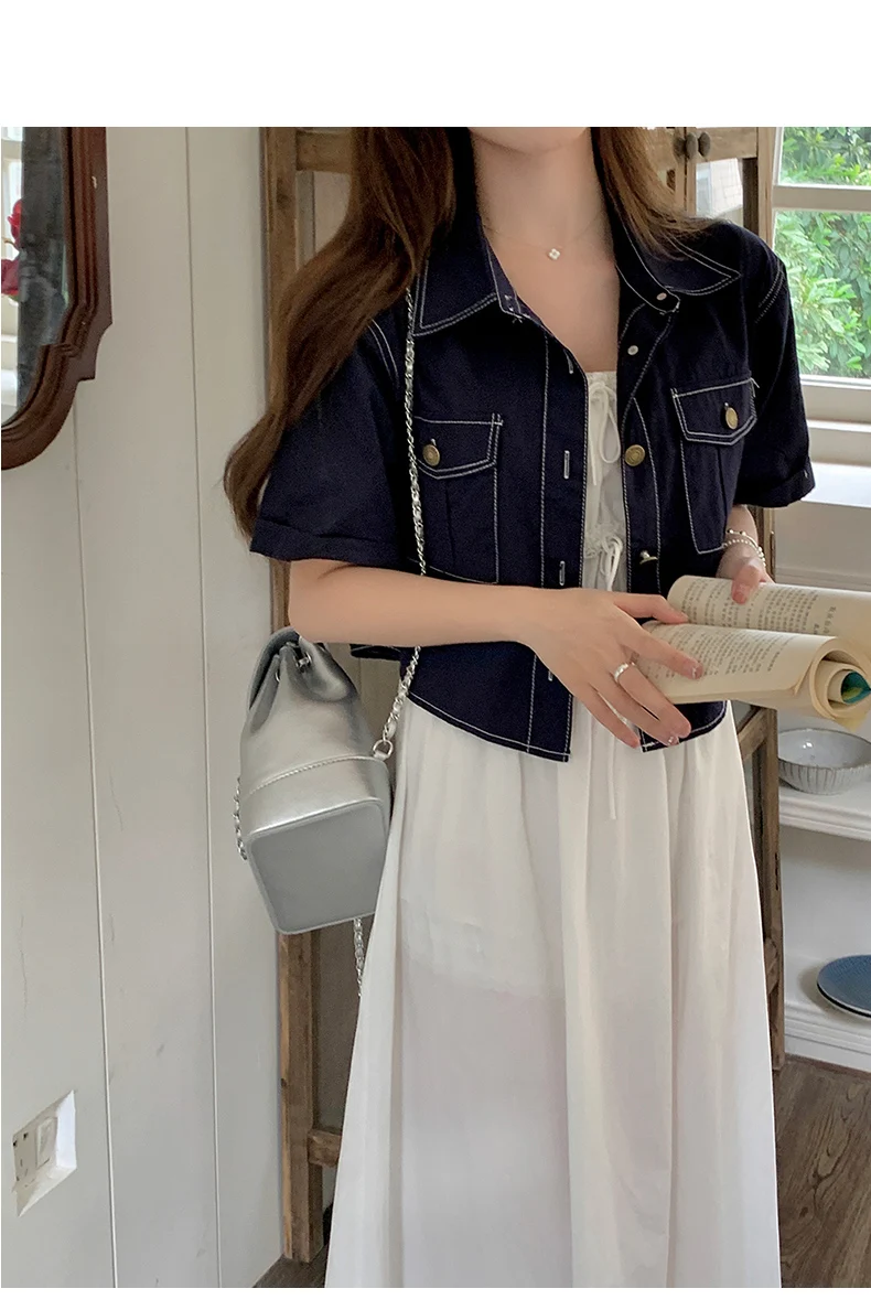 Embrace the latest Korean fashion trend with this white strapless dress, featuring a sweet design and high-waisted A-line silhouette.