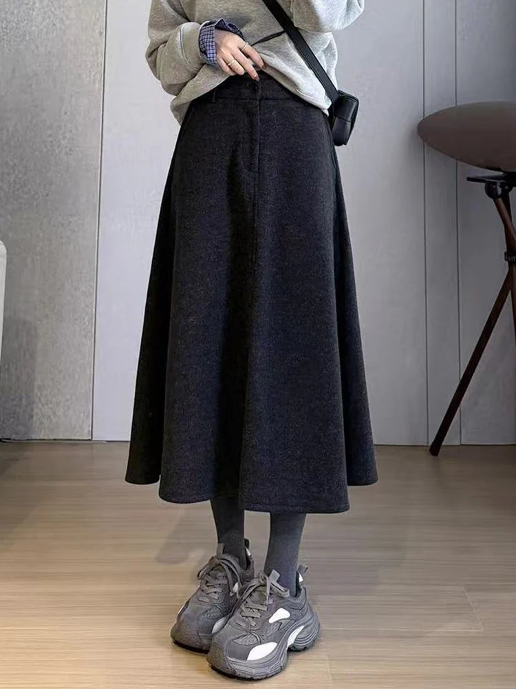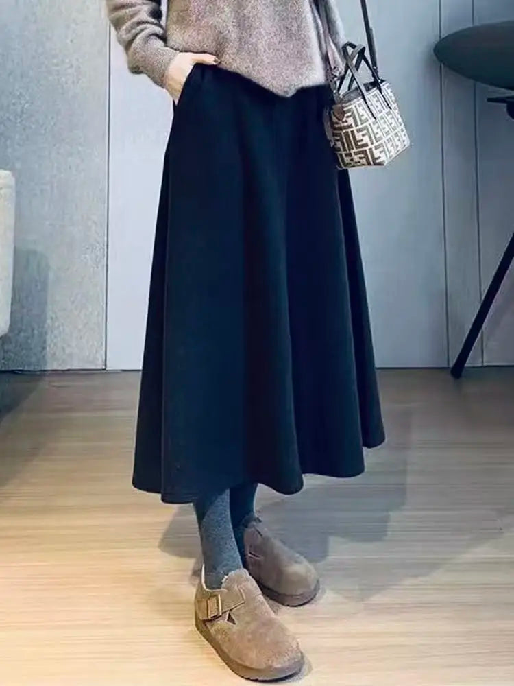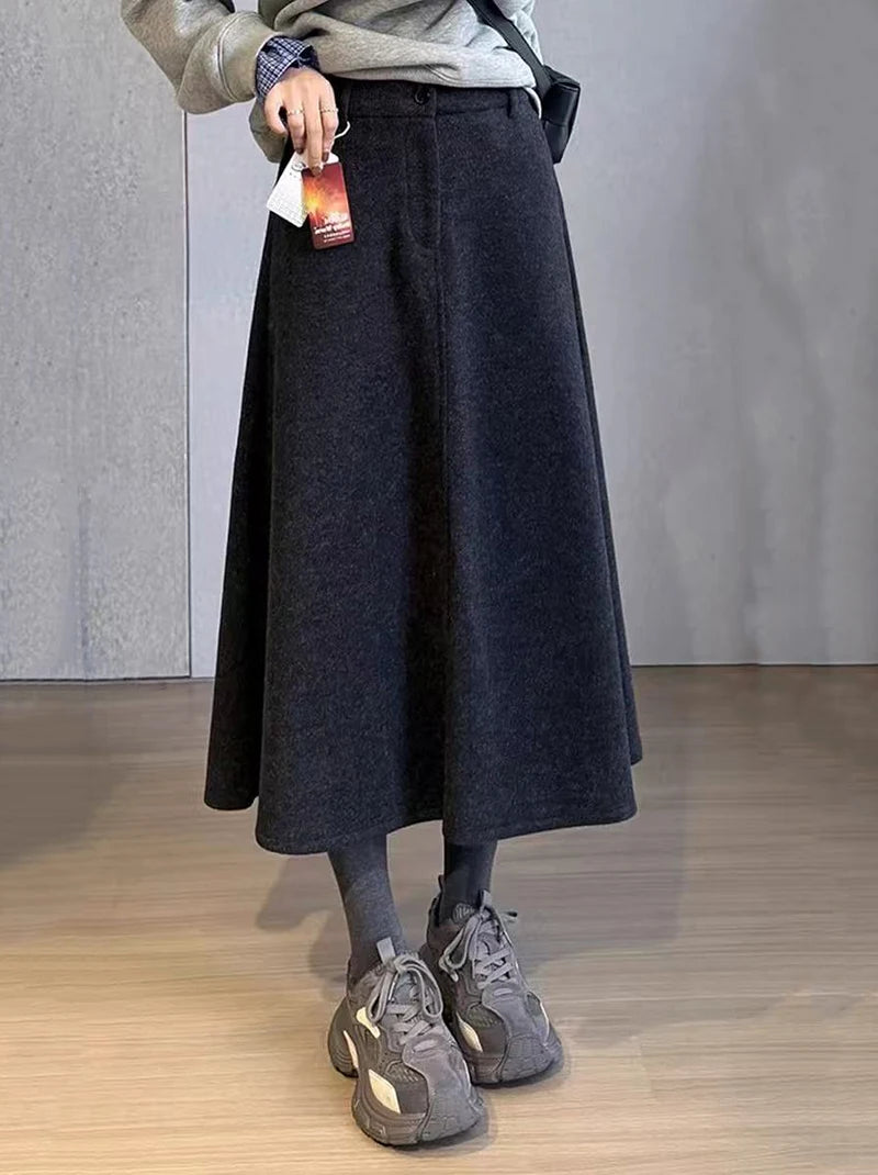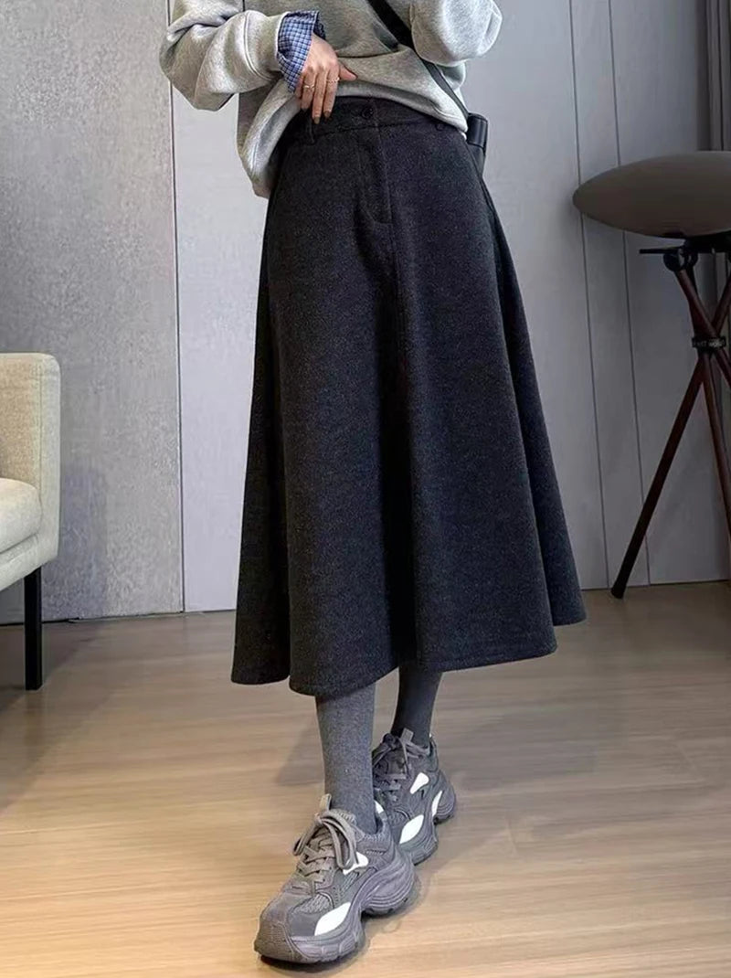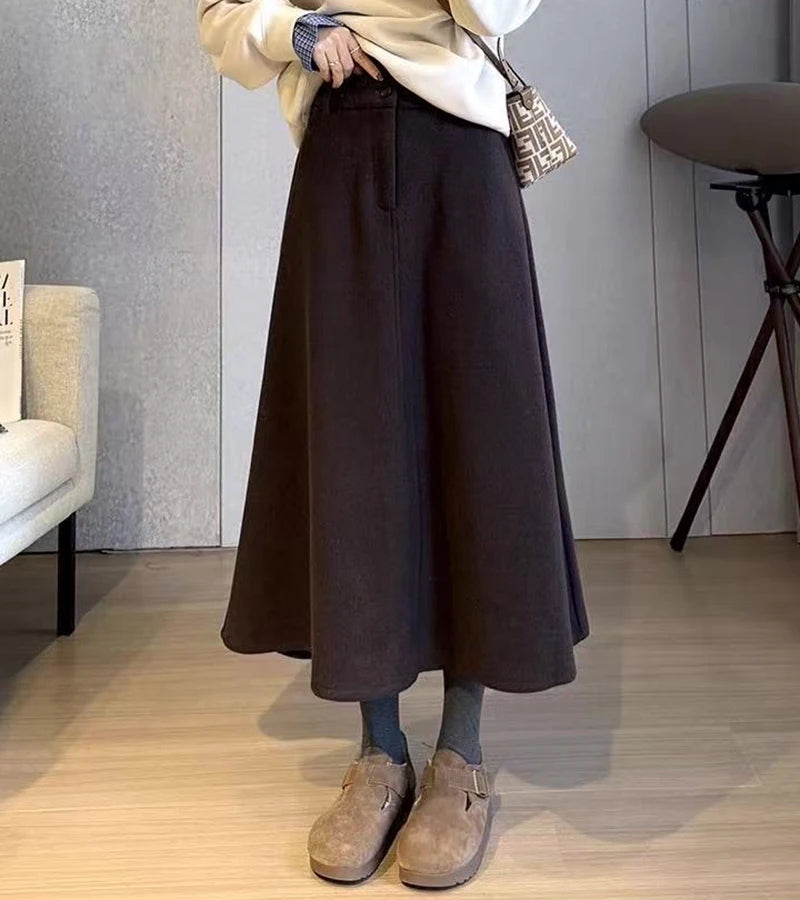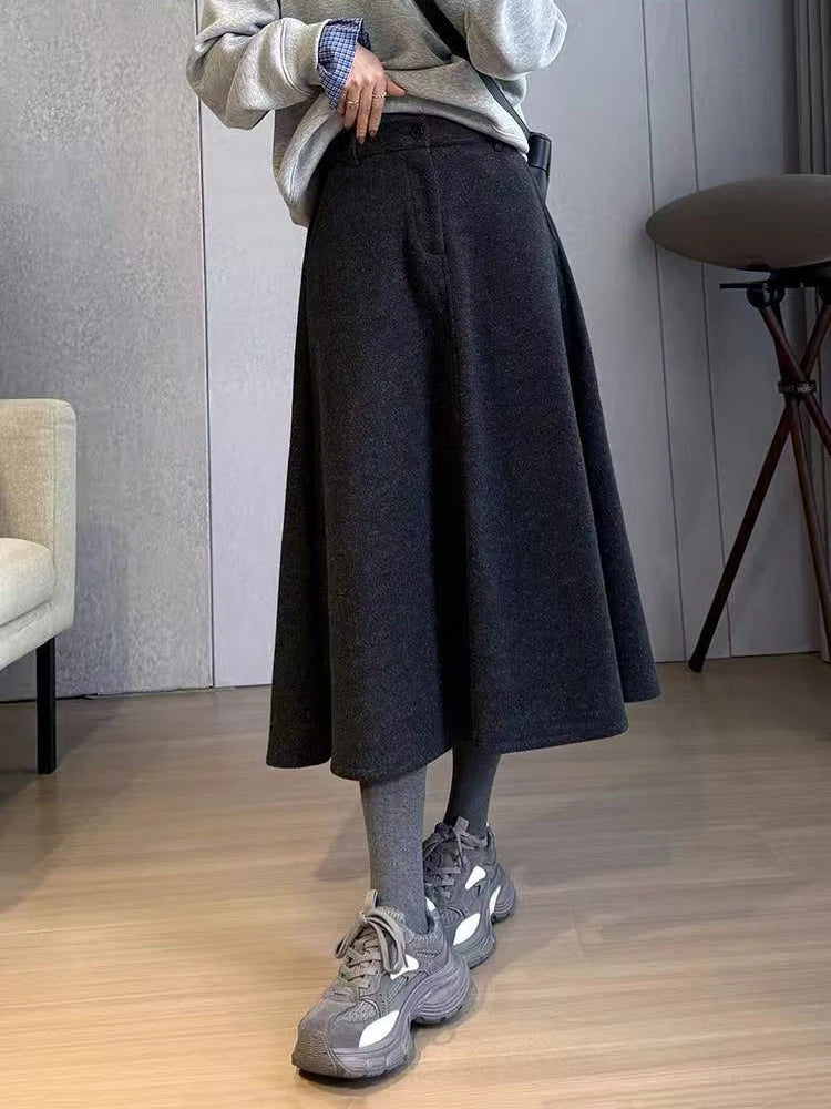 Bxoxo Winter Fuax Woolen Coat for Women Y2K High Waist Loose Warm Casual Midi Skirts Korean Elegant Office Lady Blended A Line Skirts
