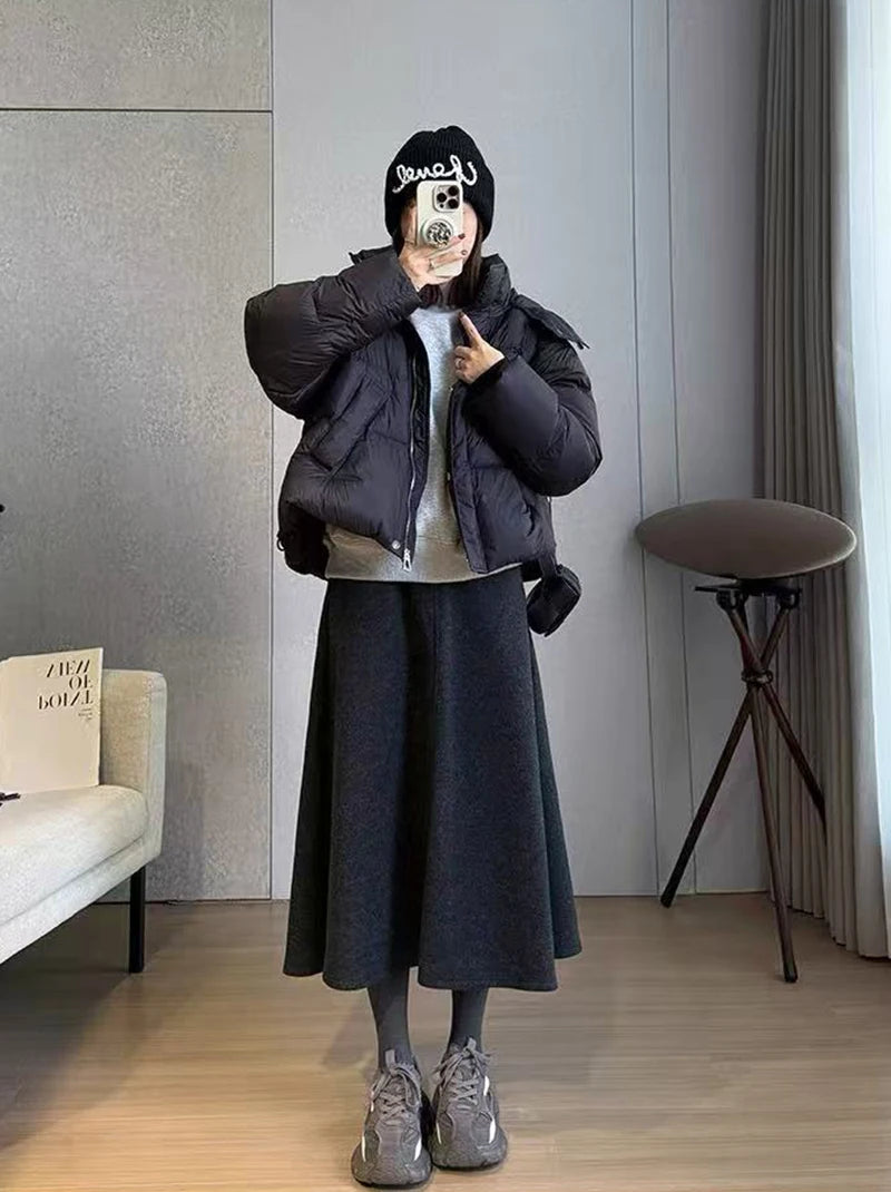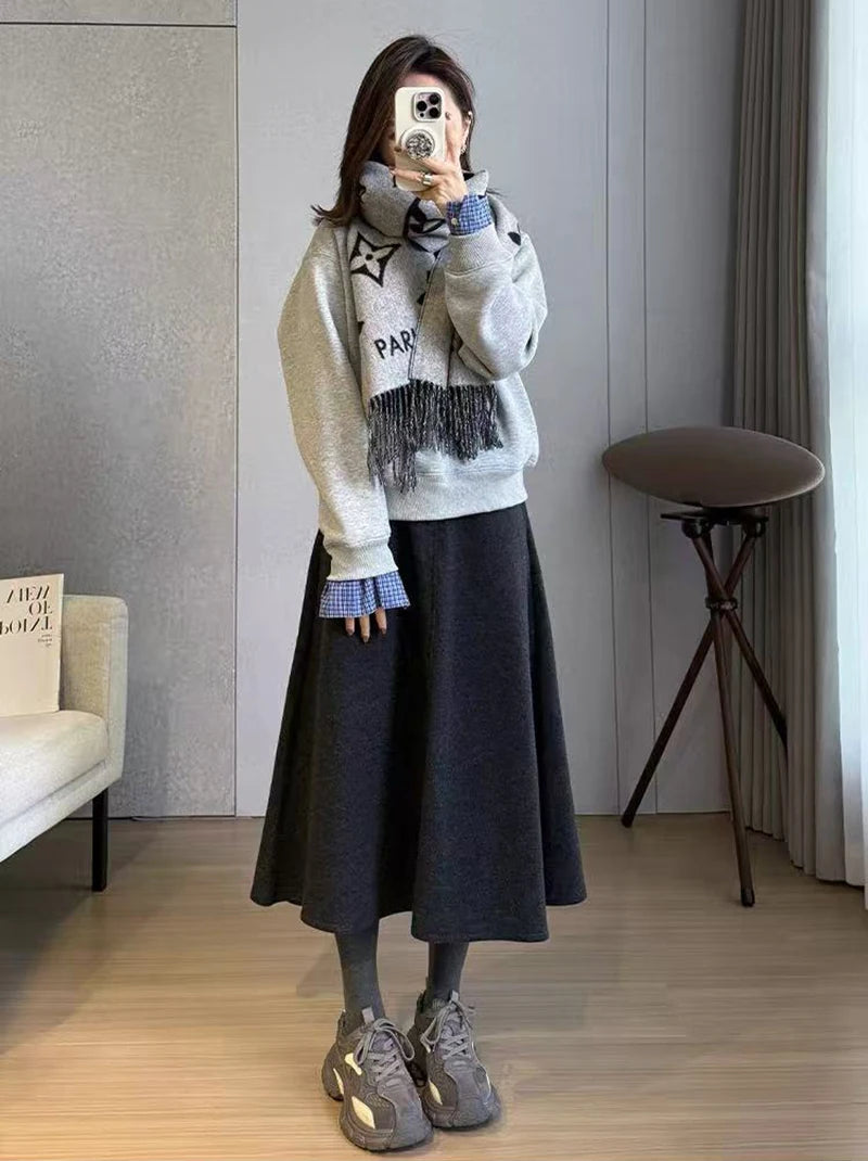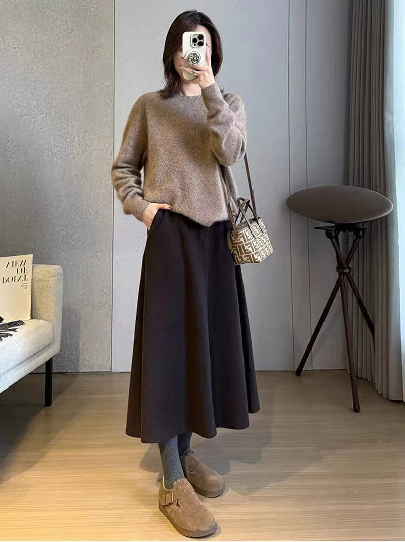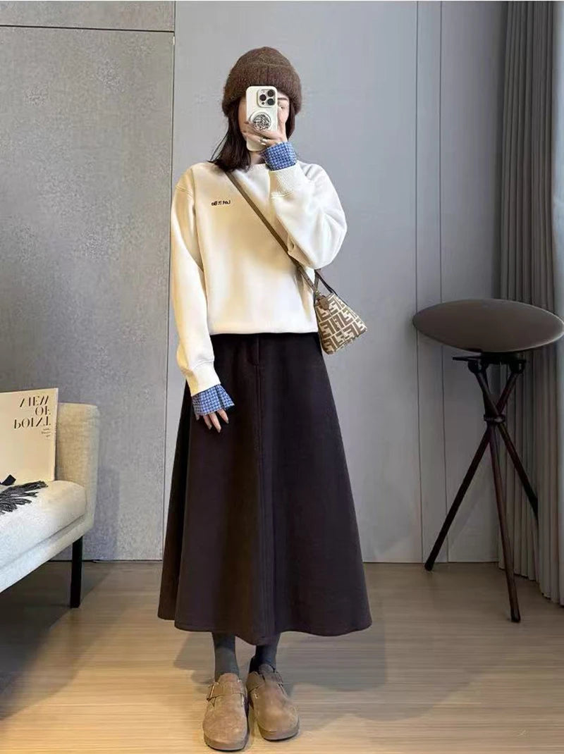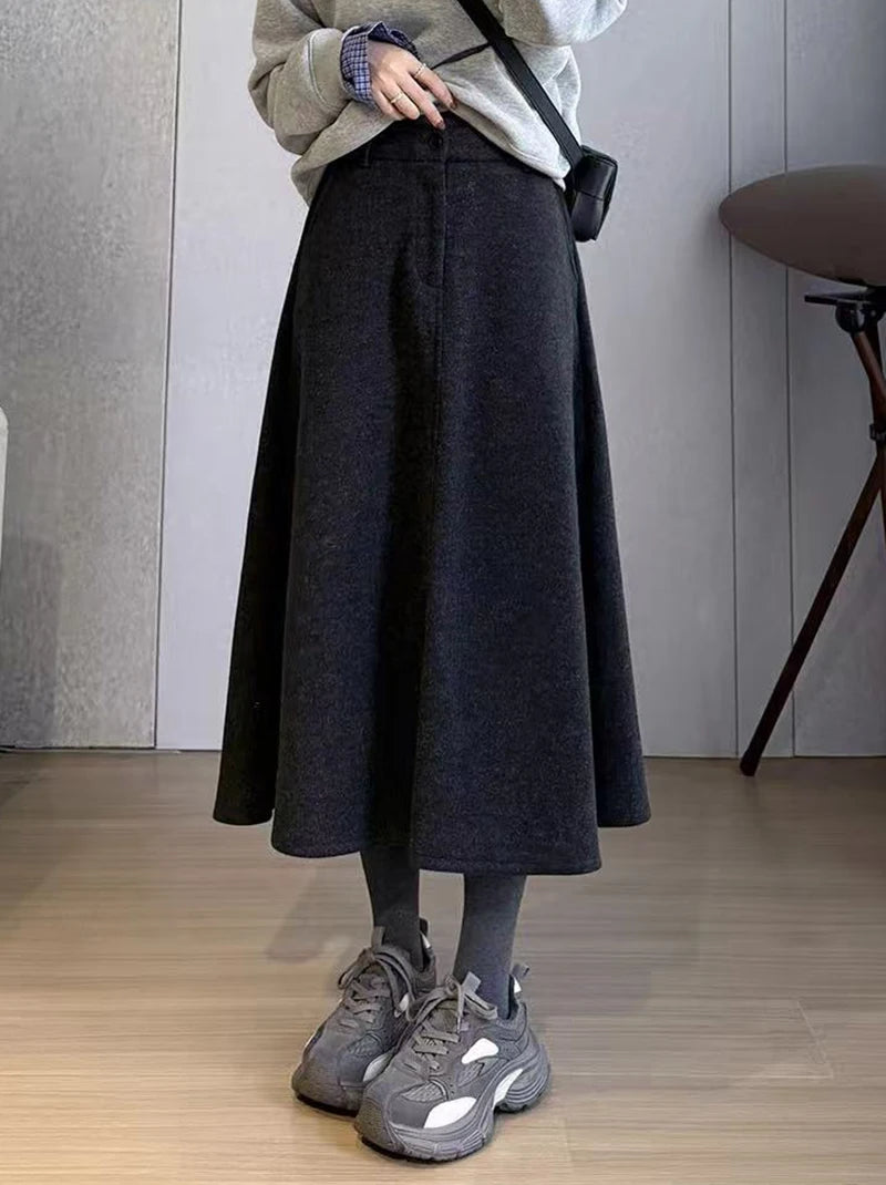 Bxoxo Winter Fuax Woolen Coat for Women Y2K High Waist Loose Warm Casual Midi Skirts Korean Elegant Office Lady Blended A Line Skirts