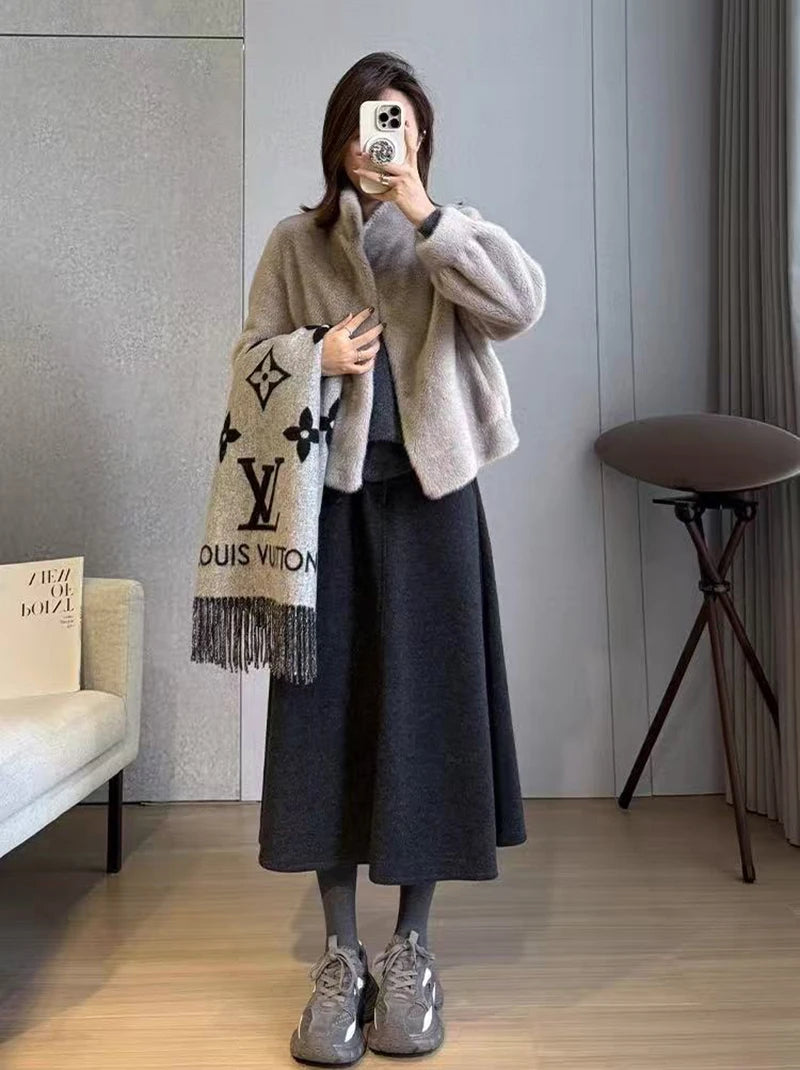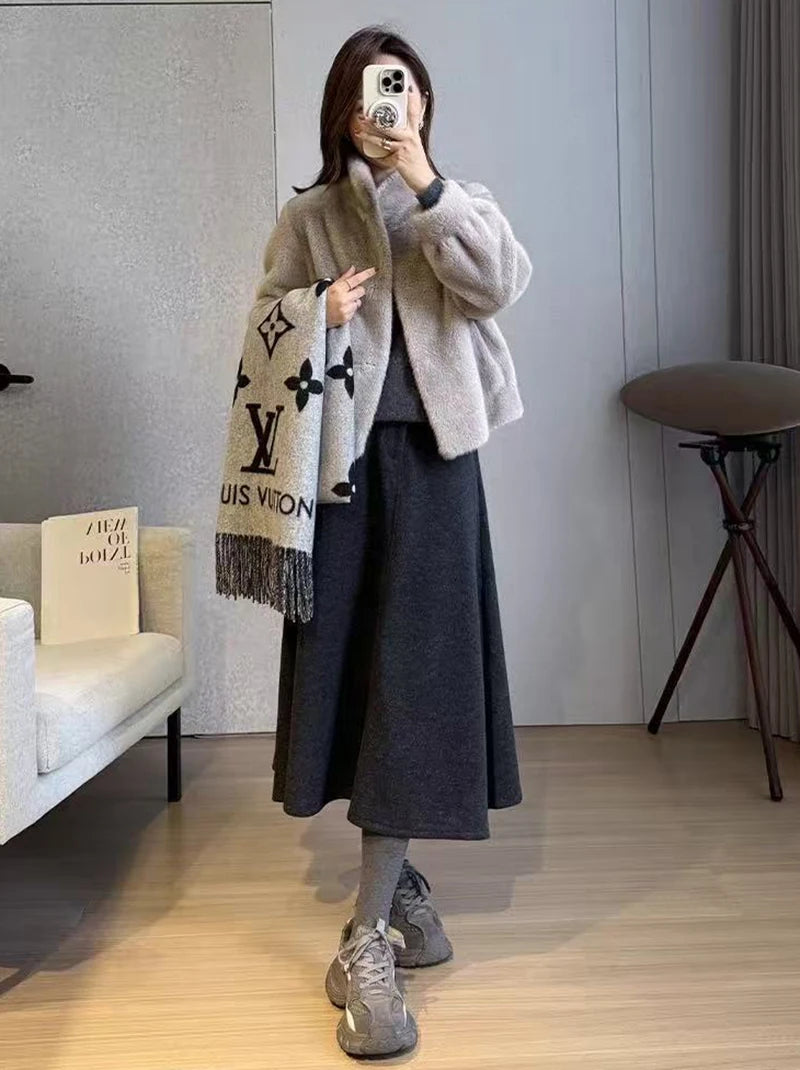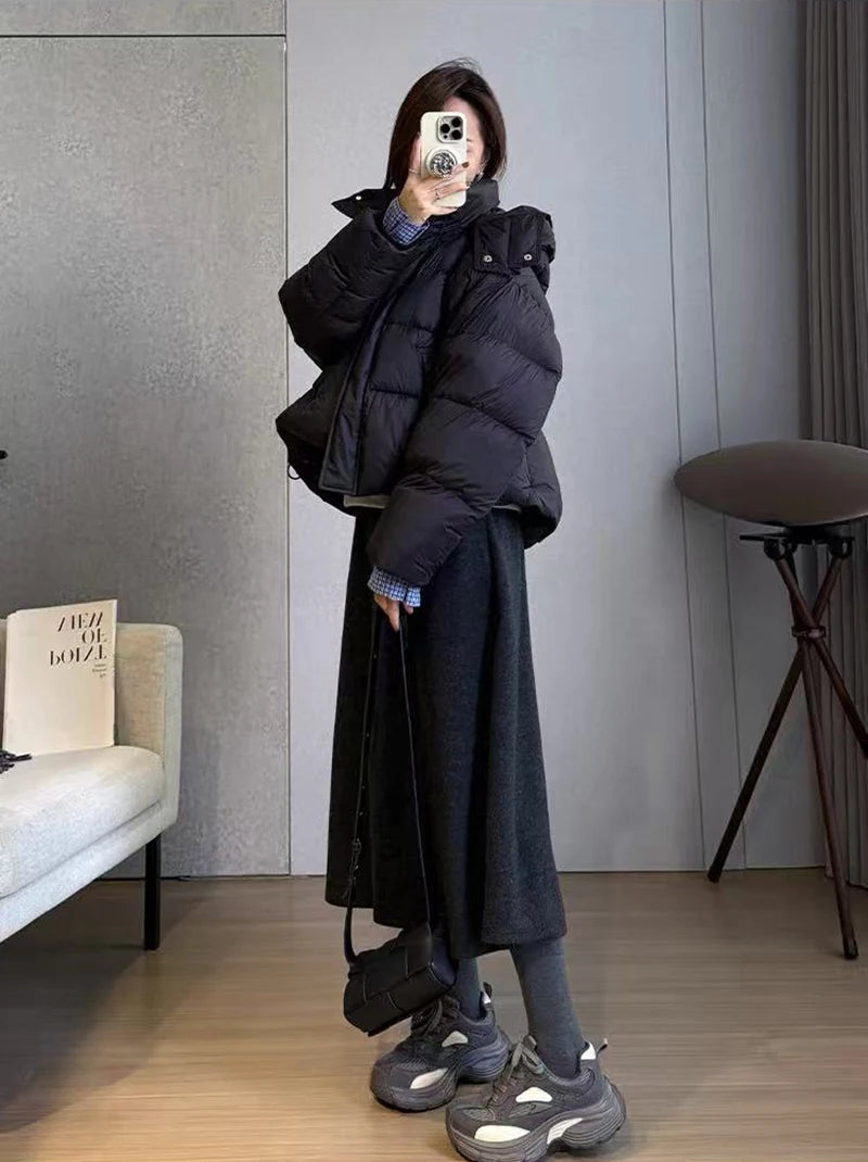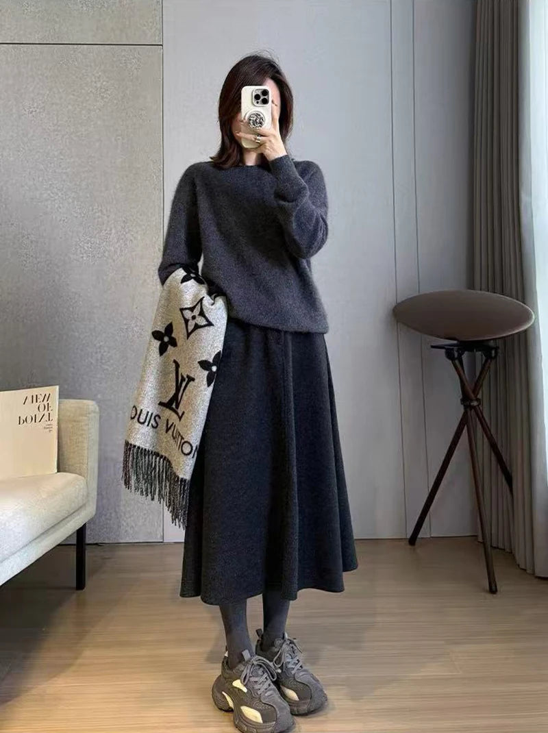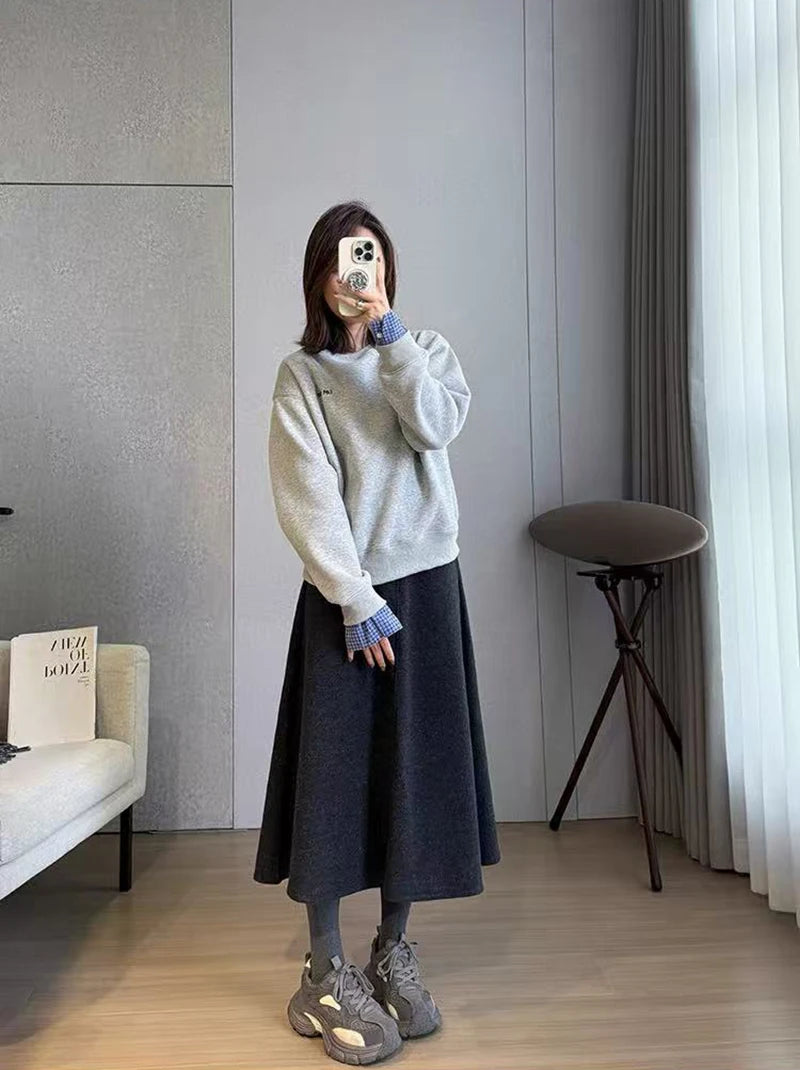 Bxoxo Winter Fuax Woolen Coat for Women Y2K High Waist Loose Warm Casual Midi Skirts Korean Elegant Office Lady Blended A Line Skirts