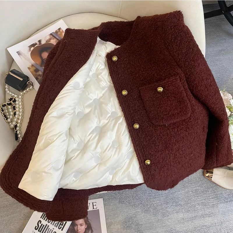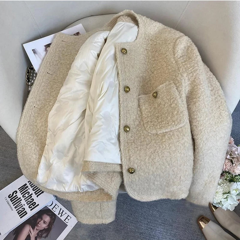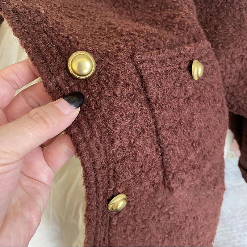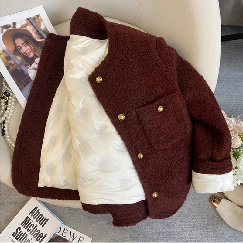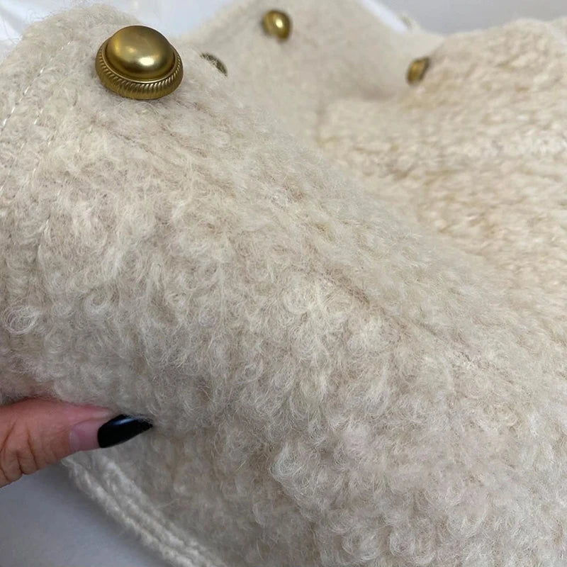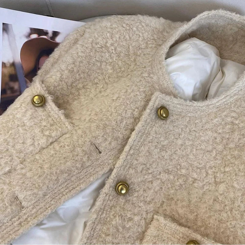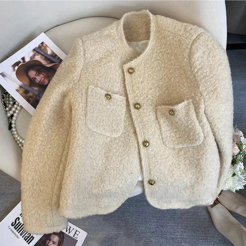 Bxoxo Winter Thick Faux Wool Coat Women Korean Elegant Hepburn Style Loose Warm Jacket Y2K Streetwear Single Breasted Blended Outwear