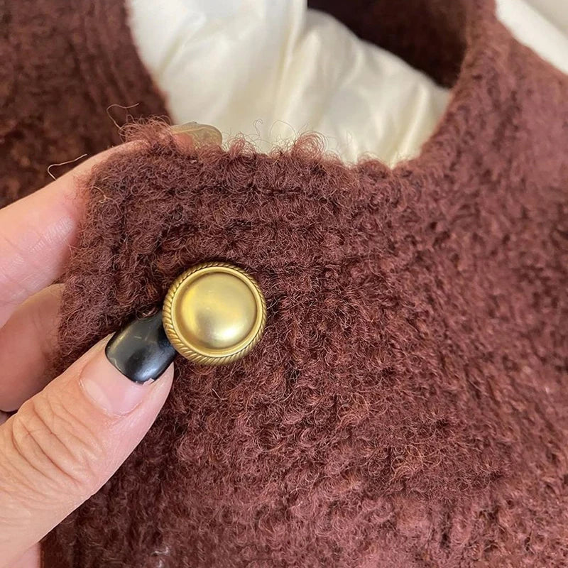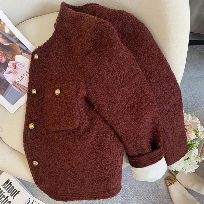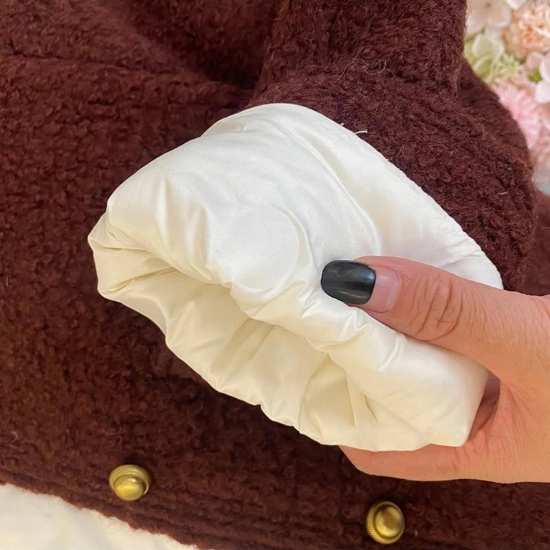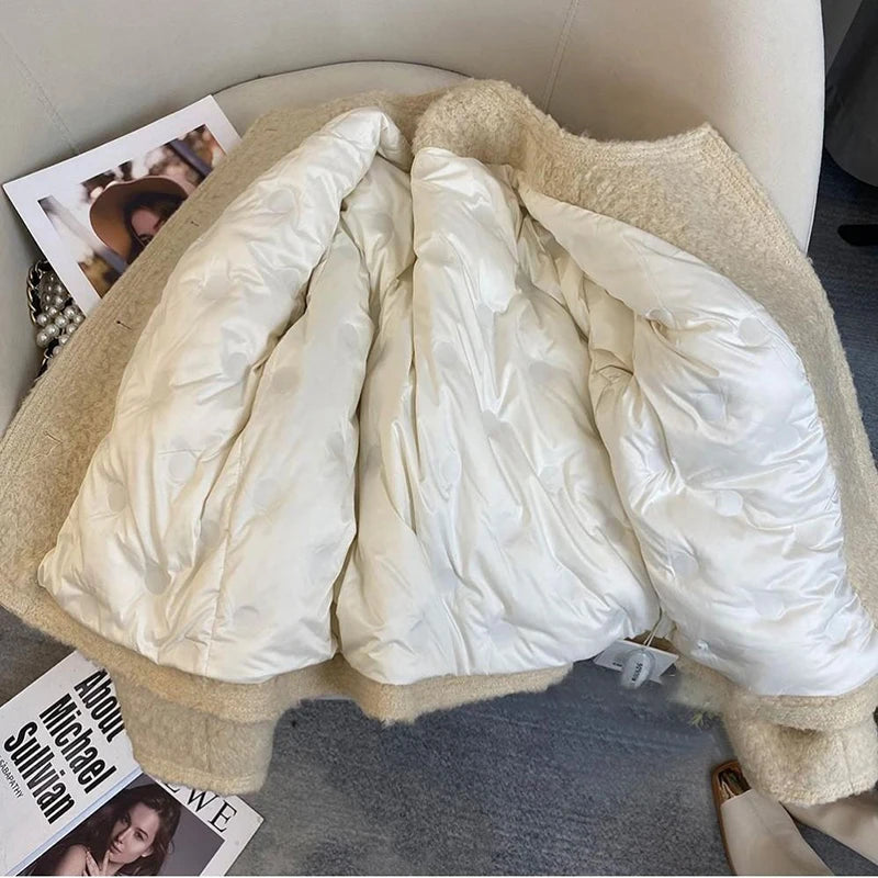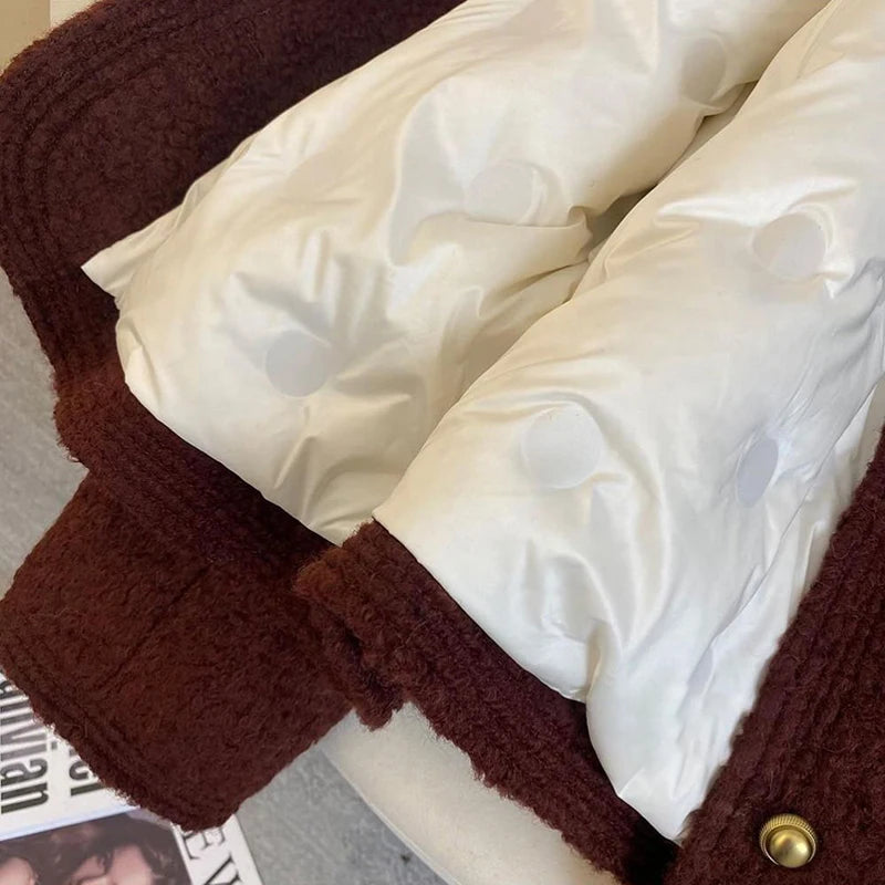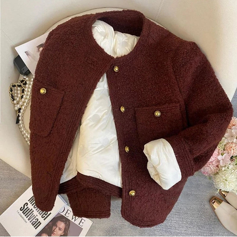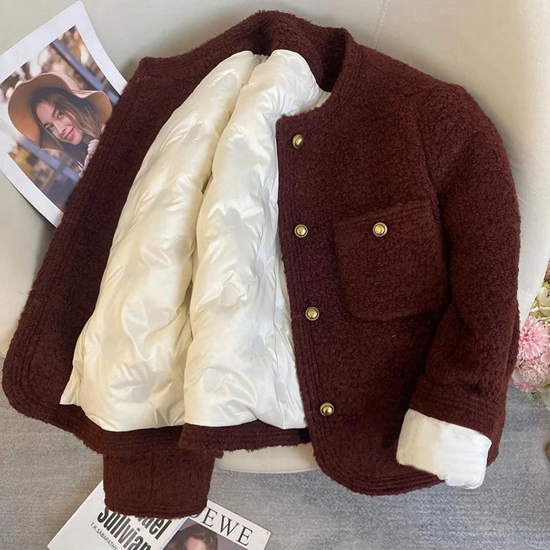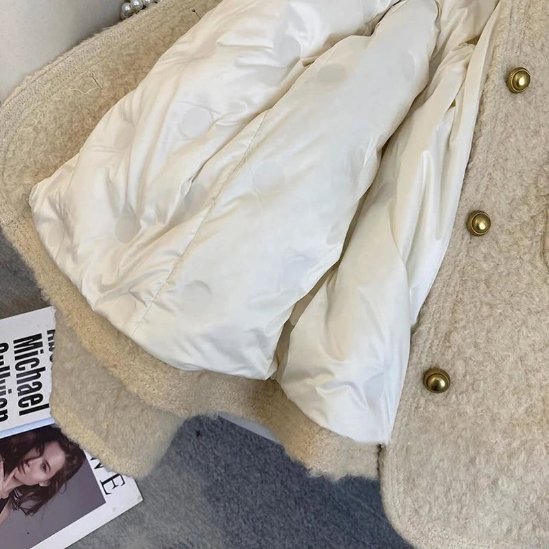 Bxoxo Winter Thick Faux Wool Coat Women Korean Elegant Hepburn Style Loose Warm Jacket Y2K Streetwear Single Breasted Blended Outwear