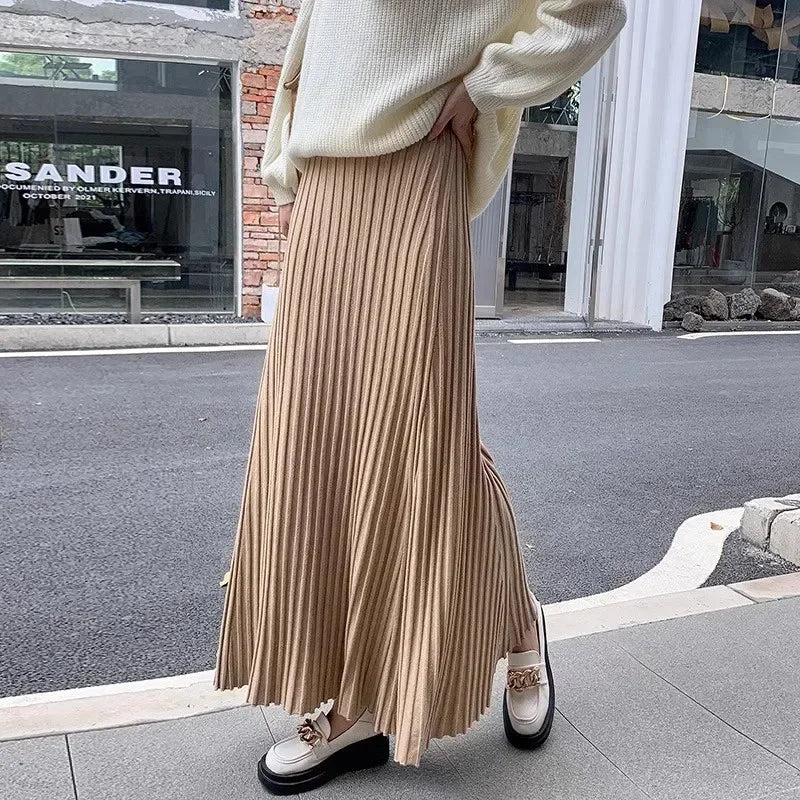 Bxoxo Winter Thickening Wool Blend Warm Maxi Long Rib Knitted Skirt Draping Large Swing Skirt