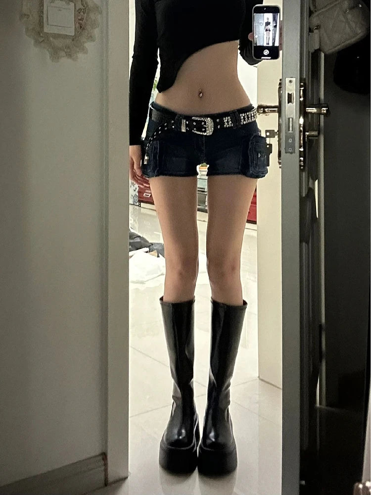 Bxoxo Woman Casual Hot Slim Pants Low Waist Jean Solid Color Wash shorts Goblin Denim Shorts Y2k Classical Sexy Gyaru Dark Academia