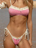 BXOXO Women 2 Pieces Bikini Swimsuits Plaid Patchwork Ruffles Sleeveless Padded Bra Thong Bottoms Beach Bathing Suit Set