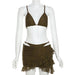 BXOXO Women 3 Pieces Lingerie Set Lace Spaghetti Strap Sleeveless Bra Thong Ruffle Mini Skirt Sleepwear Suit Exotic Apparel