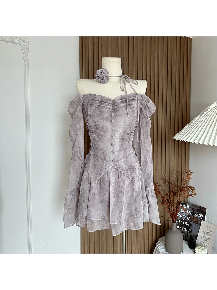 Bxoxo Women A-line Luxury Dress Elegant Long Sleeve Mini Evening Dress Harajuku Vintage 90s Y2k One Piece Frocks 2000s Clothes Autumn