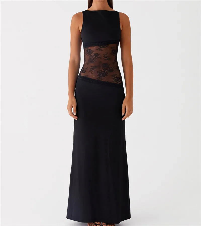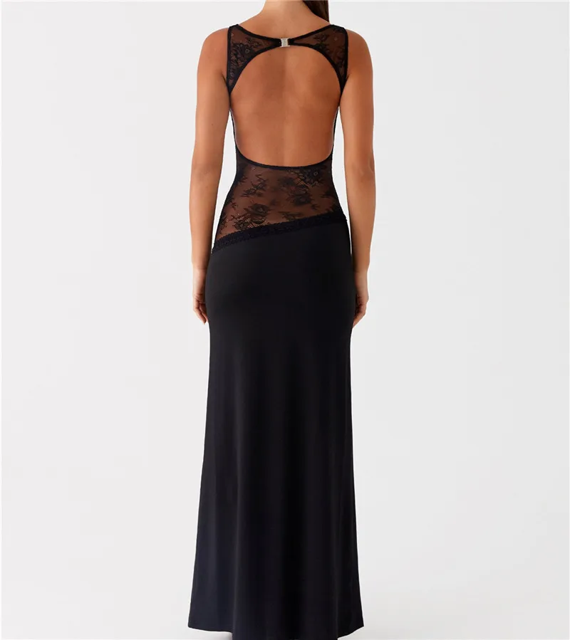 BXOXO Women Bodycon Maxi Dress Lace Patchwork Sleeveless Backless Long Pencil Dress Y2K Slim Fit Club Party Wedding Dresses
