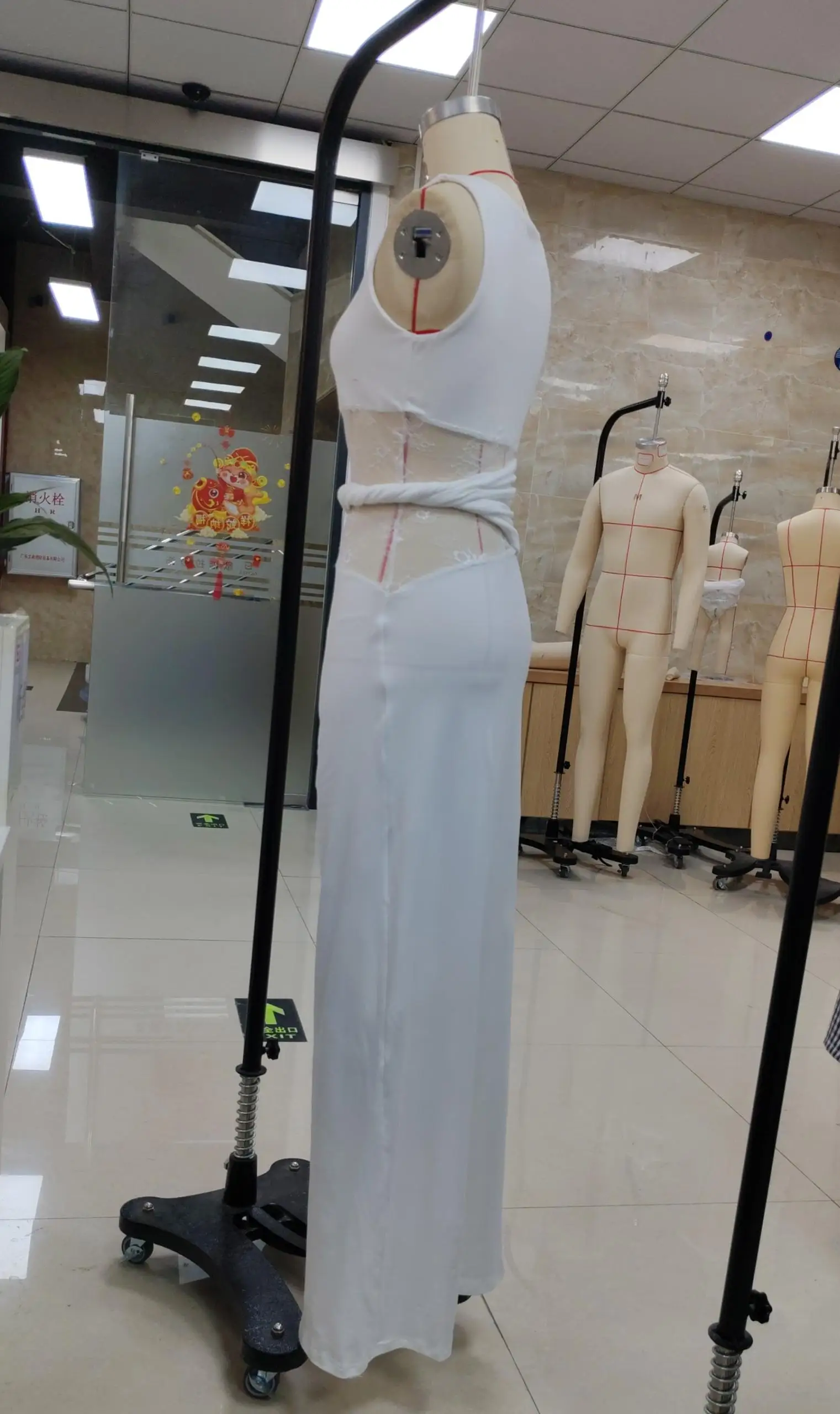 BXOXO Women Bodycon Maxi Dress Sexy Lace Patchwork Sleeveless Backless Long Pencil Dress Y2K Slim Fit Cocktail Party Dresses