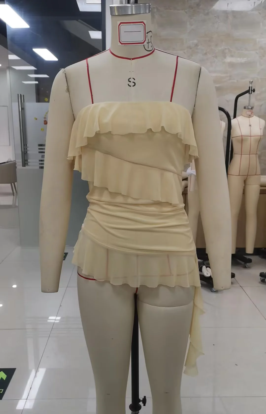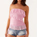 BXOXO Women Boho Strapless Ruffle Mesh Tube Top Solid Color Boat Neck Irregular Hem Slim Bandeau Top Sexy Cami Vest